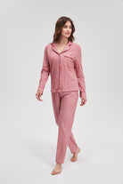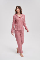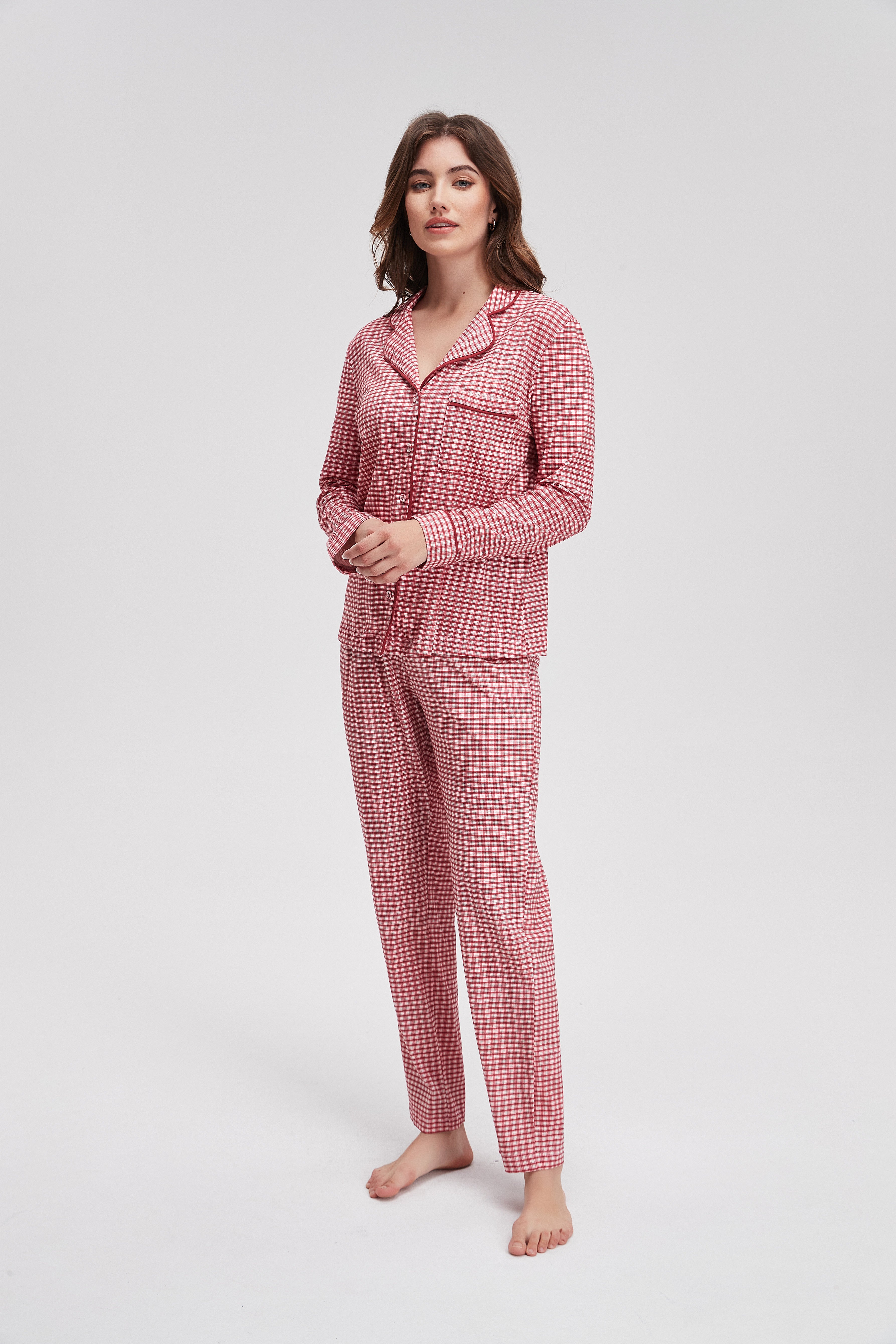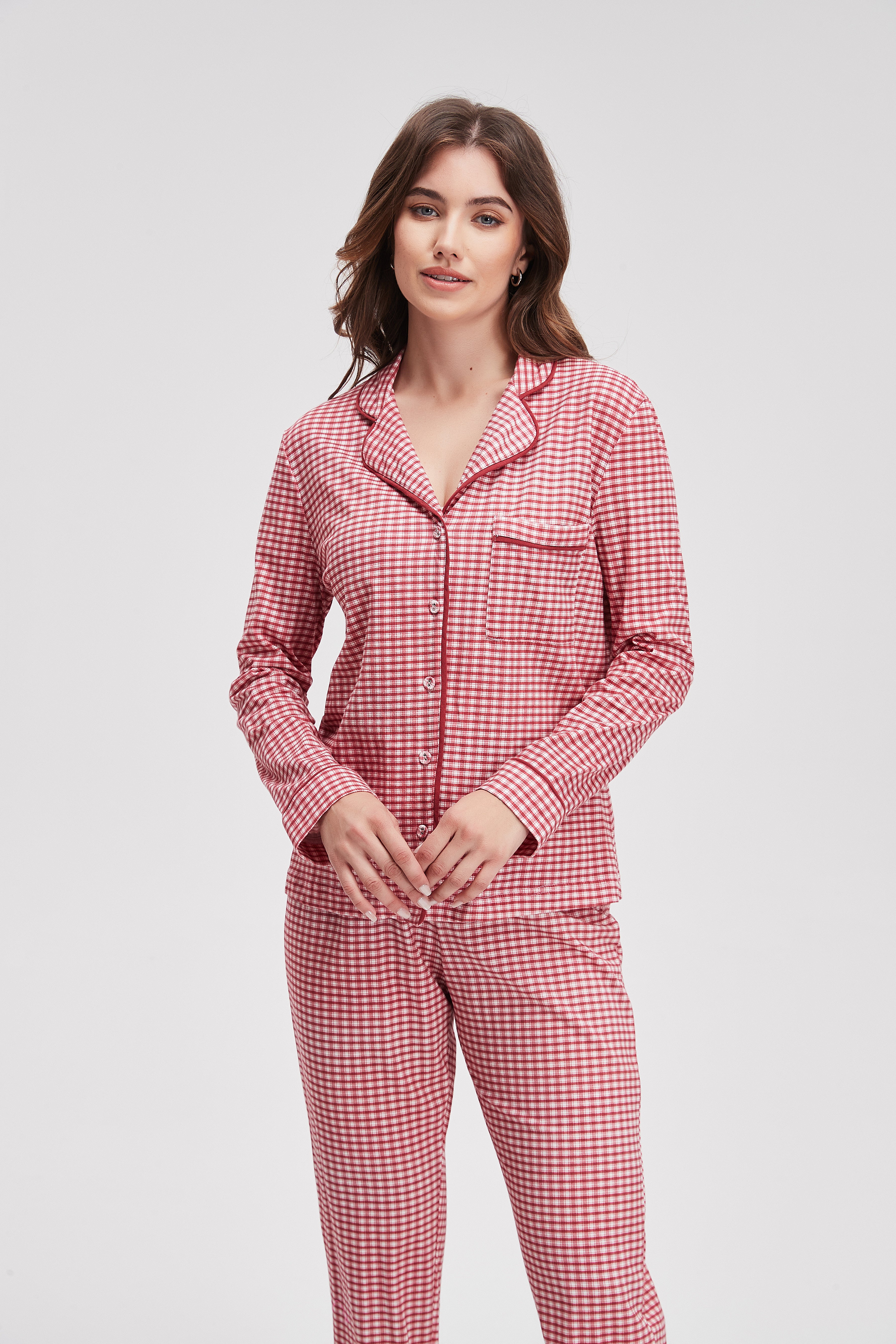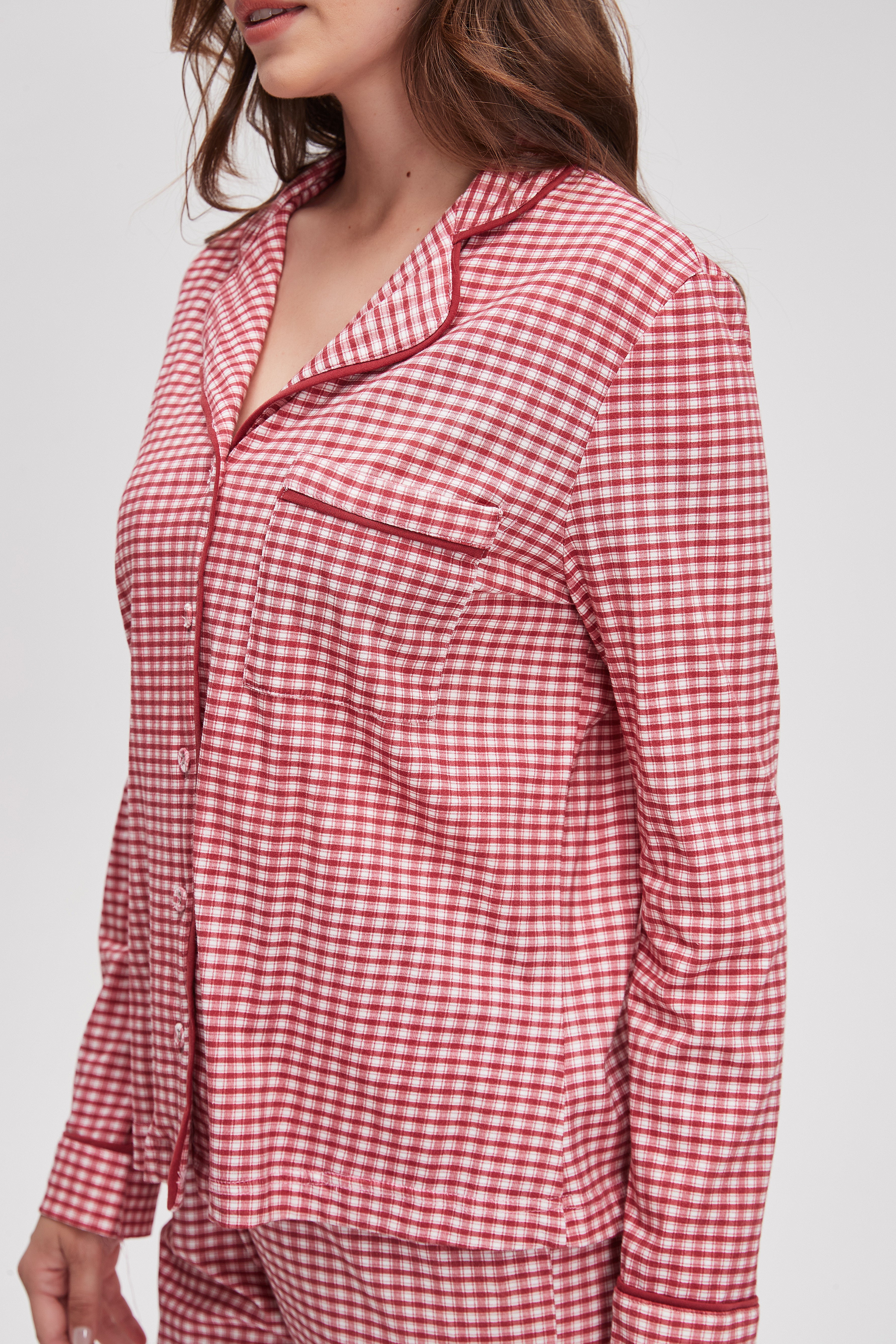 بيجامة كاروهات بأزرار أمامية كم طويل