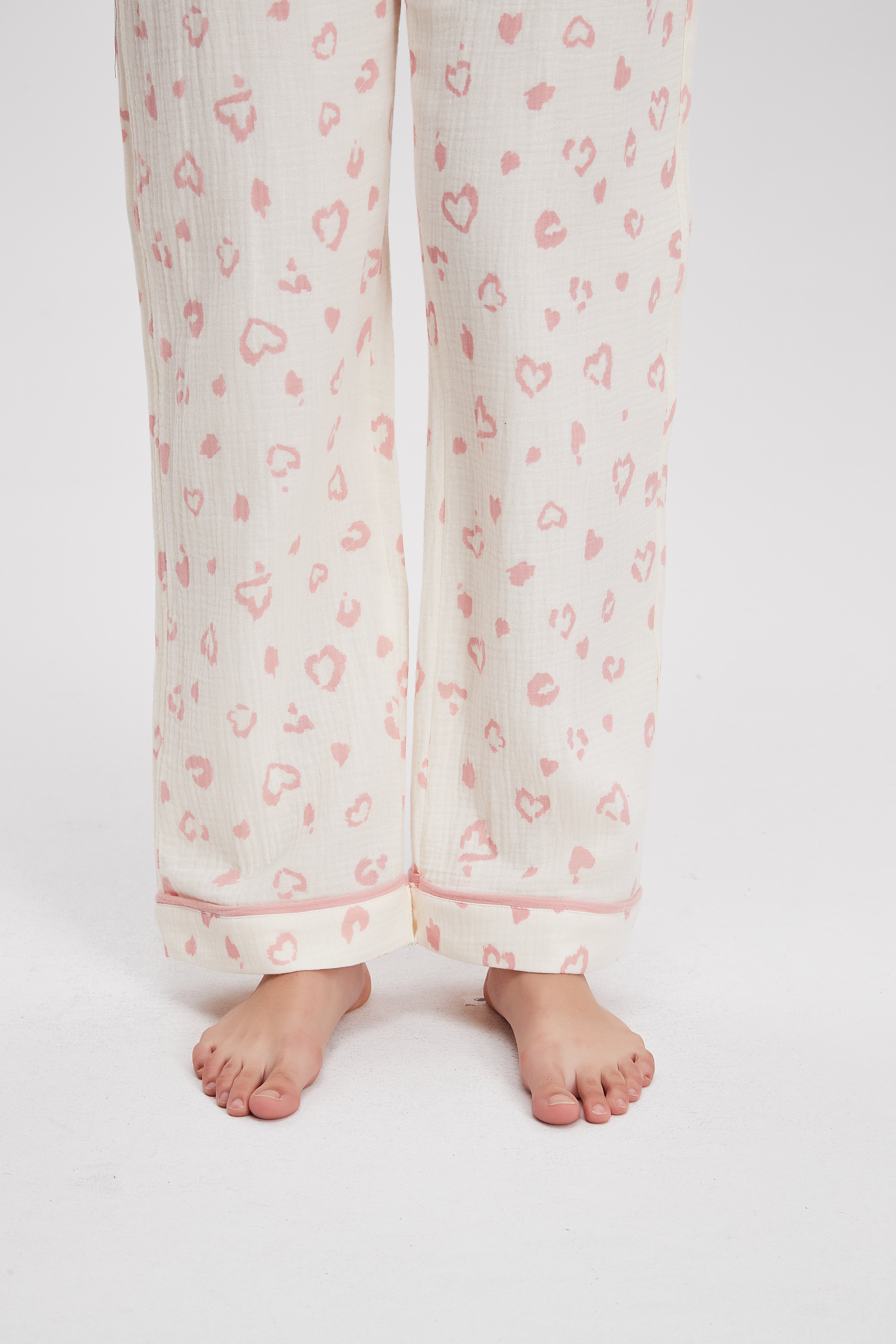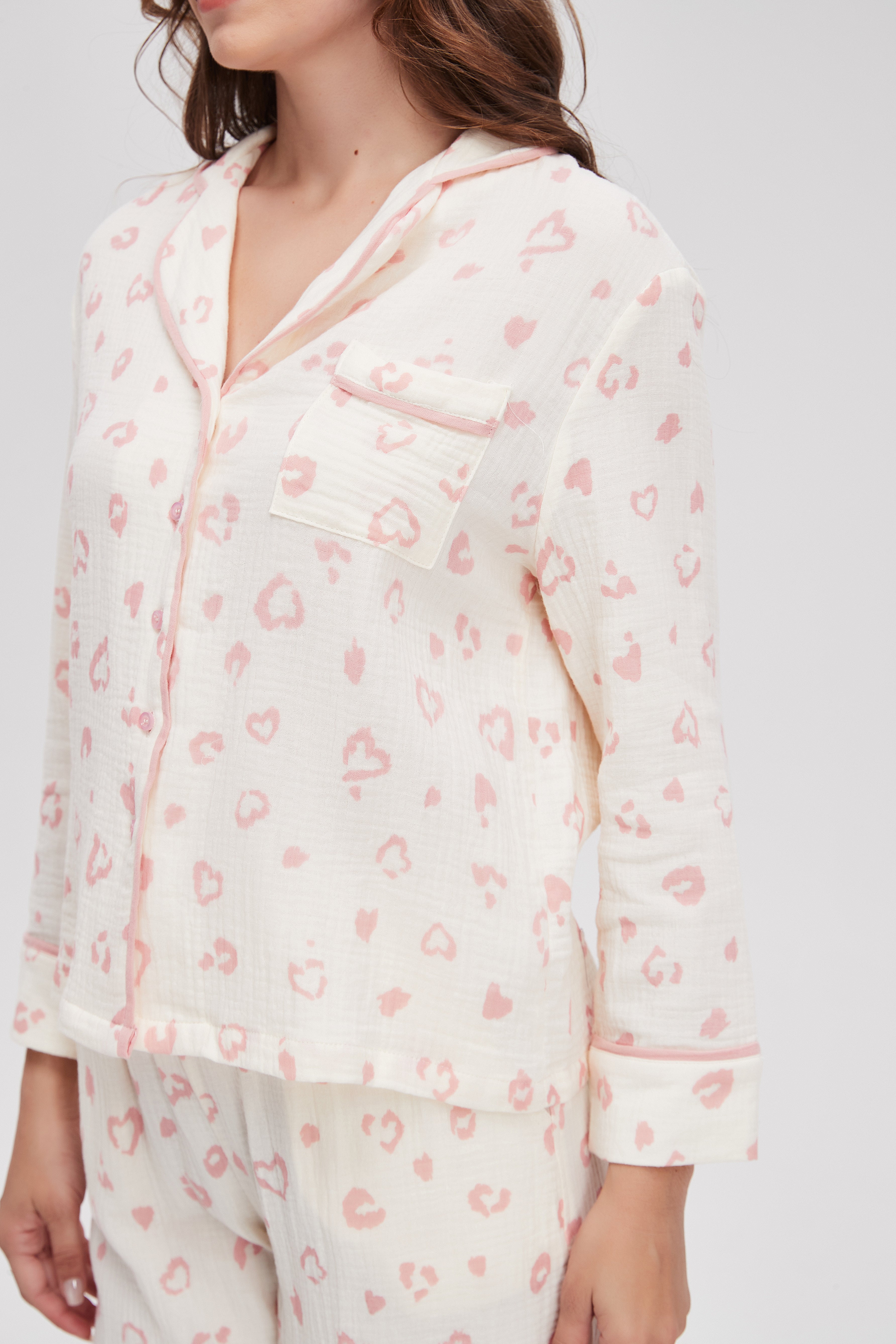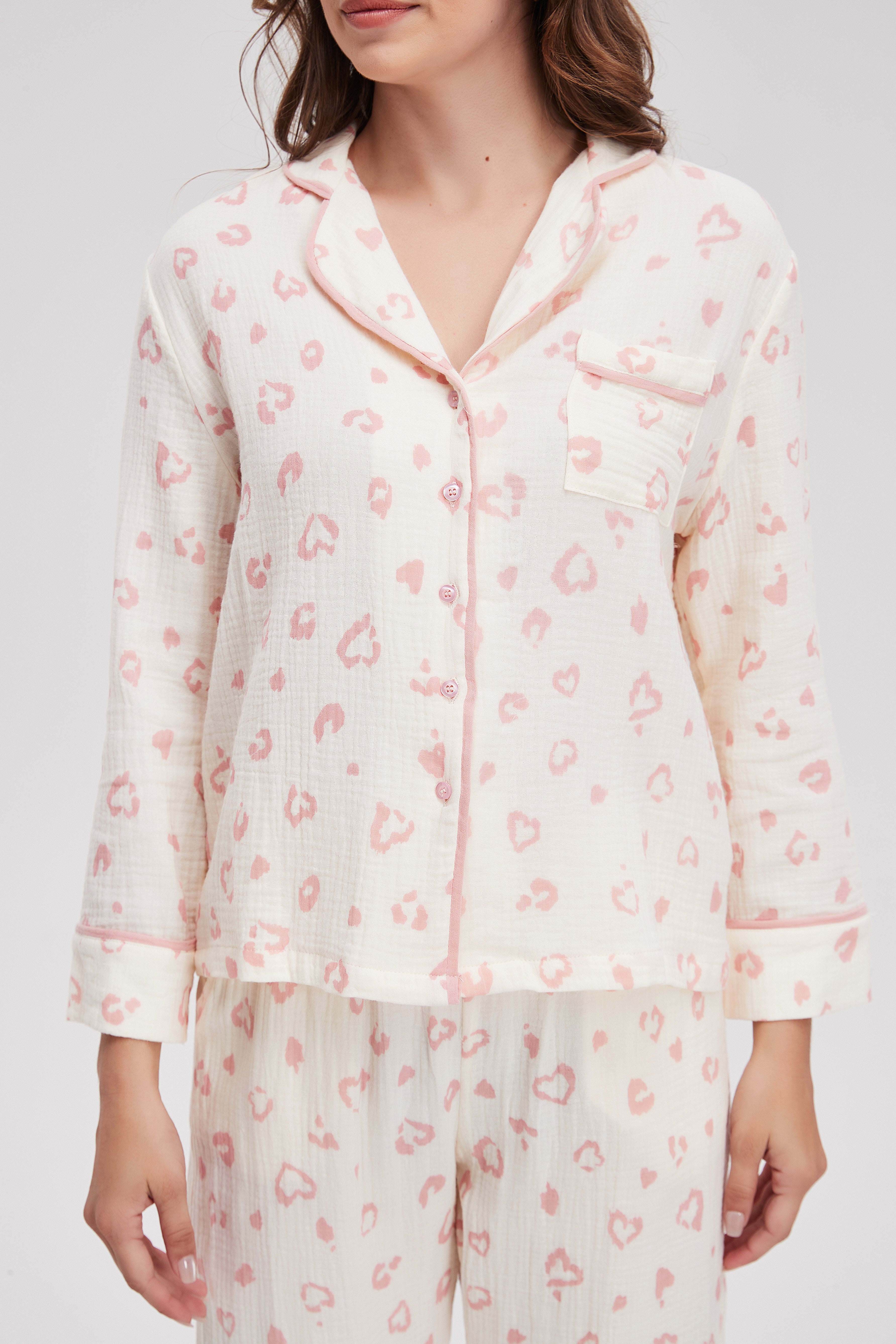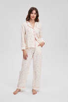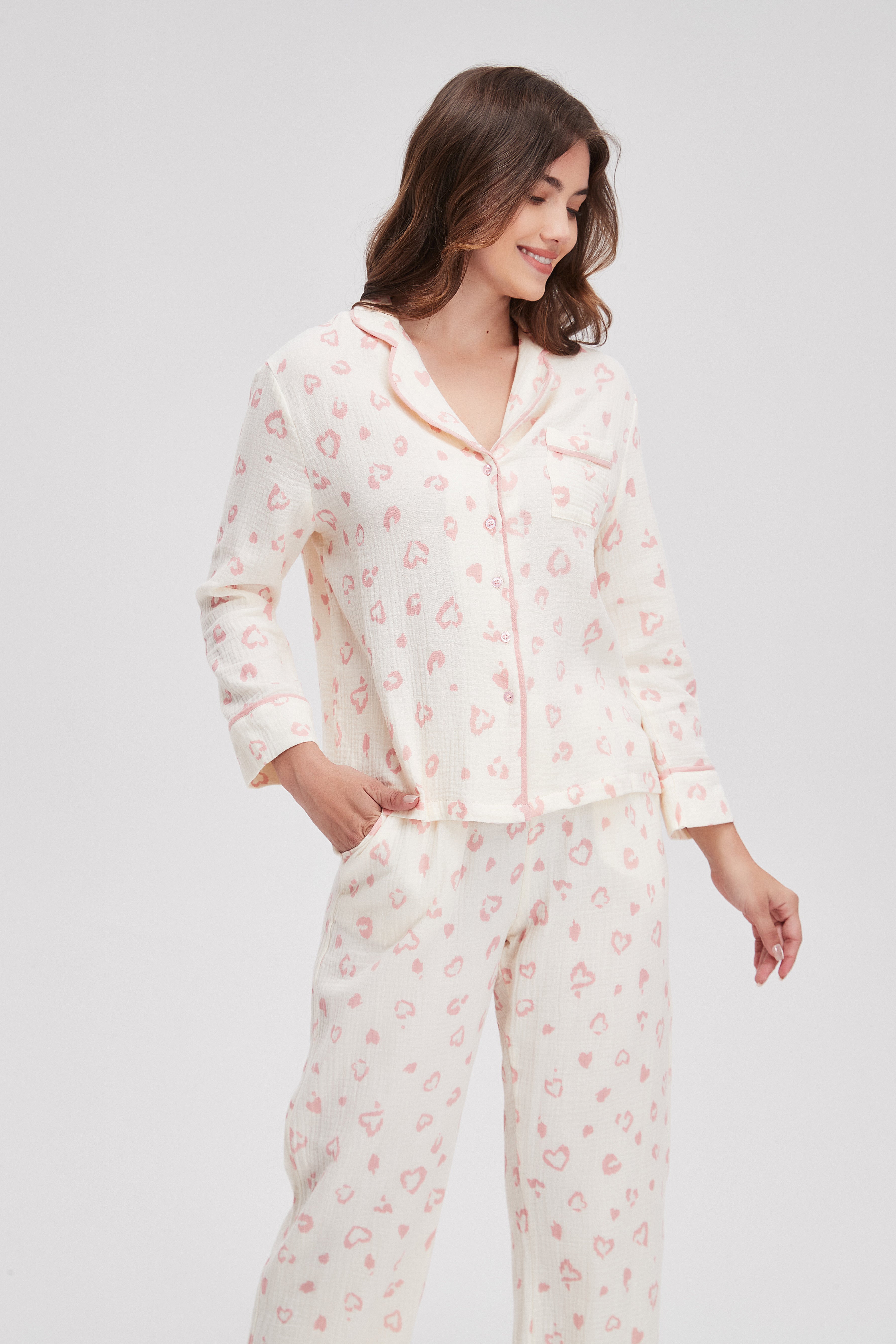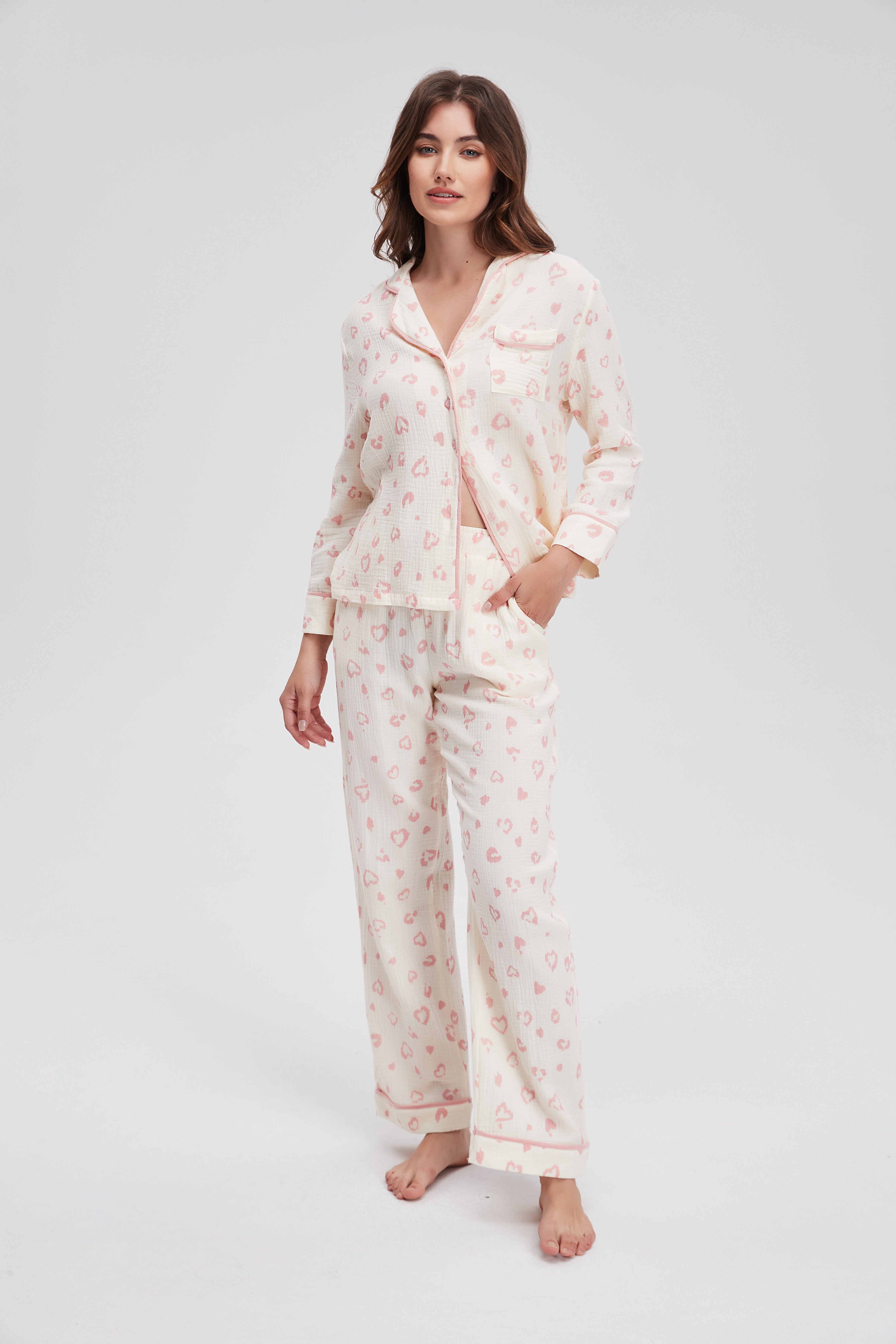 بيجامة منقوشة كم طويل وبنطلون