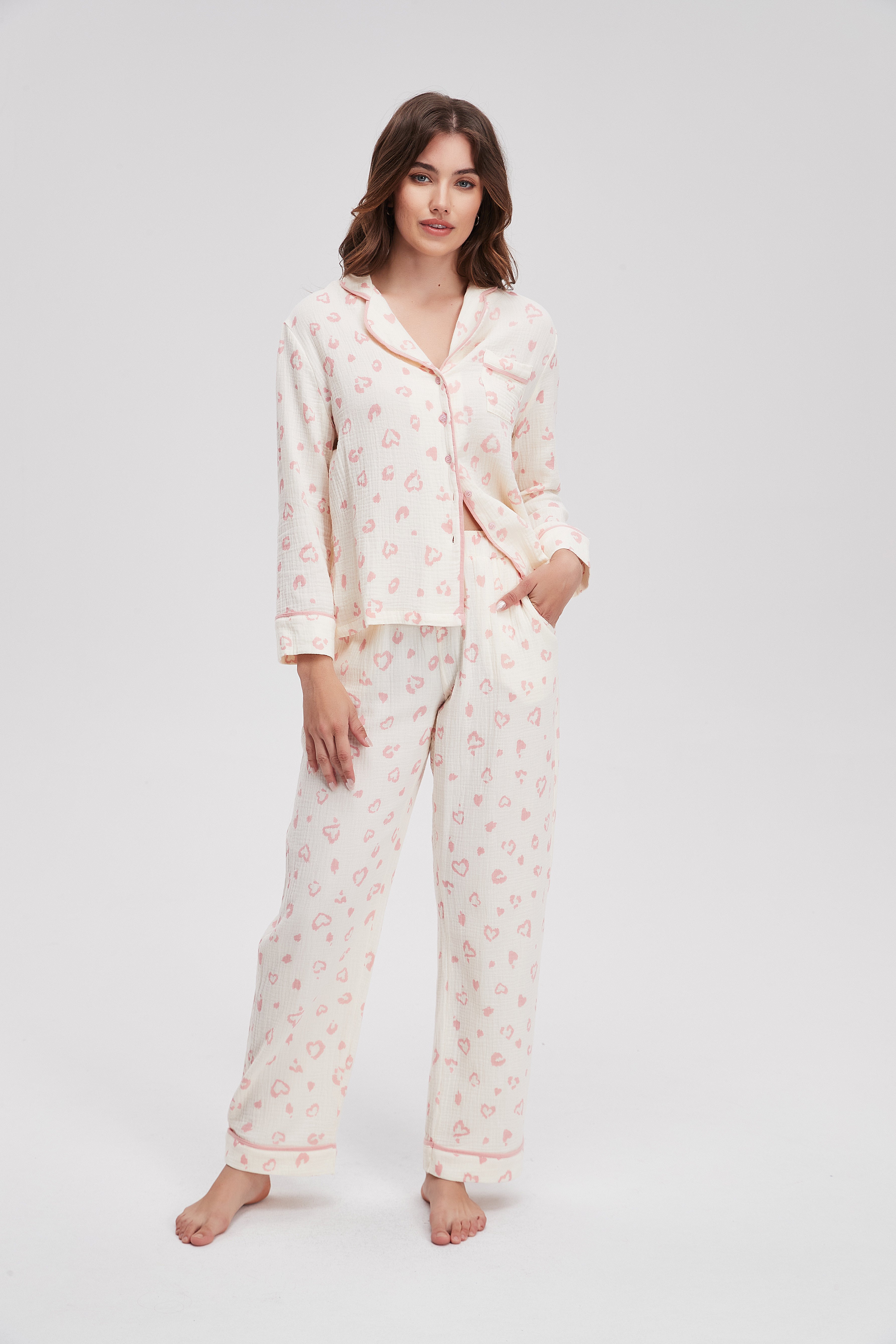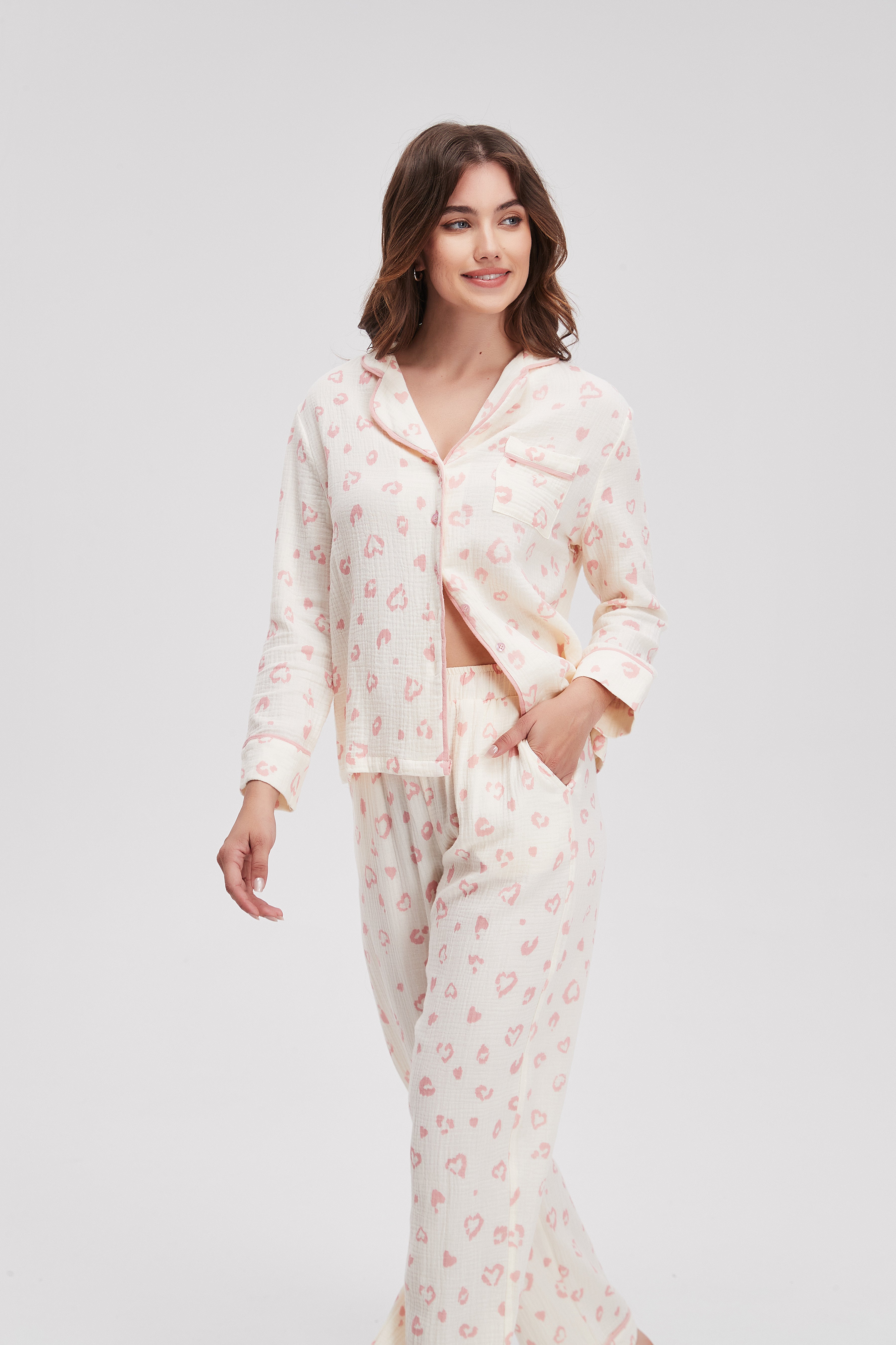 تمنحك بيجامة منقوشة كم طويل وبنطلون شعورًا بالراحة والأناقة في كل لحظة من لحظات استرخائك. تصميمها الفريد يجمع بين الأناقة والراحة، حيث تضفي النقوش الجميلة لمسة عصرية على مظهرك. هذه البيجامة مثالية للاستخدام في المنزل أو أثناء النوم، حيث توفر لك حرية الحركة ونعومة القماش. سواء كنت تستمتعين بوقت هادئ مع كتاب جيد أو تشاهدين فيلمًا مفضلًا، ستشعرين بالراحة التامة. لا تفوتي الفرصة لتجديد خزانة ملابسك، قومي بطلب بيجامتك الآن عبر الإنترنت واستمتعي بأناقة لا مثيل لها! رقم المنتج: ma0227w254vt