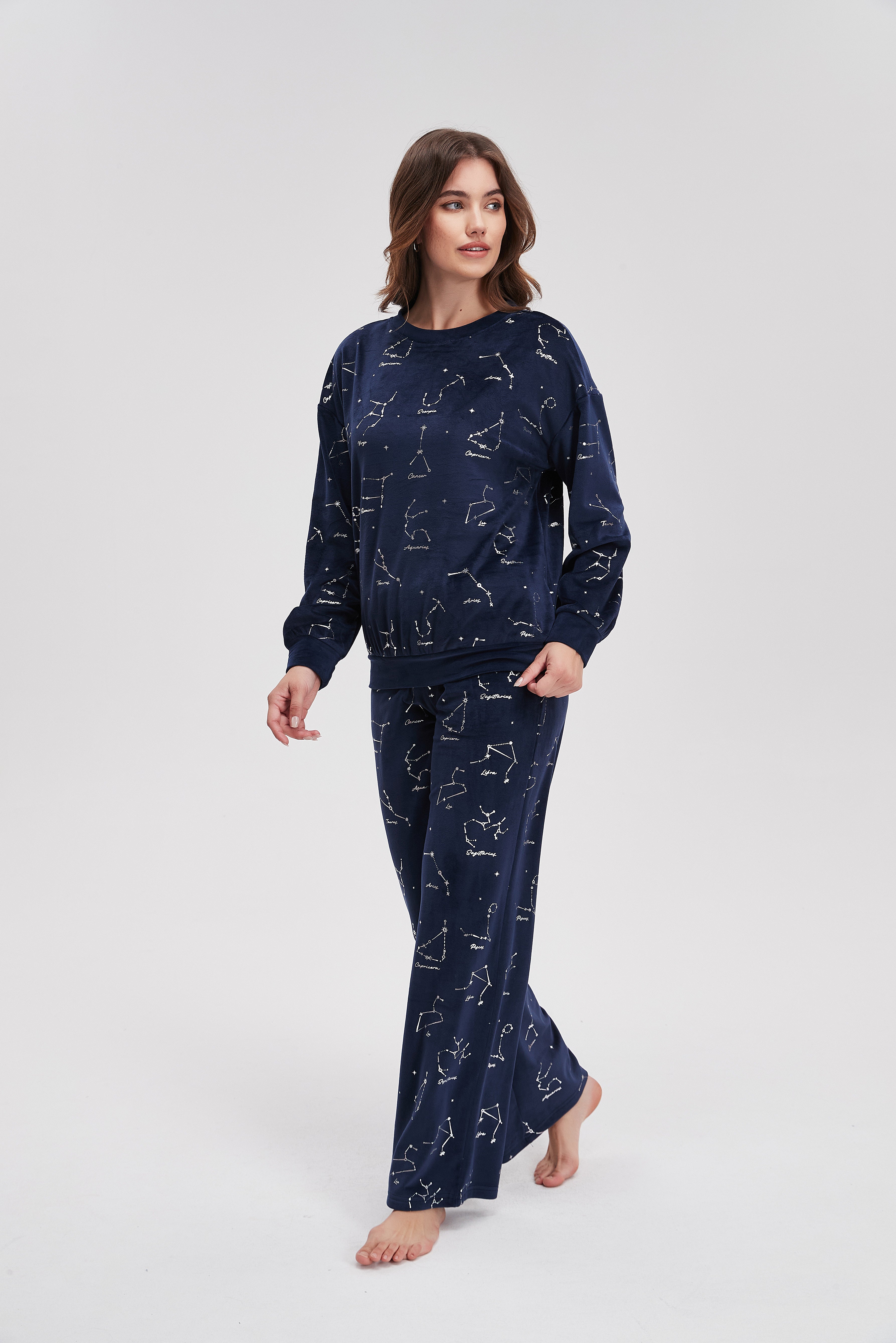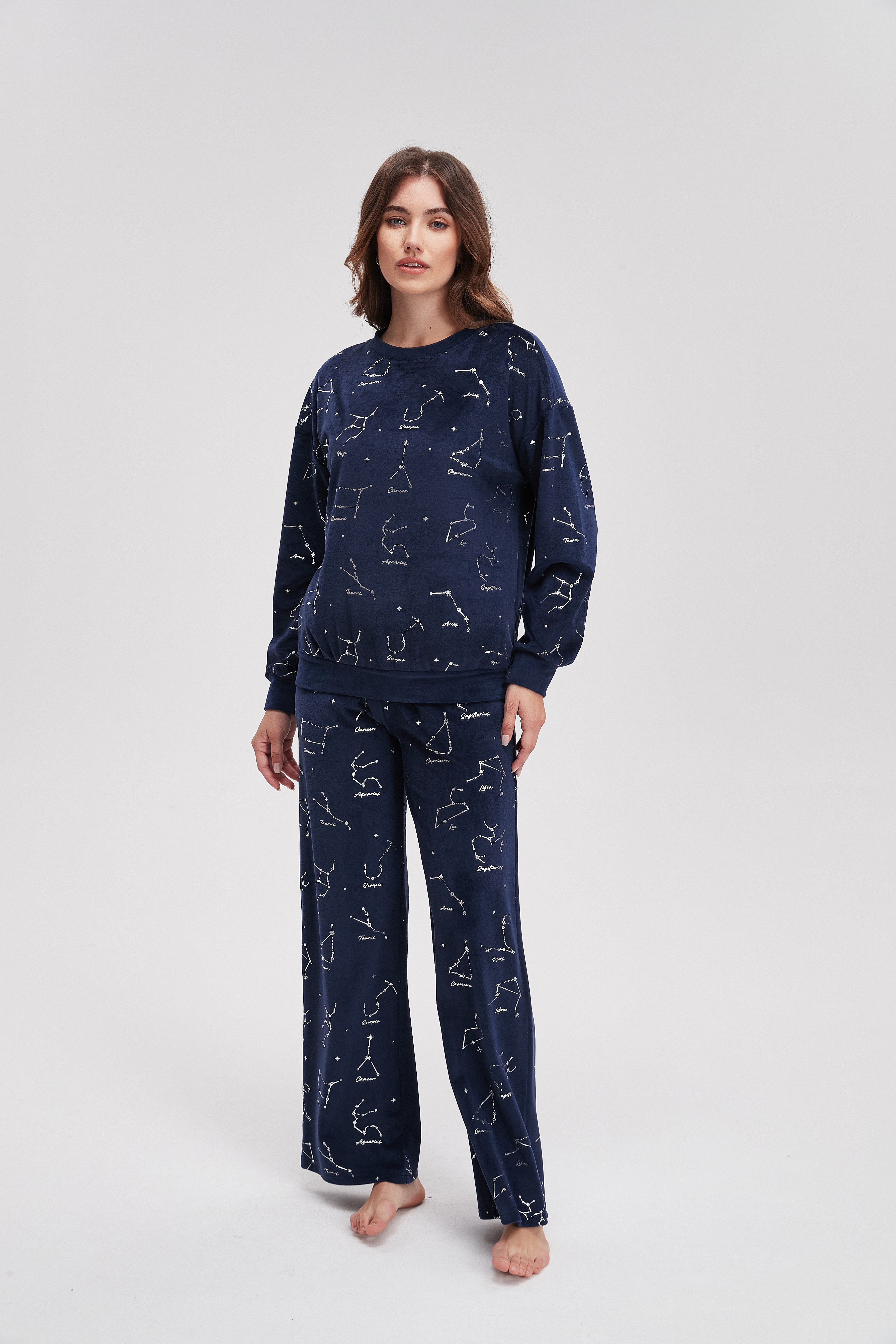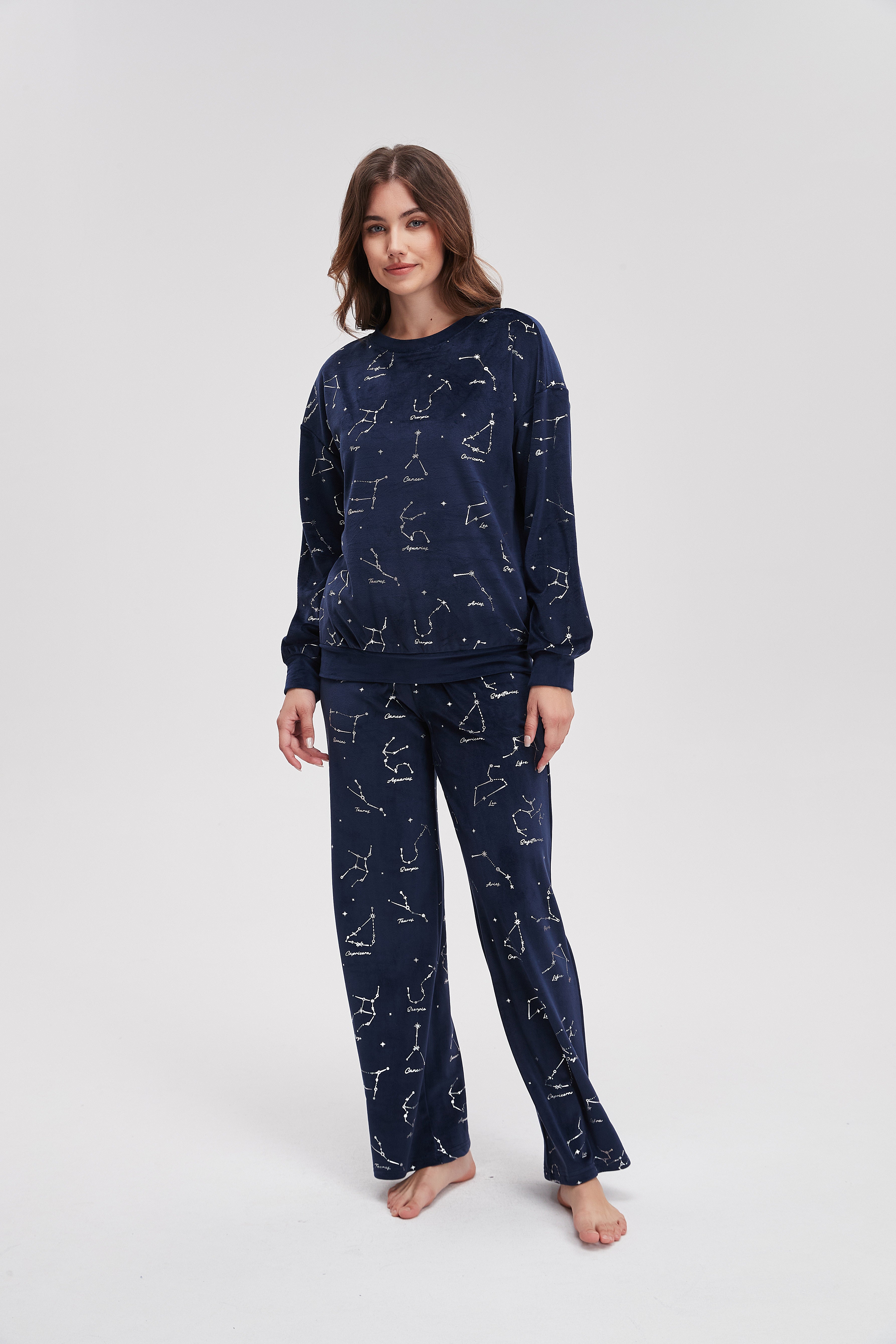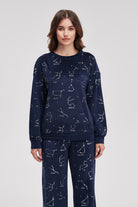 بيجامة شتوى منقوشة كم طويل وبنطلون