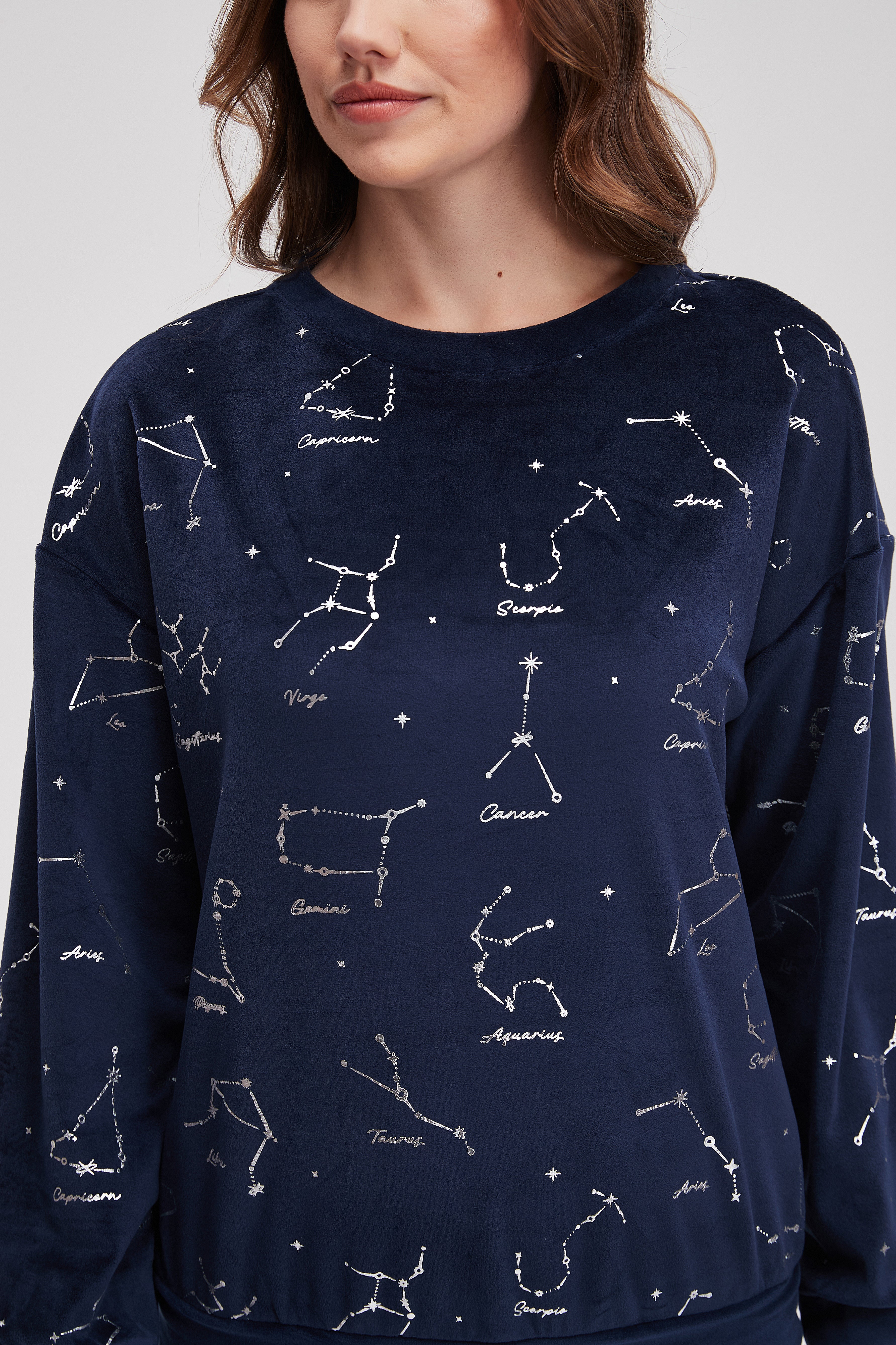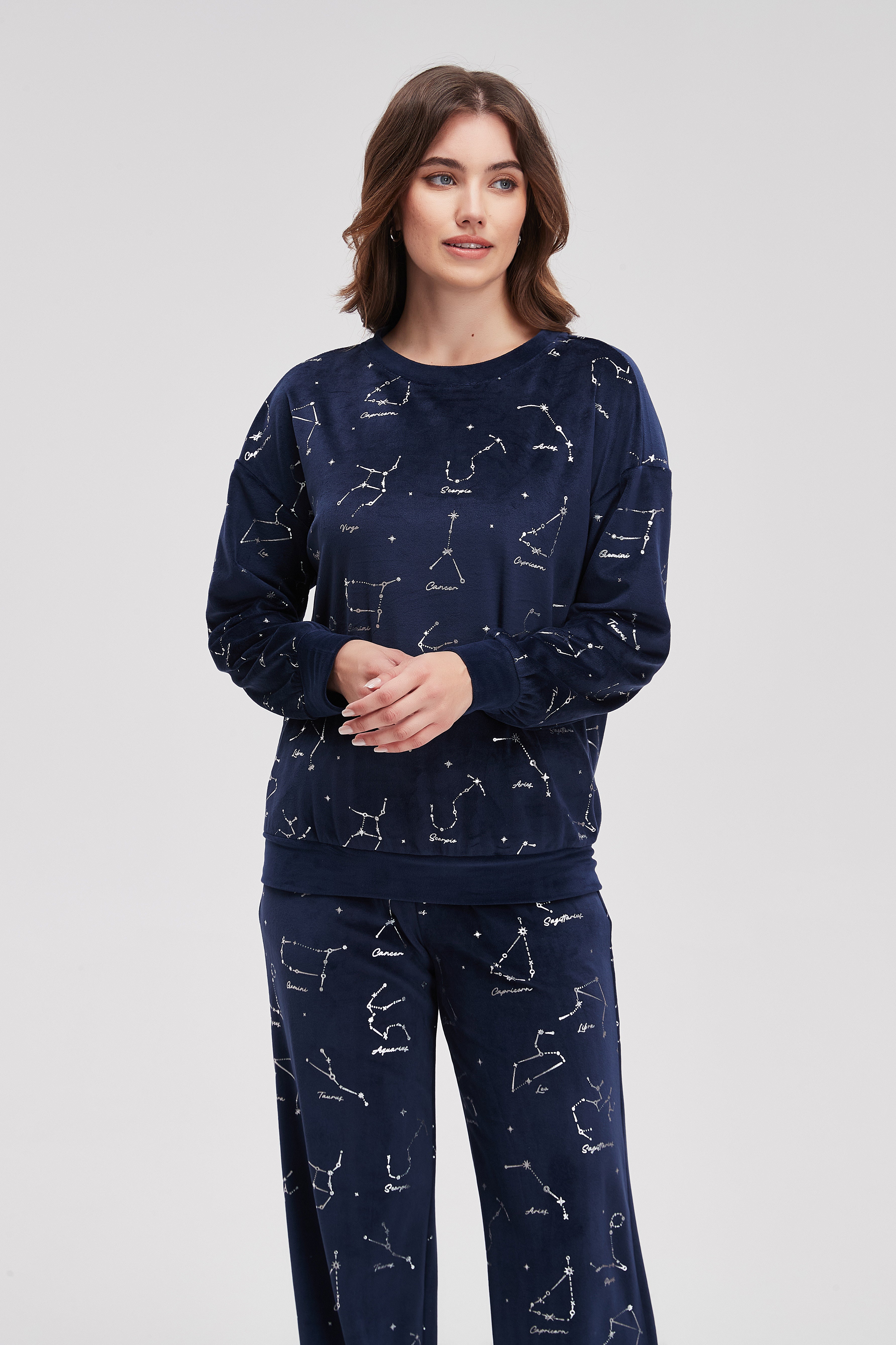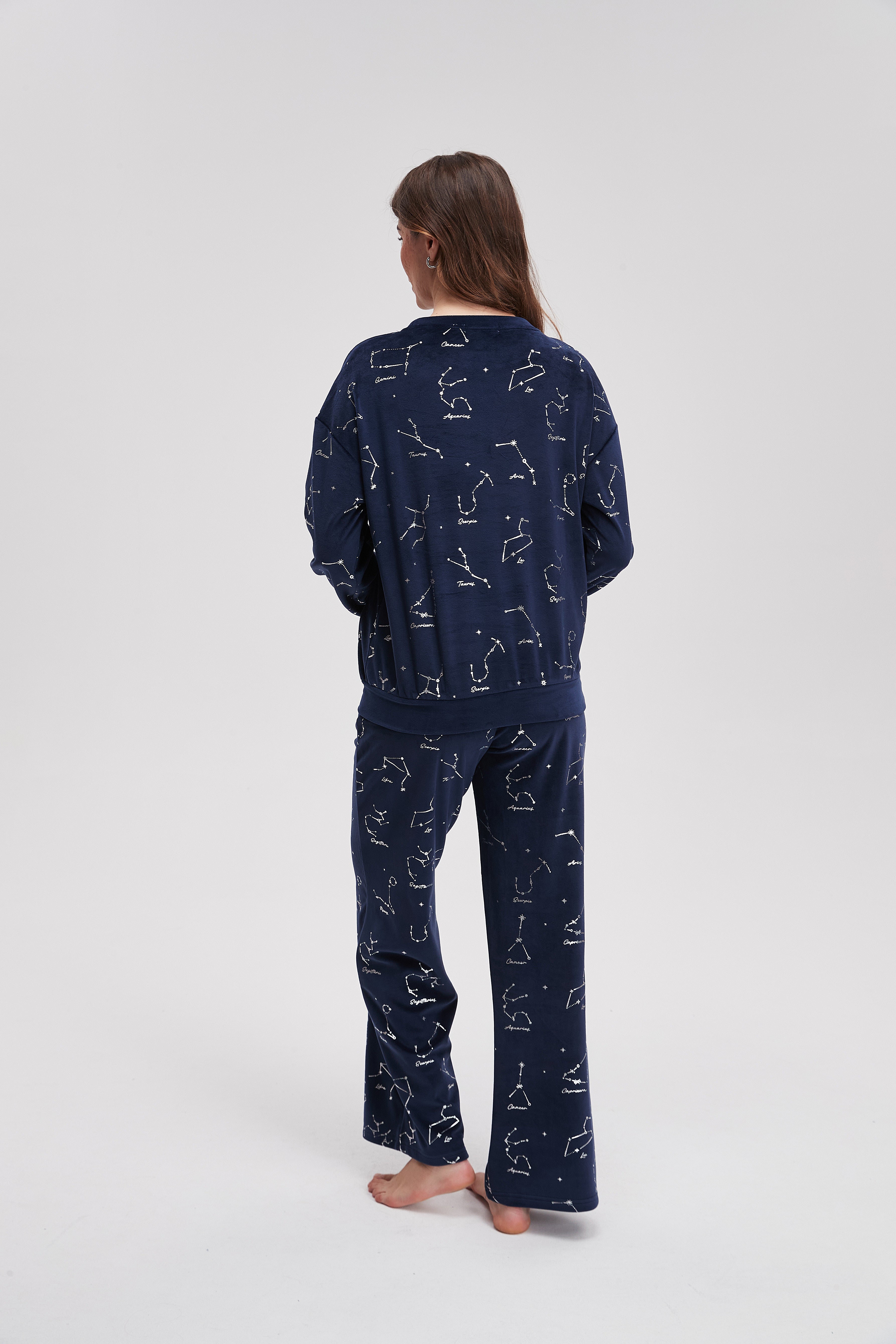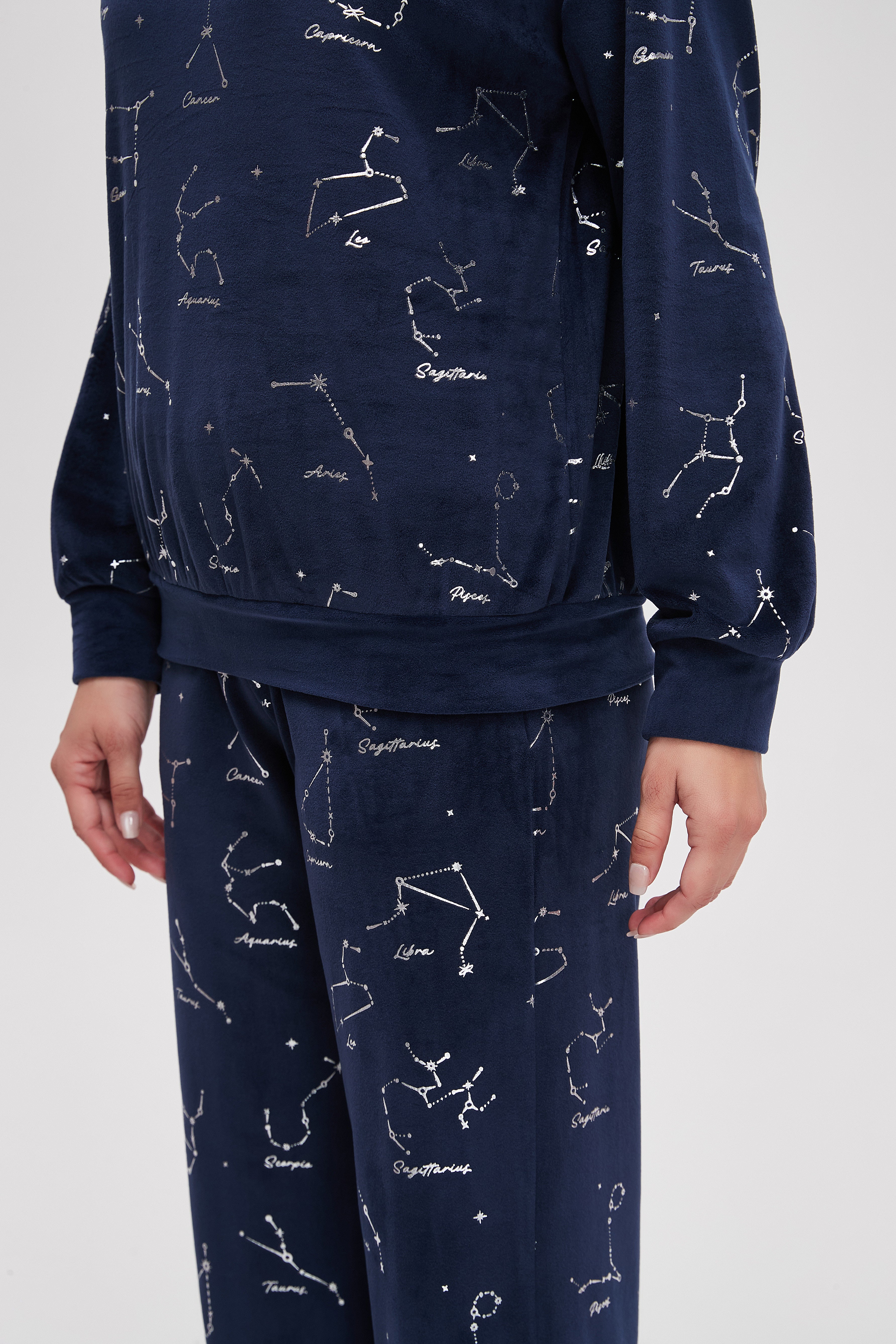 بيجامة شتوى منقوشة كم طويل وبنطلون