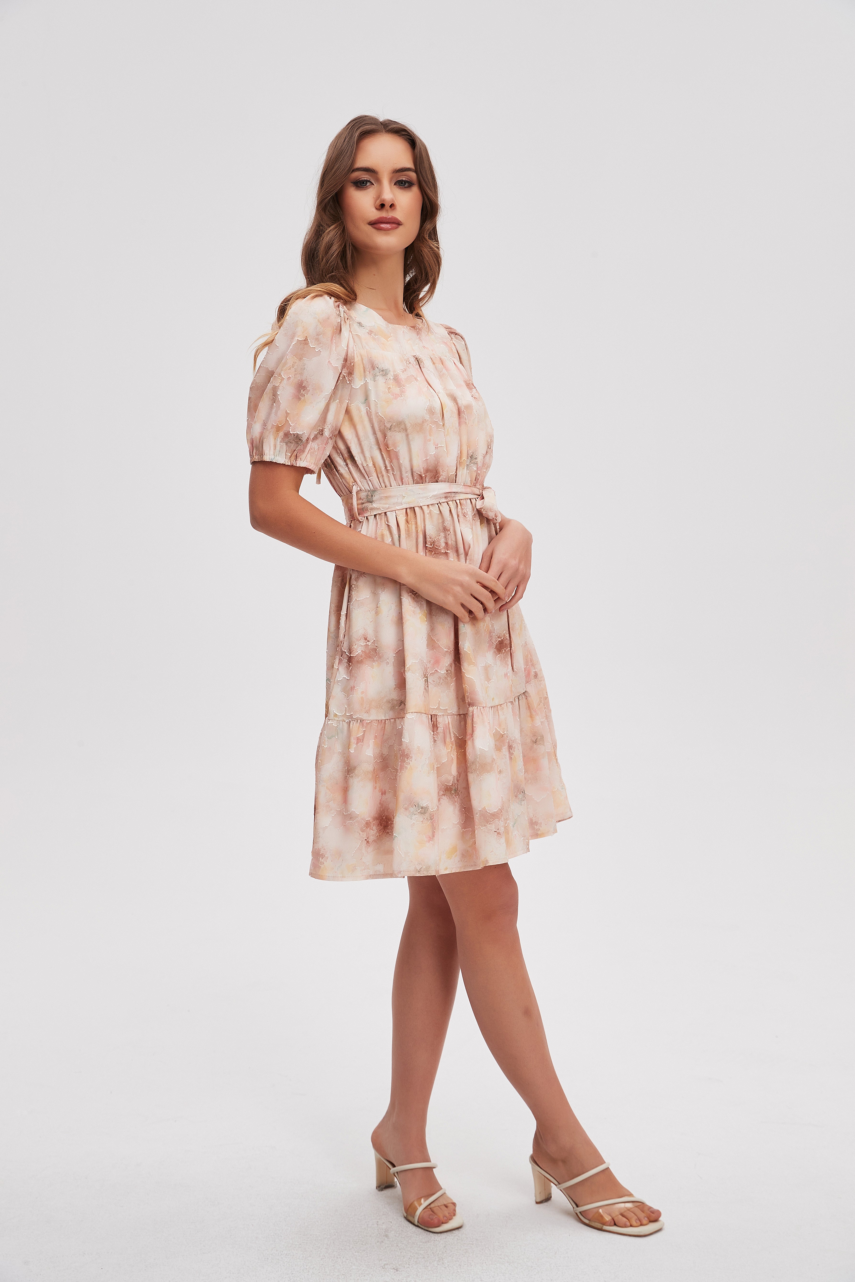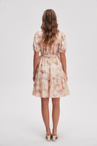 فستان قصير منقوش نصف كم