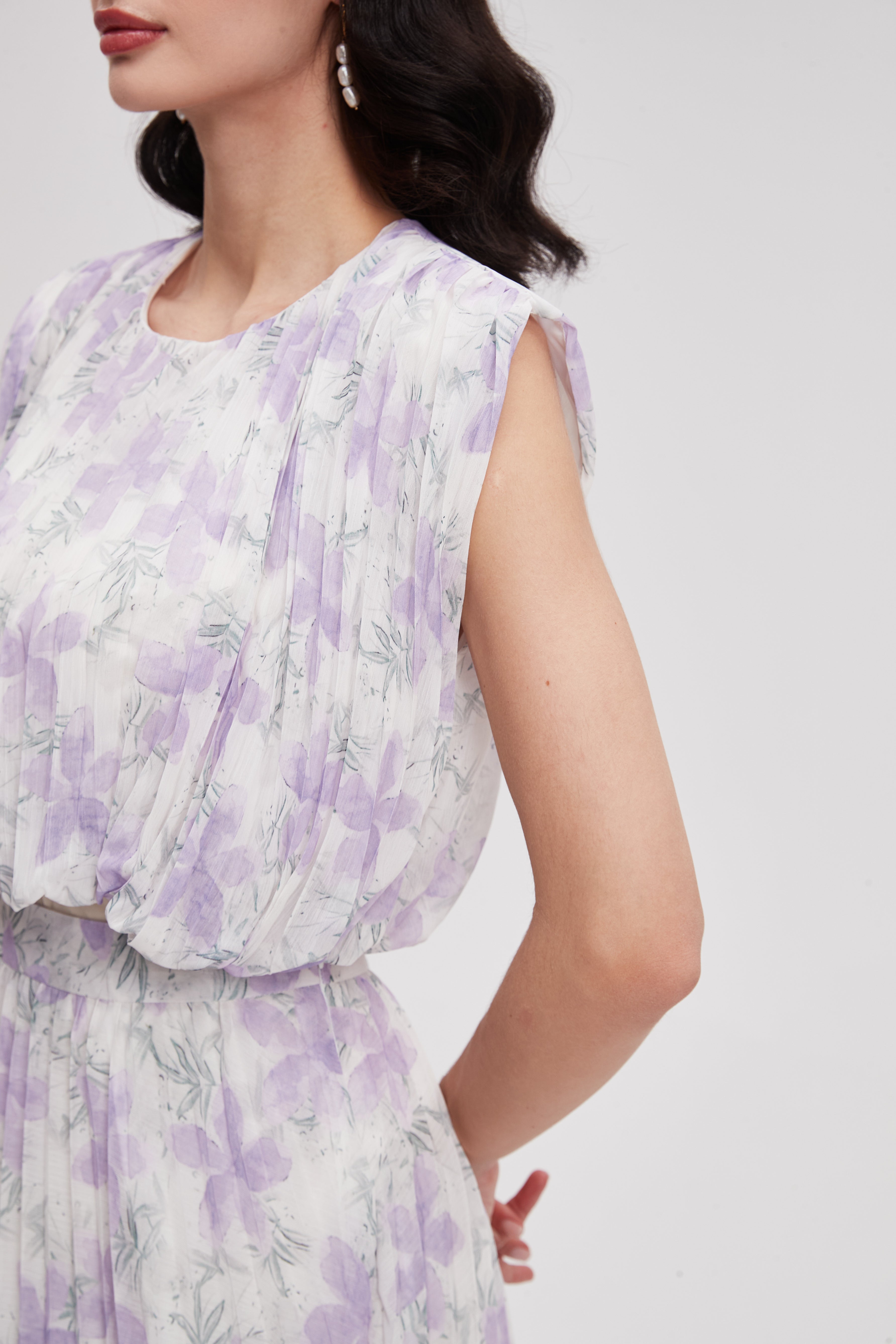 بلوزة بنقشة ورود بأكمام قصيرة