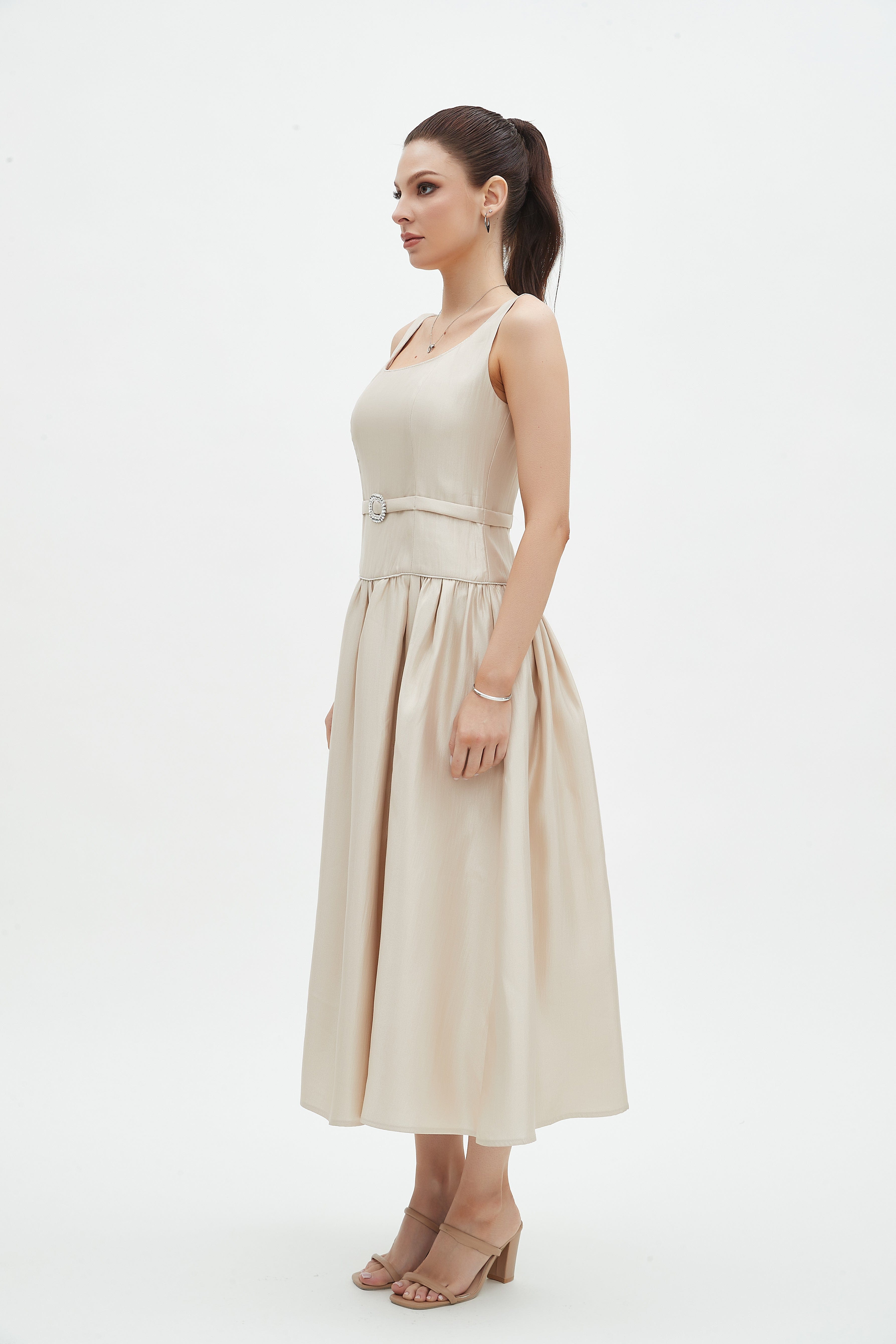 لما تبحثين عن فستان يجمع بين البساطة والأنوثة، هذا الفستان رائع للخروجات الكاجوال والأيام التي تريدين فيها مظهر مرتب بسرعة. الخامة مكونة من 70% فيسكوز و10% نايلون و20% بوليستر فتعطي ملمس ناعم مع مرونة ومتانة، وهناك لمسة داخلية خفيفة من بوليستر 100% بينما التصميم العام لا يحتوي على بطانة كاملة، لذا يناسب كل المواسم بسماكة متوسطة. قصة A ميدي تزيده أنوثة من دون تكلف، وياقة مربعة بدون أكمام تمنحك إطلالة نظيفة ومناسبة للنهار أو للعشاء البسيط. يثبت السحاب العملي عند الظهر أو الجانب حسب القصّة، والحزام المرفق يبرز الخصر ويمنحك خيارات تنسيق متعددة. ستحبين كيف يتحرك معك ويبدو أنيقاً مع صندل نهاري أو حذاء بكعب منخفض للمساء. اعثري على مقاسك في فاشن السعودية وأضيفي هذه القطعة المتنوعة إلى خزانة ملابسك اليوم.
