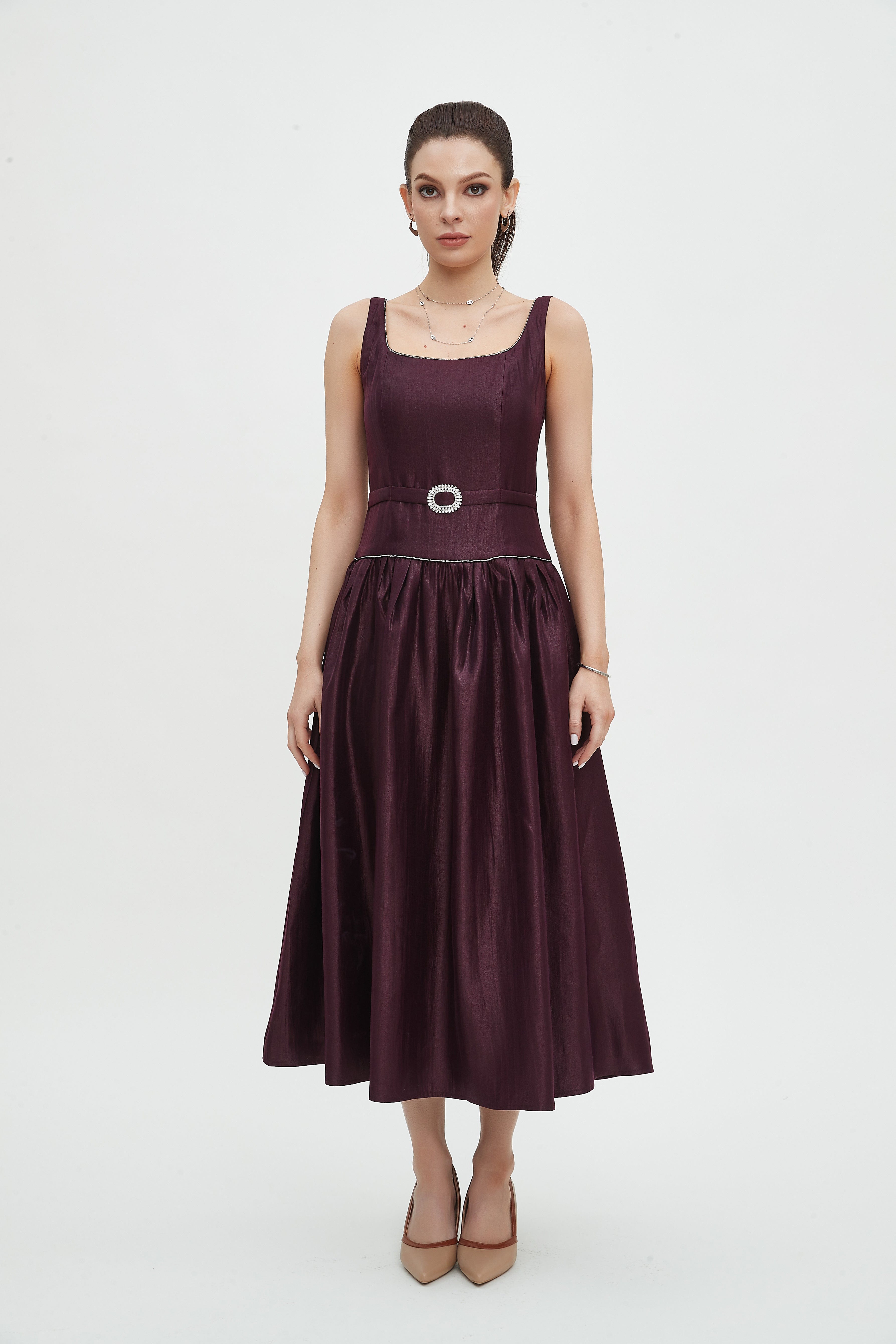 - التنسيق: نسّقيه مع صنادل نهارية وقبّعة للخروج، أو حذاء بكعب منخفض وحقيبة صغيرة للمساء. استخدمي الحزام المرفق لتحديد الخصر، وضعِي سويتر خفيف أو جاكيت للطبقات في الأيام الباردة.