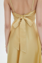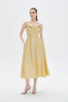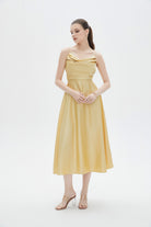 فستان نسائي ميدي سادة بحمالات وتفاصيل كشكش