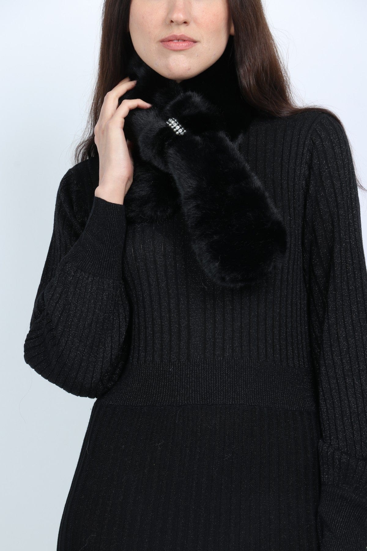 وشاح فرو صغير بدبوس على الرقبة نسائي