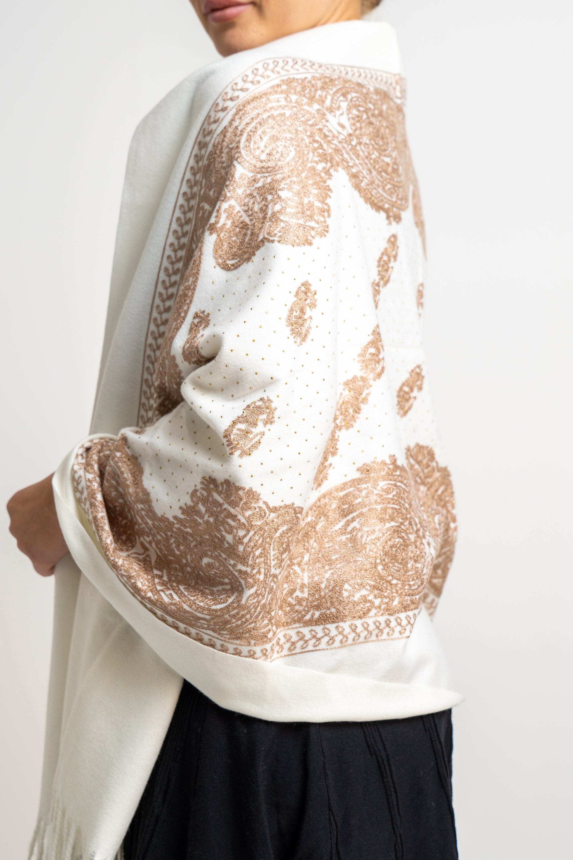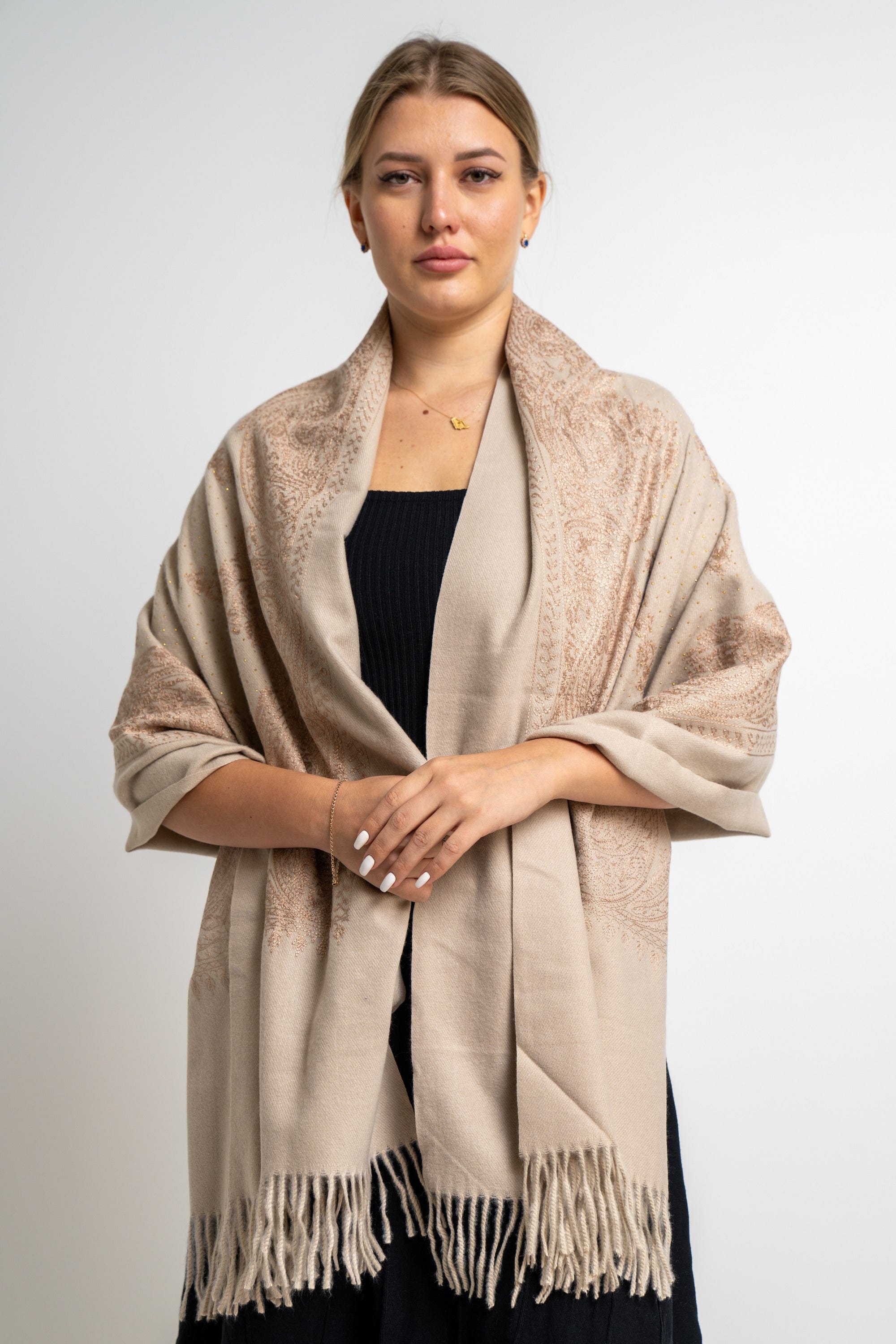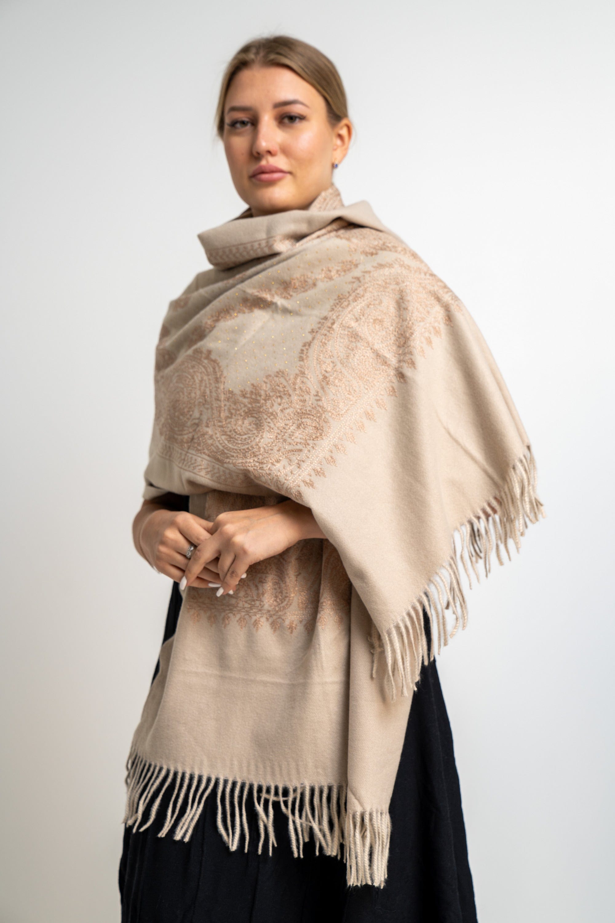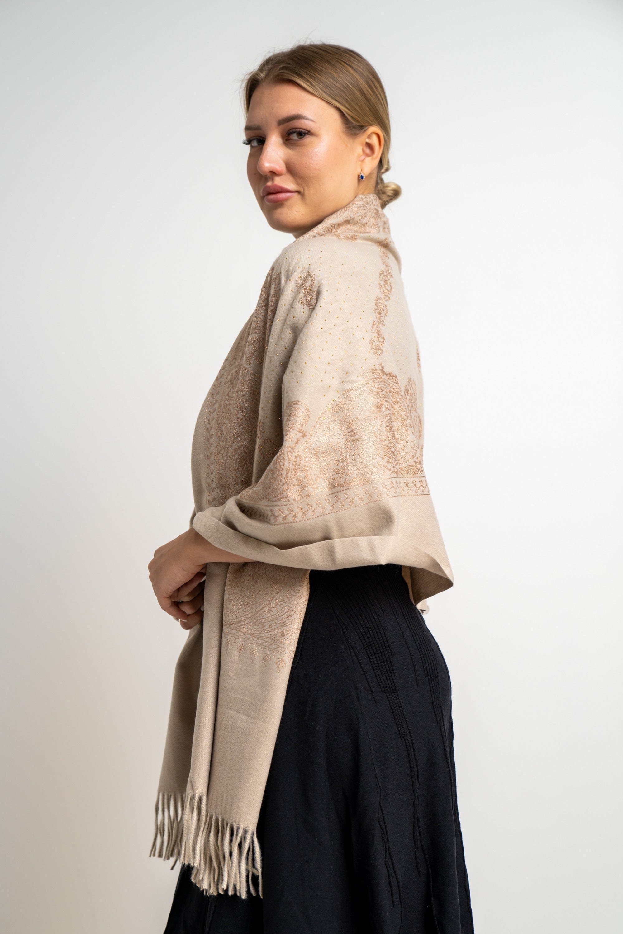 شال منقوش نسائى متداخل مزين بخيط
