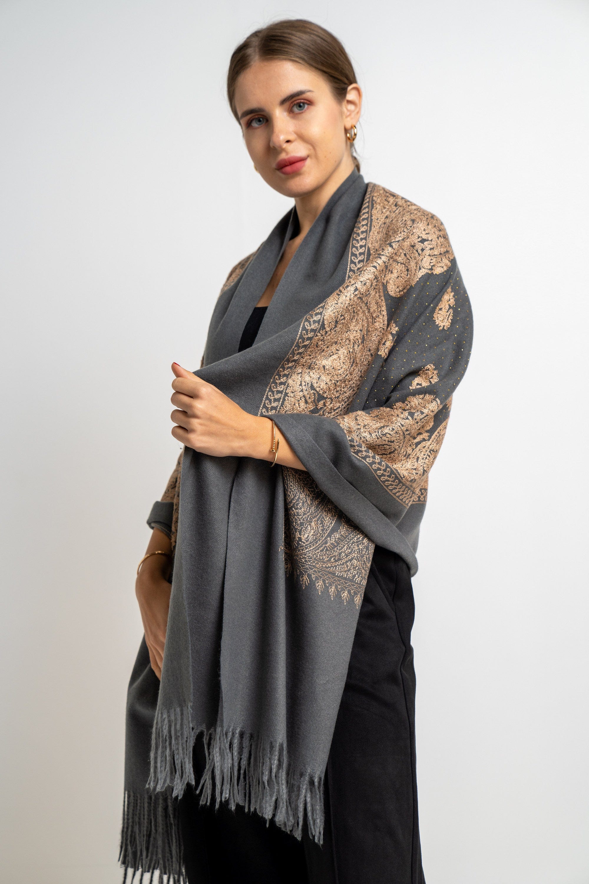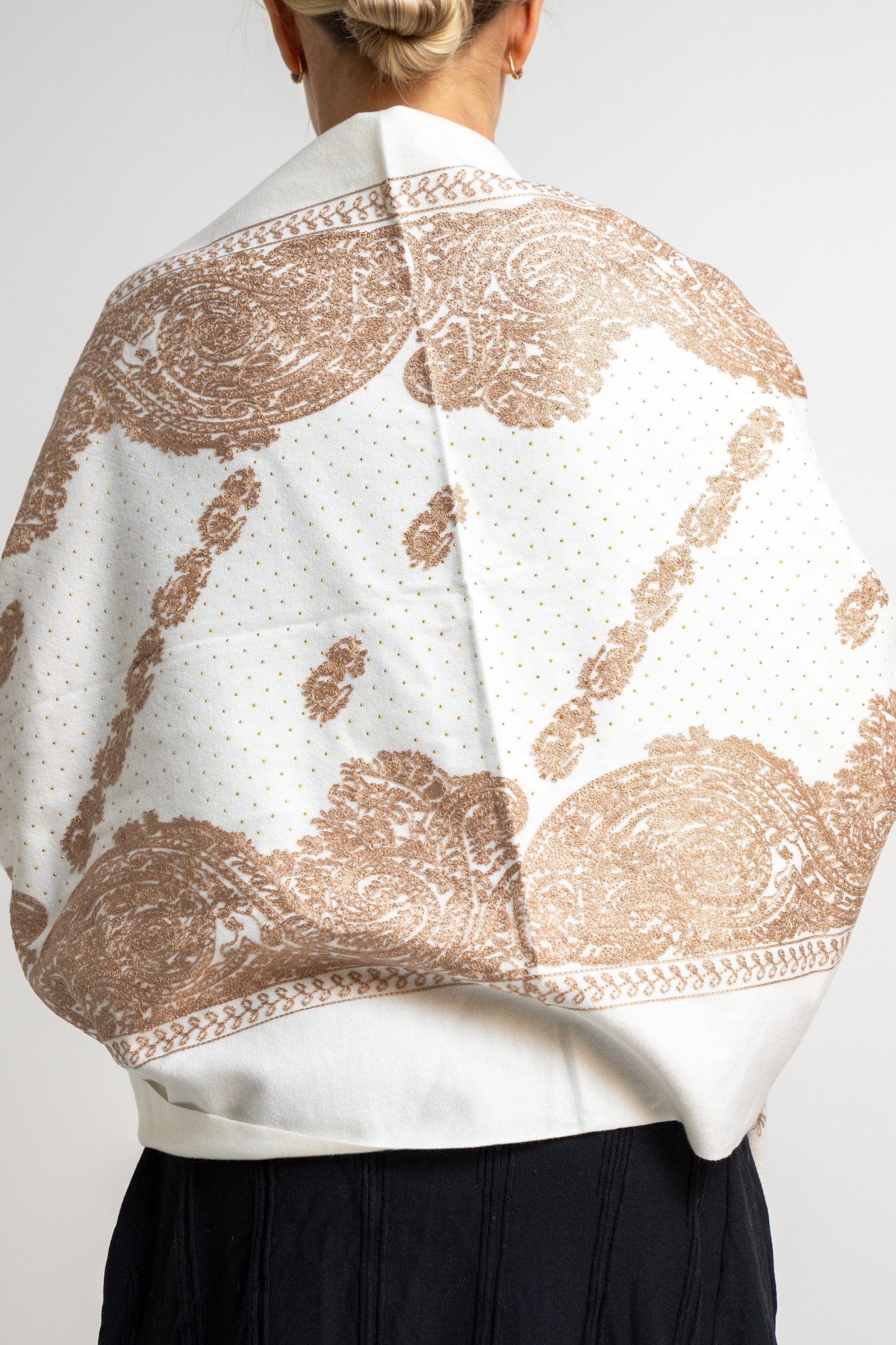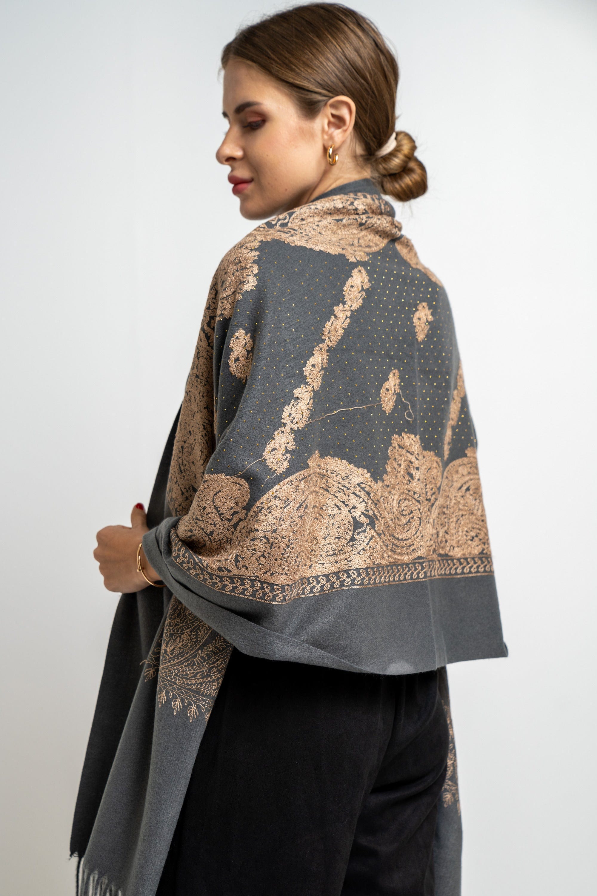 شال منقوش نسائى متداخل مزين بخيط