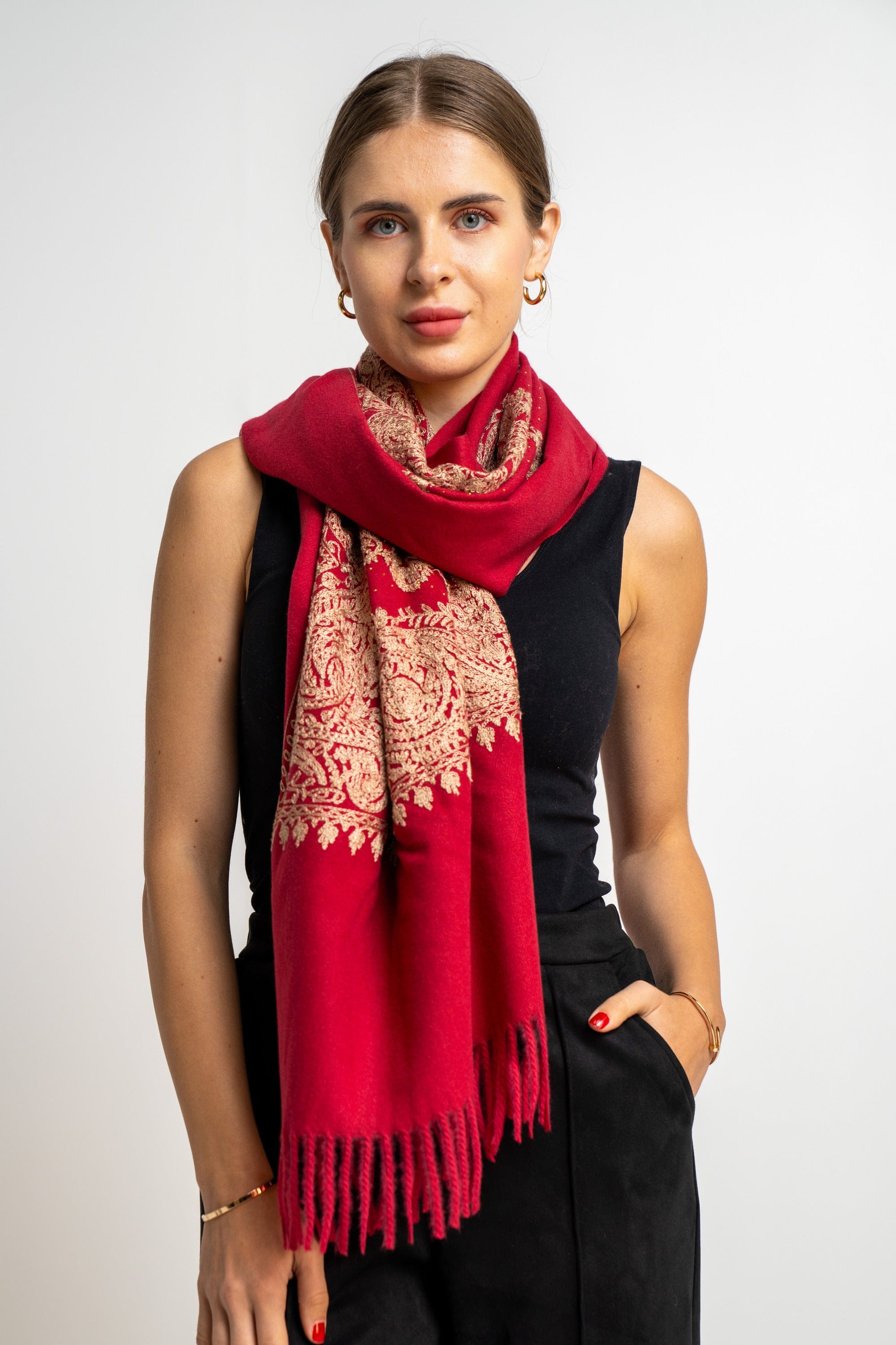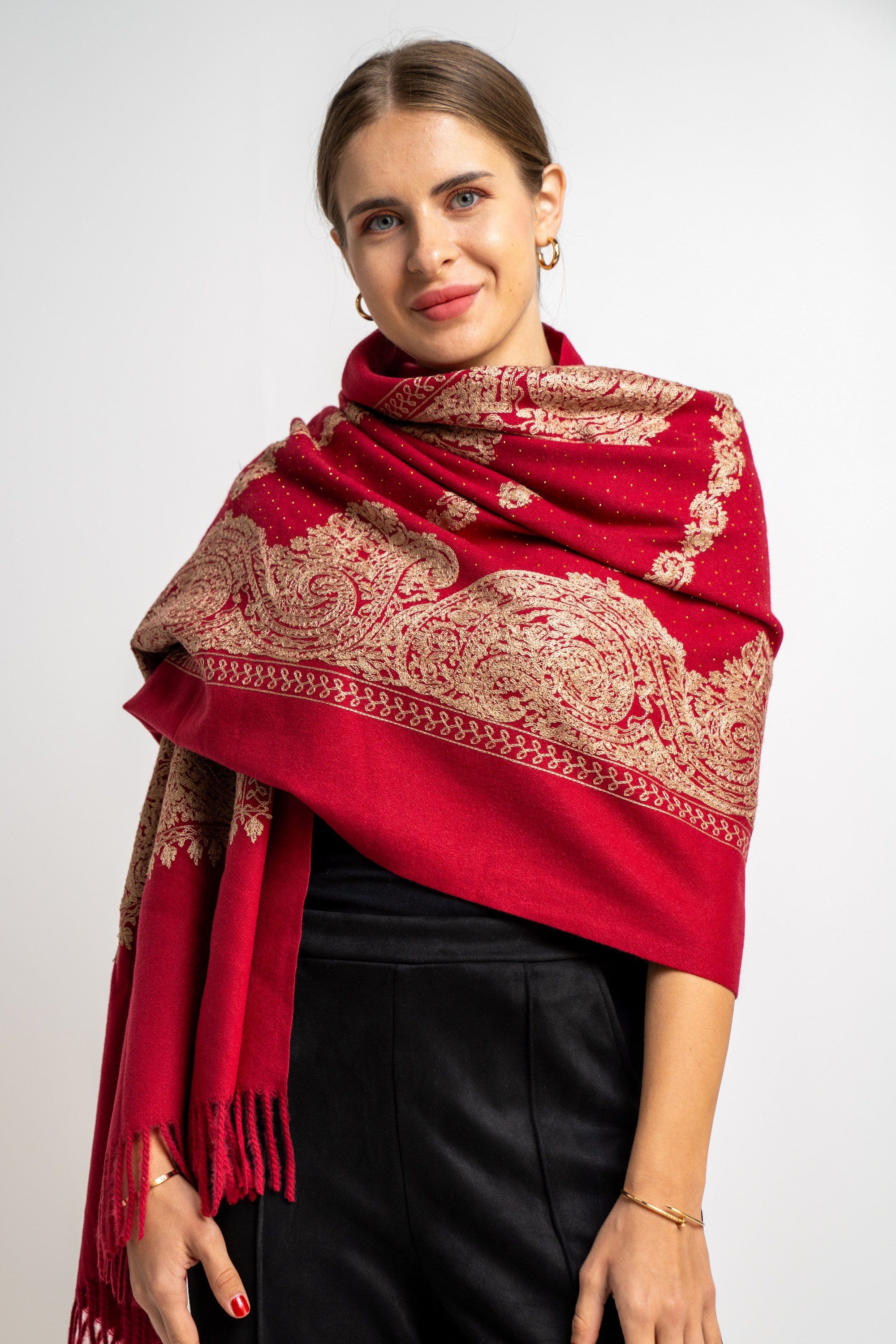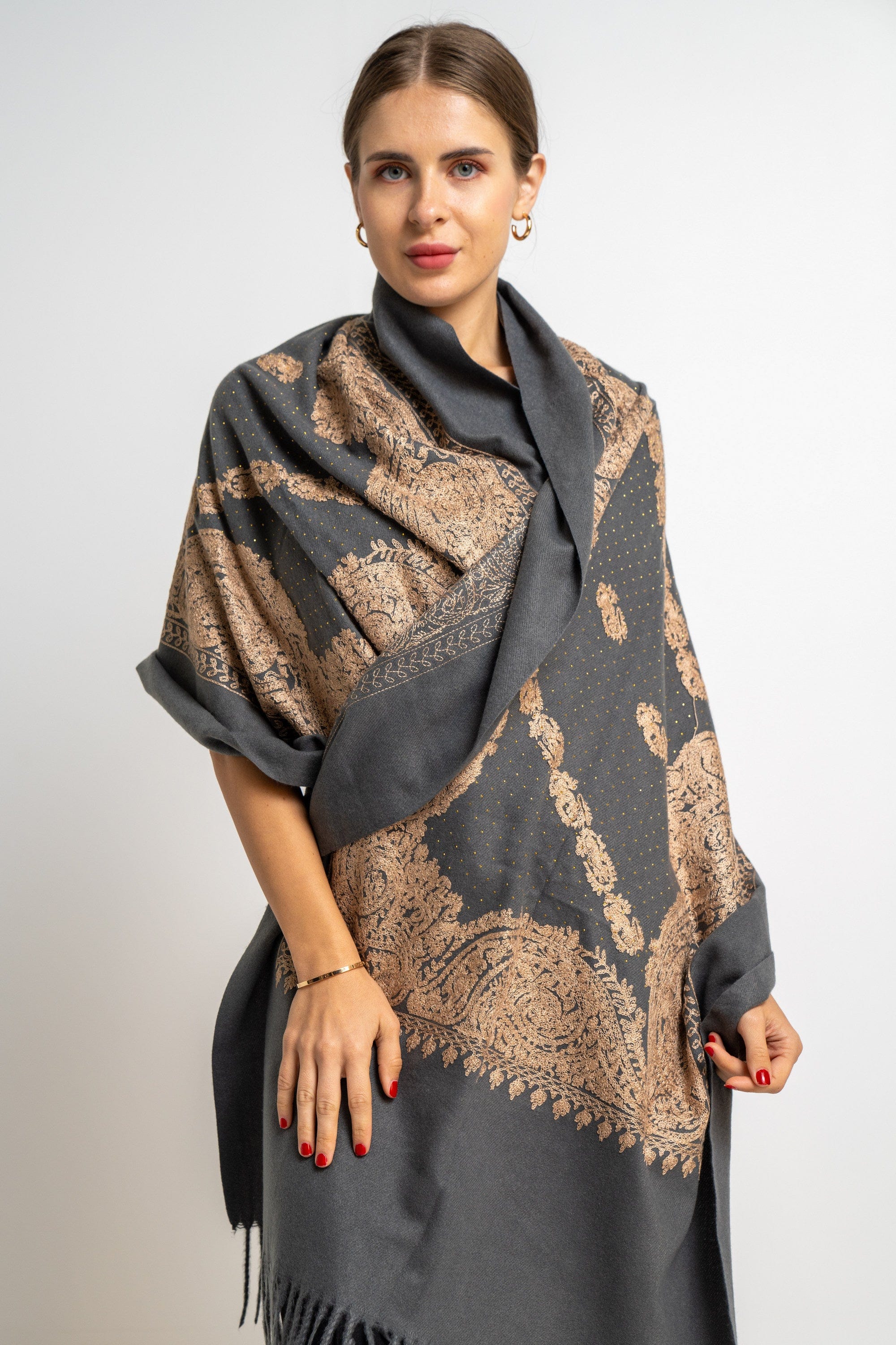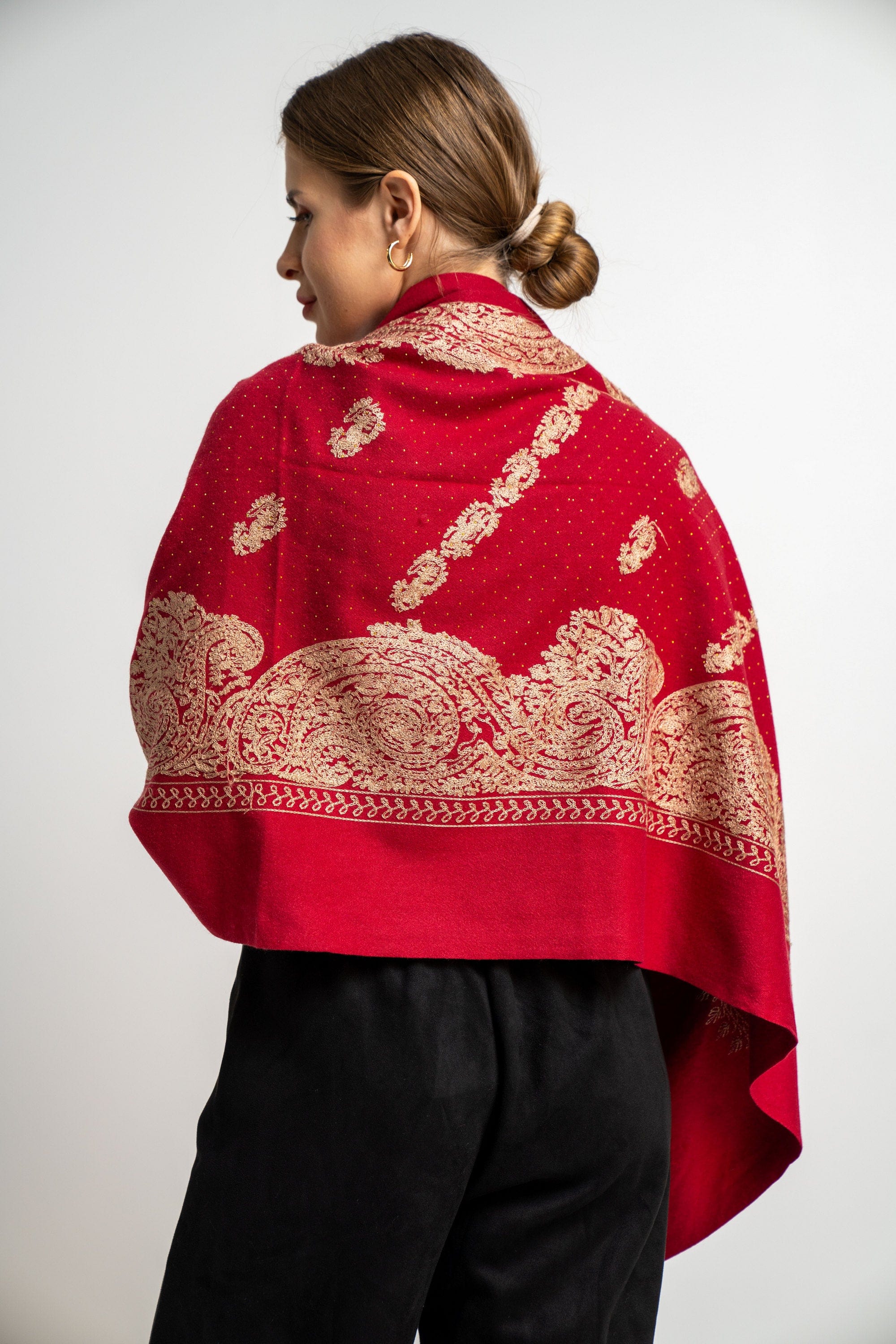 شال منقوش نسائى متداخل مزين بخيط