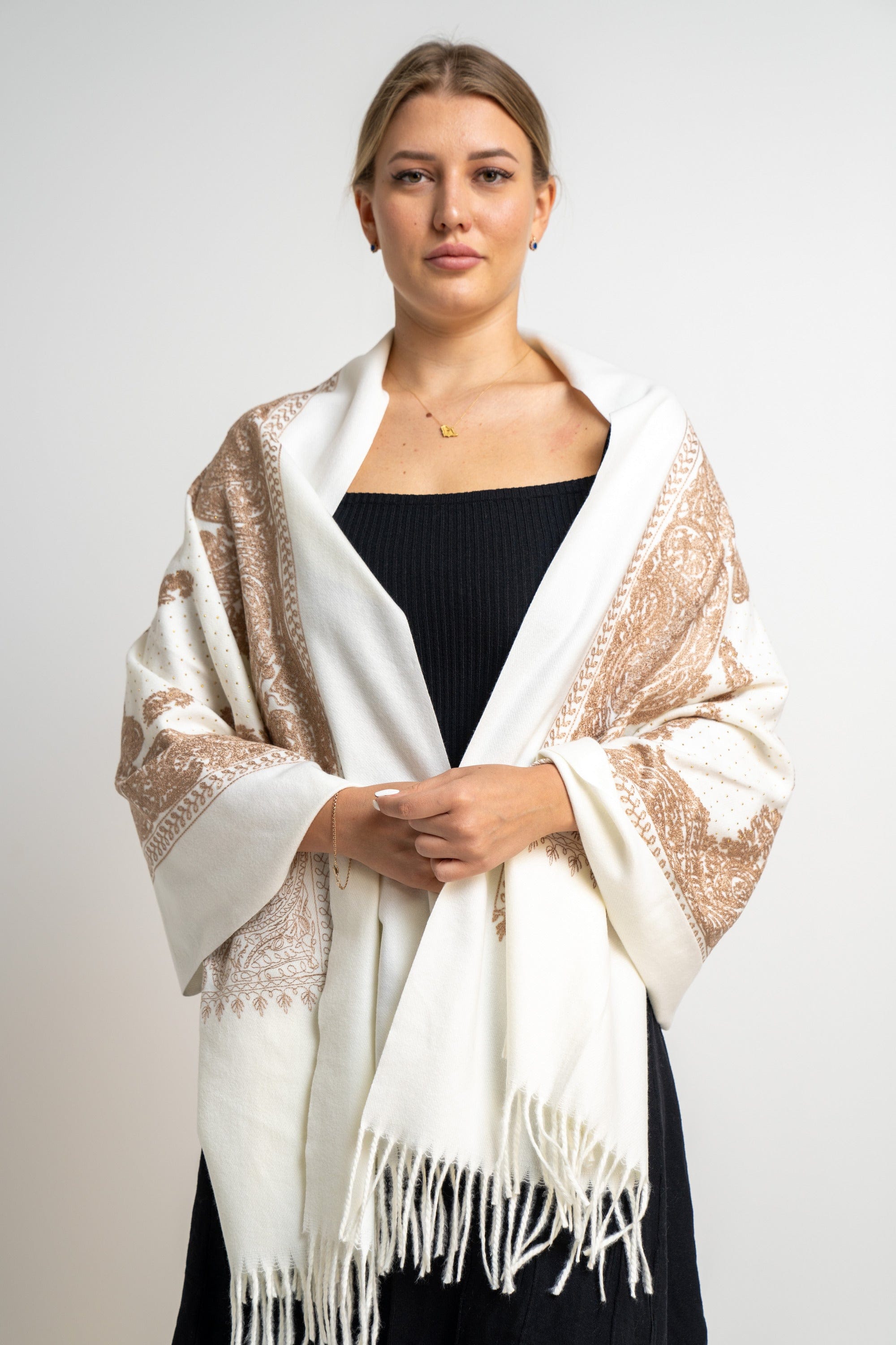 استعدي للتألق بشال منقوش نسائي متداخل مزين بخيط من ميكا. يتوفر هذا الشال بأربعة ألوان رائعة: جملي، كريمي، رمادي داكن ومارون. تم تصميم هذا الشال بأناقة فائقة وتفاصيله المميزة تجعله مثاليًا لإضفاء لمسة جمالية على إطلالتك. يتميز بتصميمه المنقوش المتداخل والزخرفة بالخيط، مما يضفي لمسة فريدة وجذابة. يمكنك ارتداء هذا الشال مع ملابسك اليومية أو الرسمية للحصول على إطلالة أنيقة وعصرية. احصلي الآن على شال منقوش نسائي متداخل مزين بخيط من ميكا وأضيفي لمسة أناقة إلى إطلالتك. اطلبيه الآن واستمتعي بأفضل المنتجات من فاشن السعودية. رقم المنتج: mfa053sv