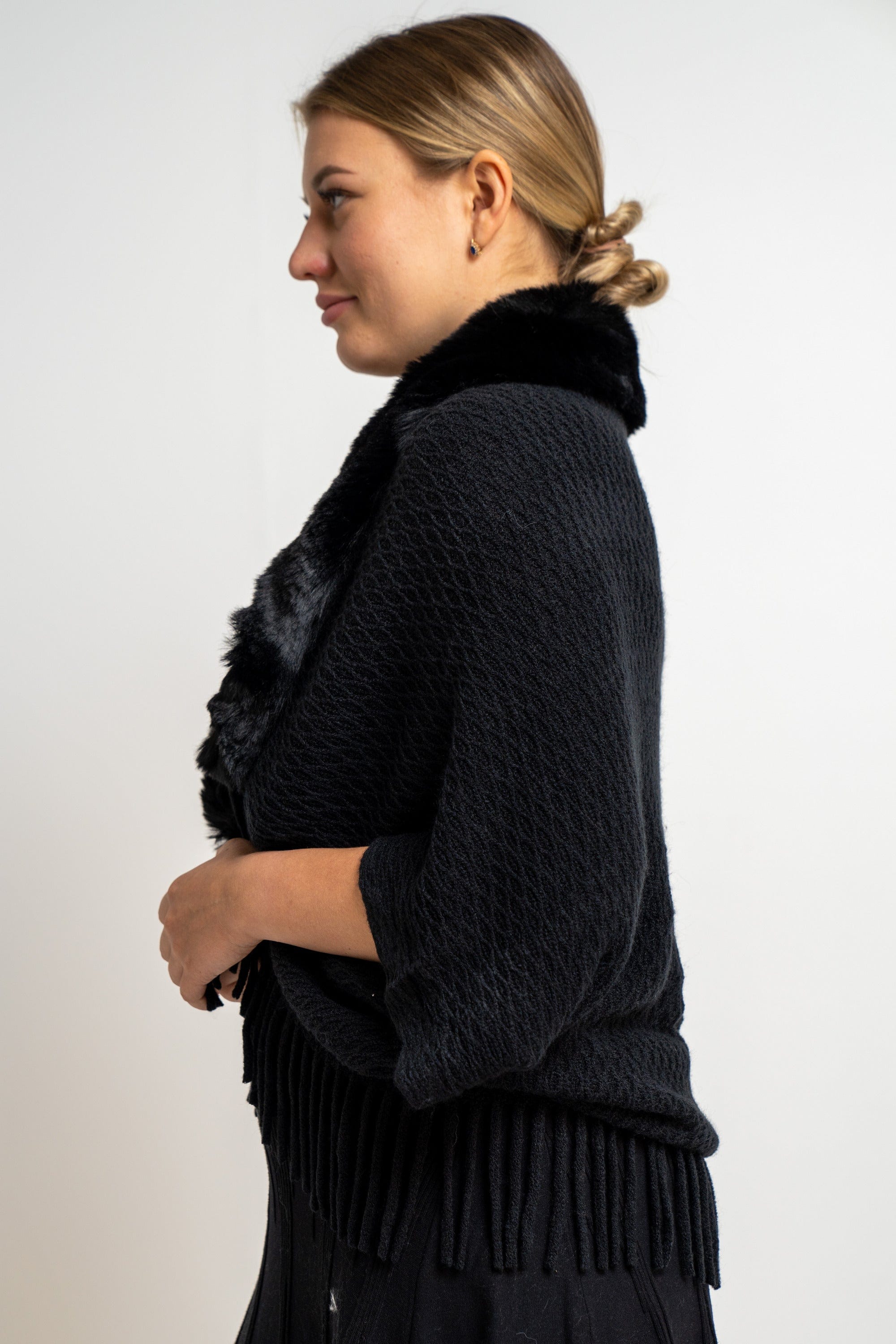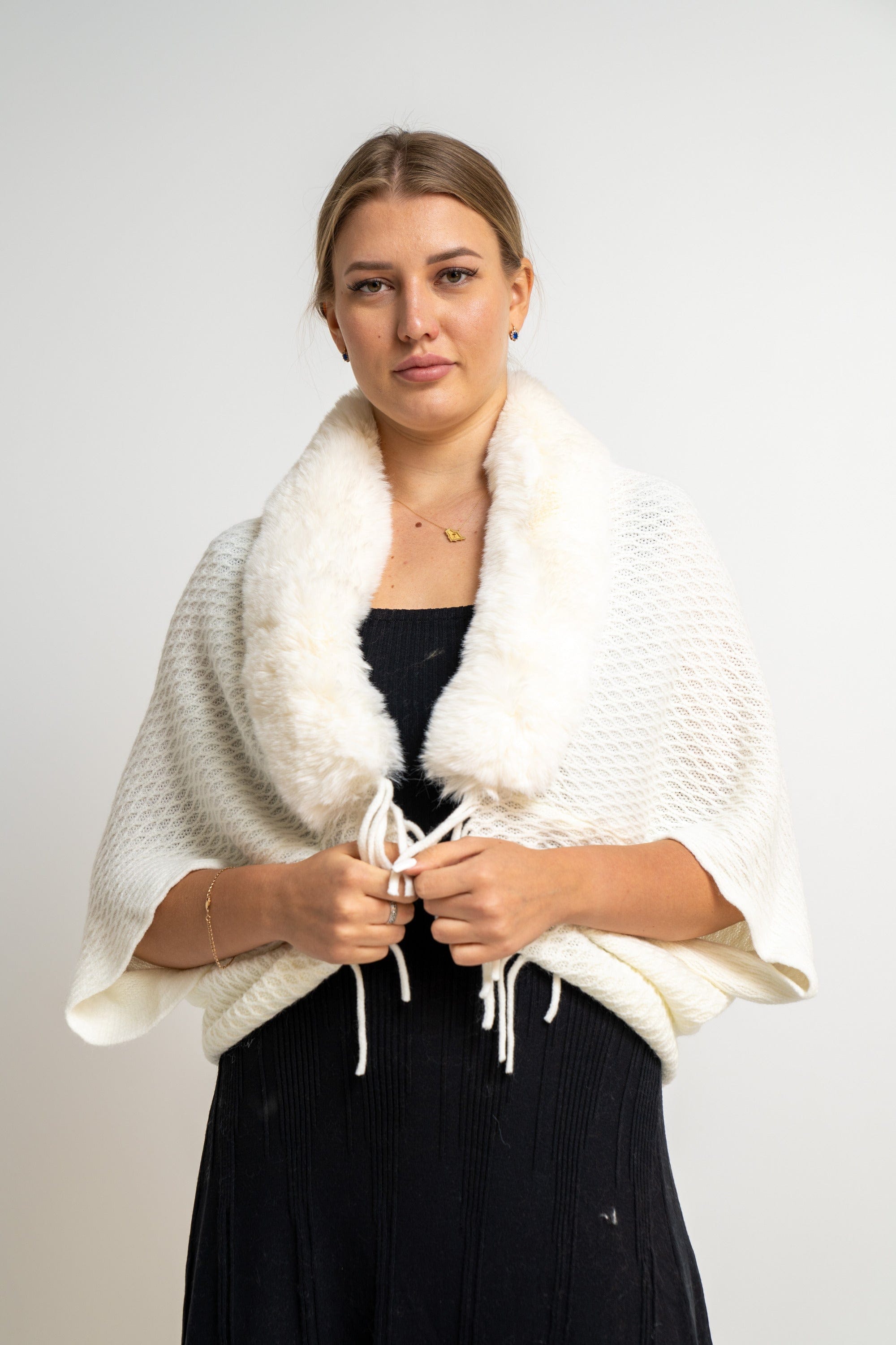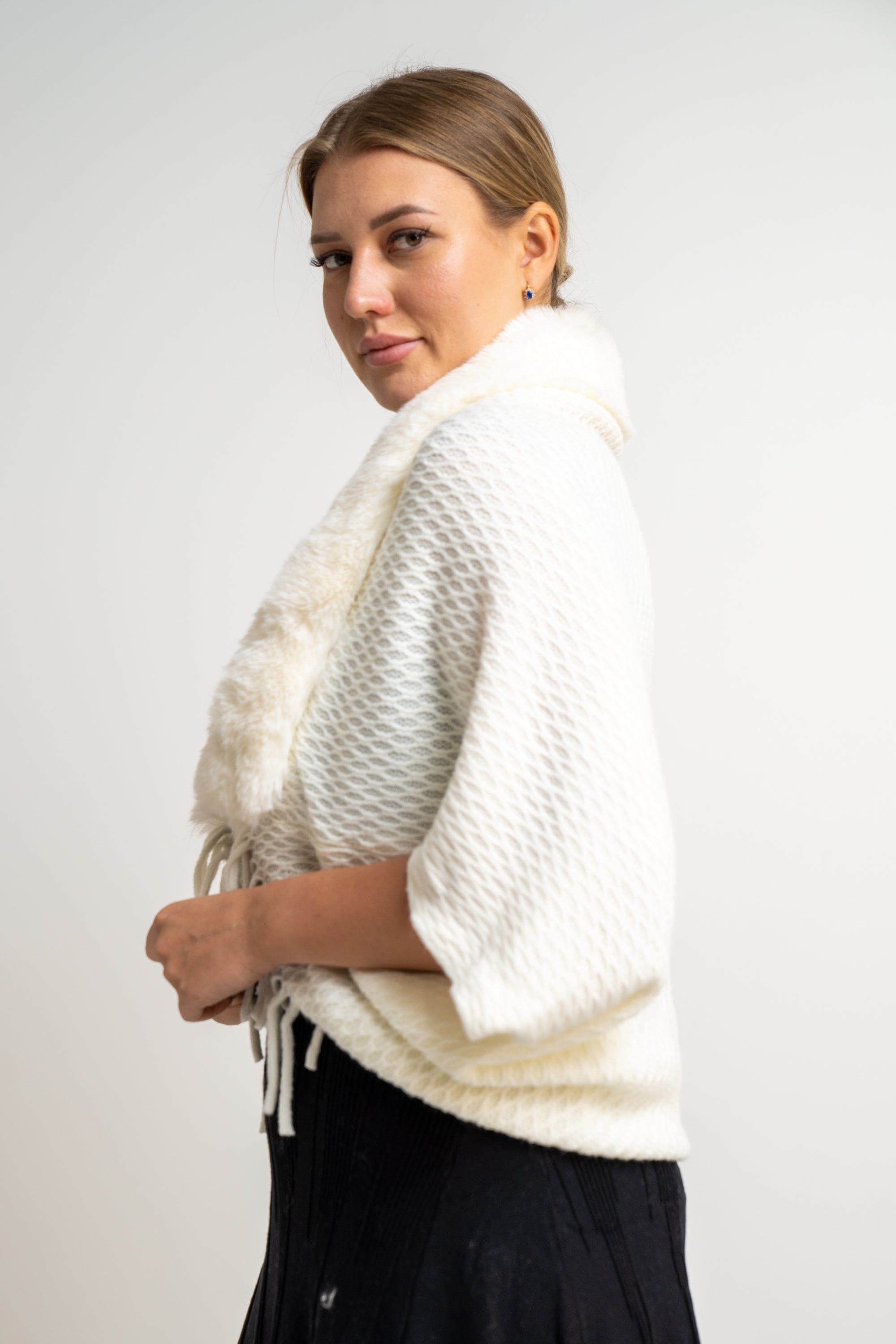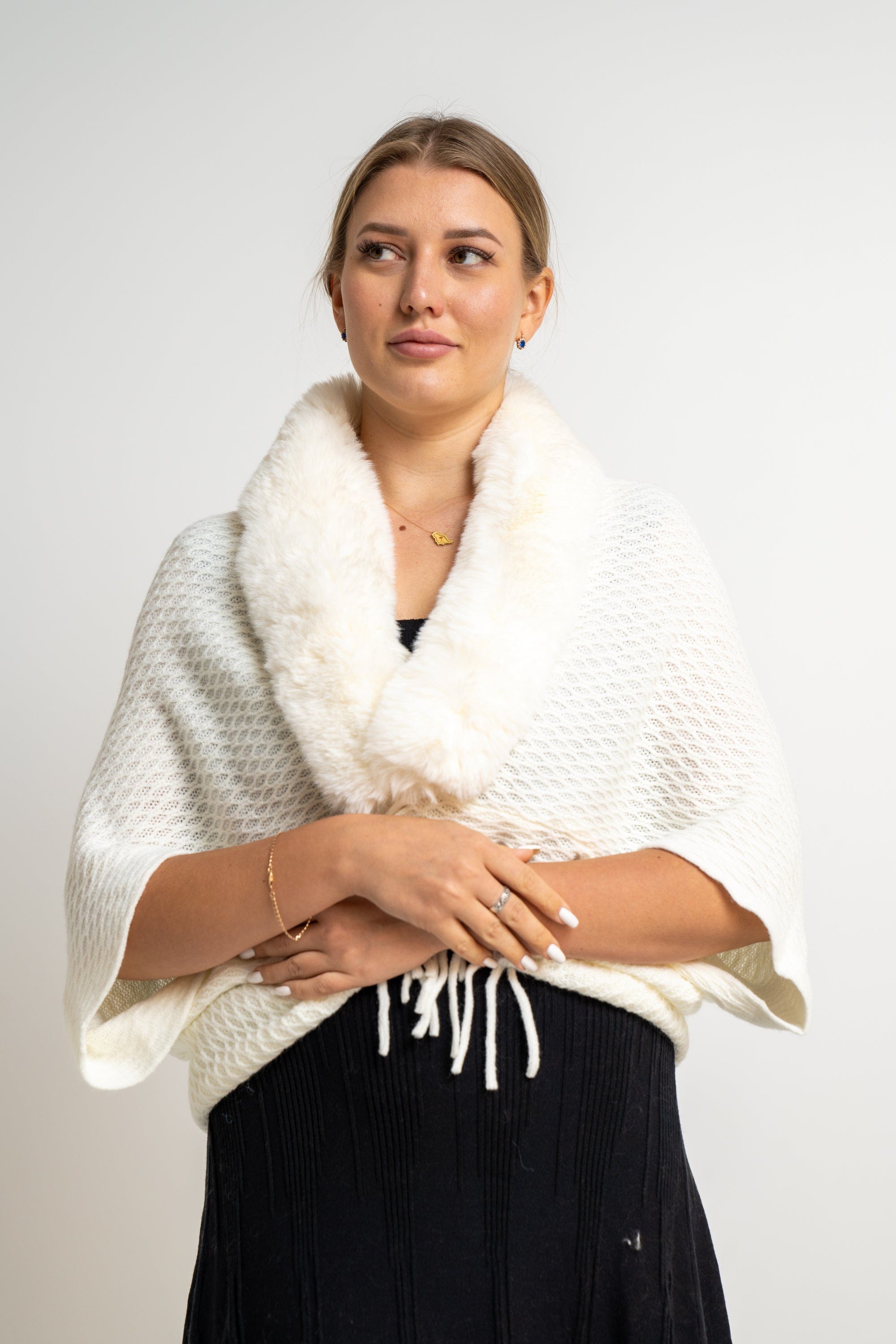 سكارف نسائي مطرز بالخيوط بفرو على الرقبة