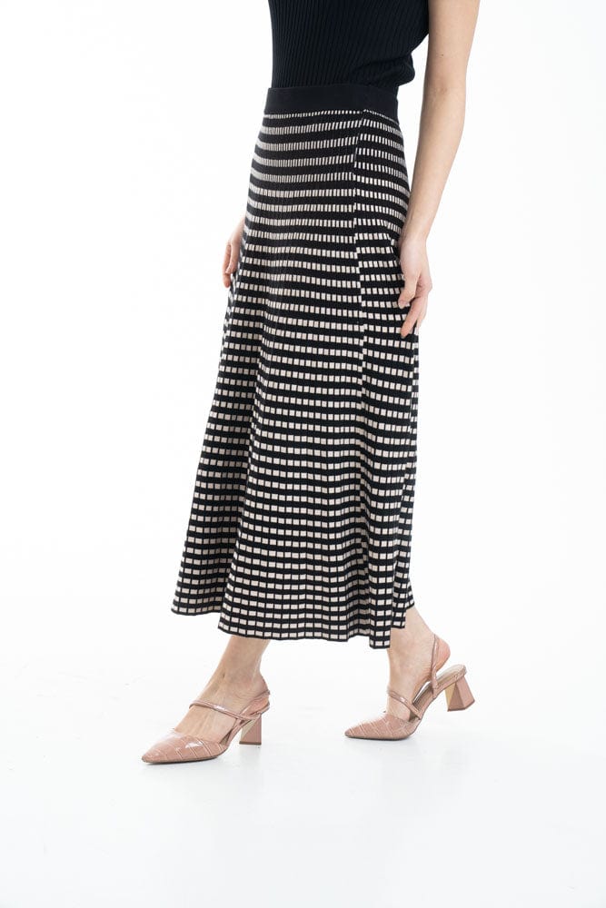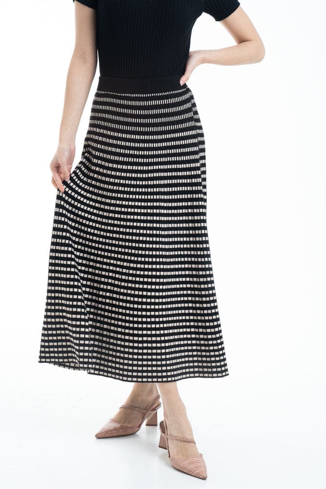 تنورة ميدي مربعات خصر مرتفع نسائي