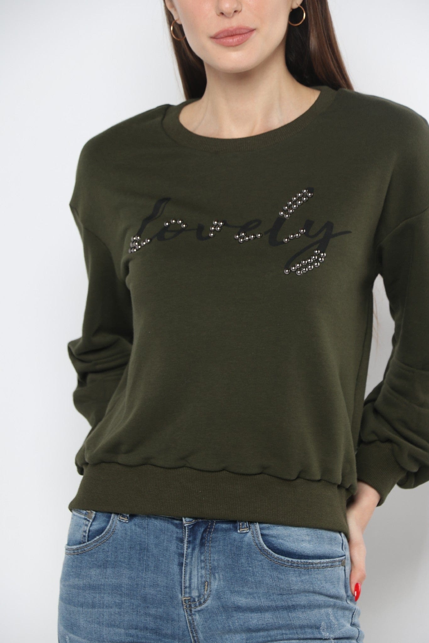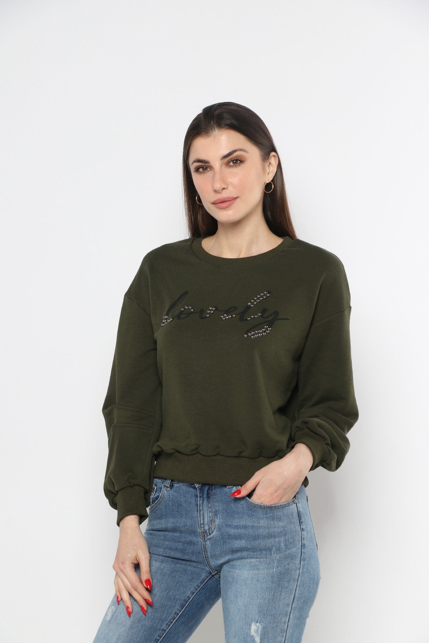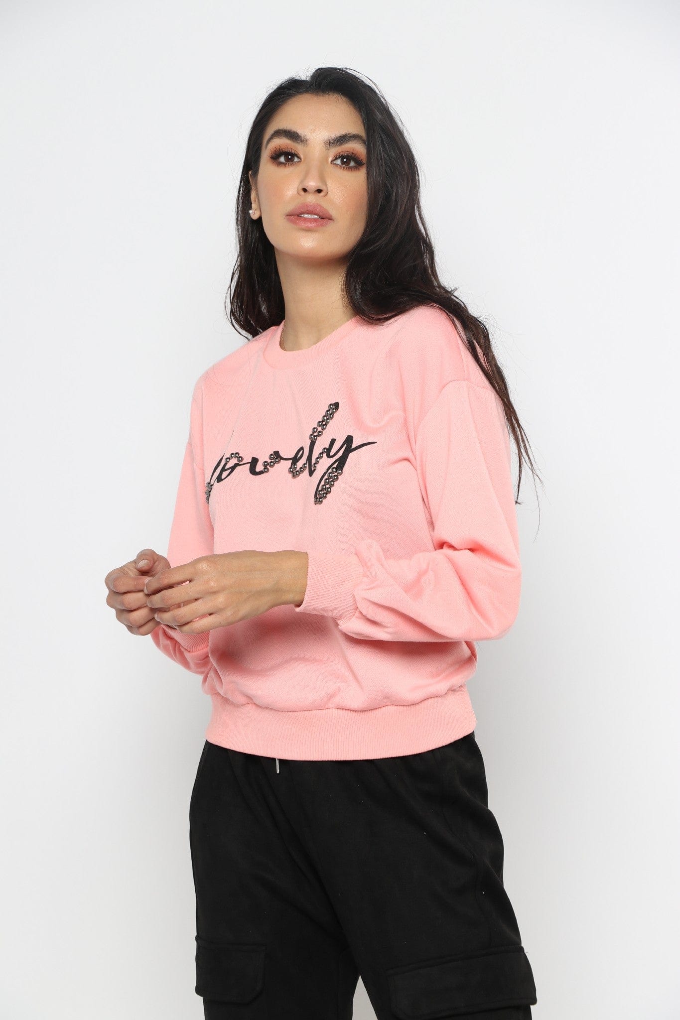 بلوزة بطبعة مطرزة بالكريستال بأكمام طويلة