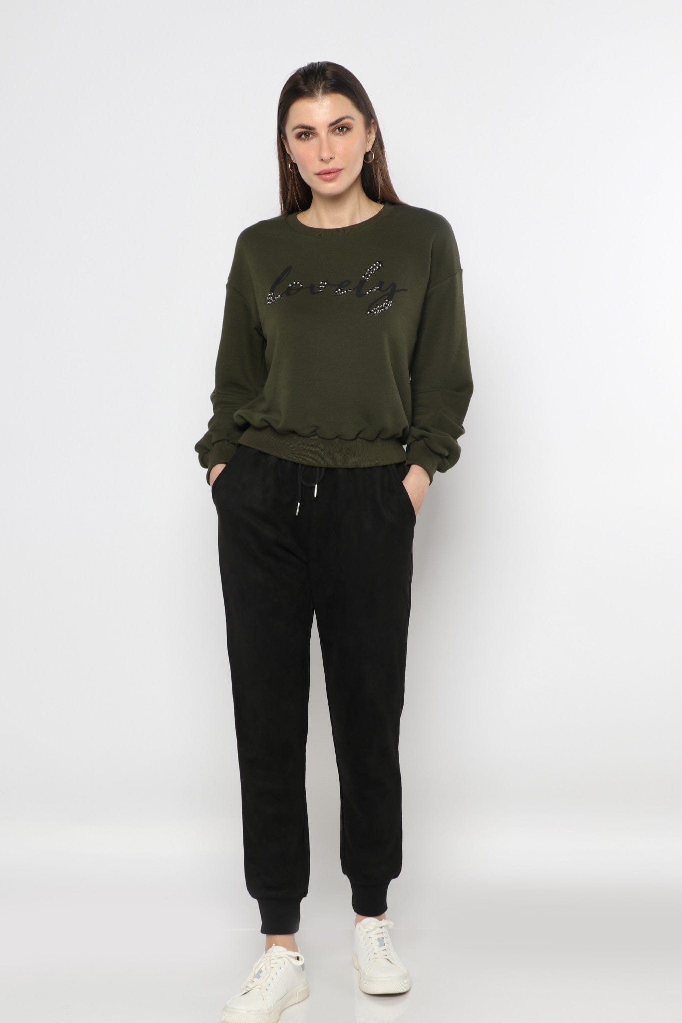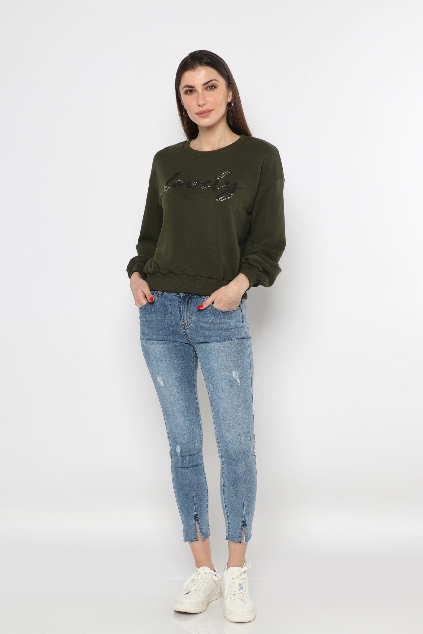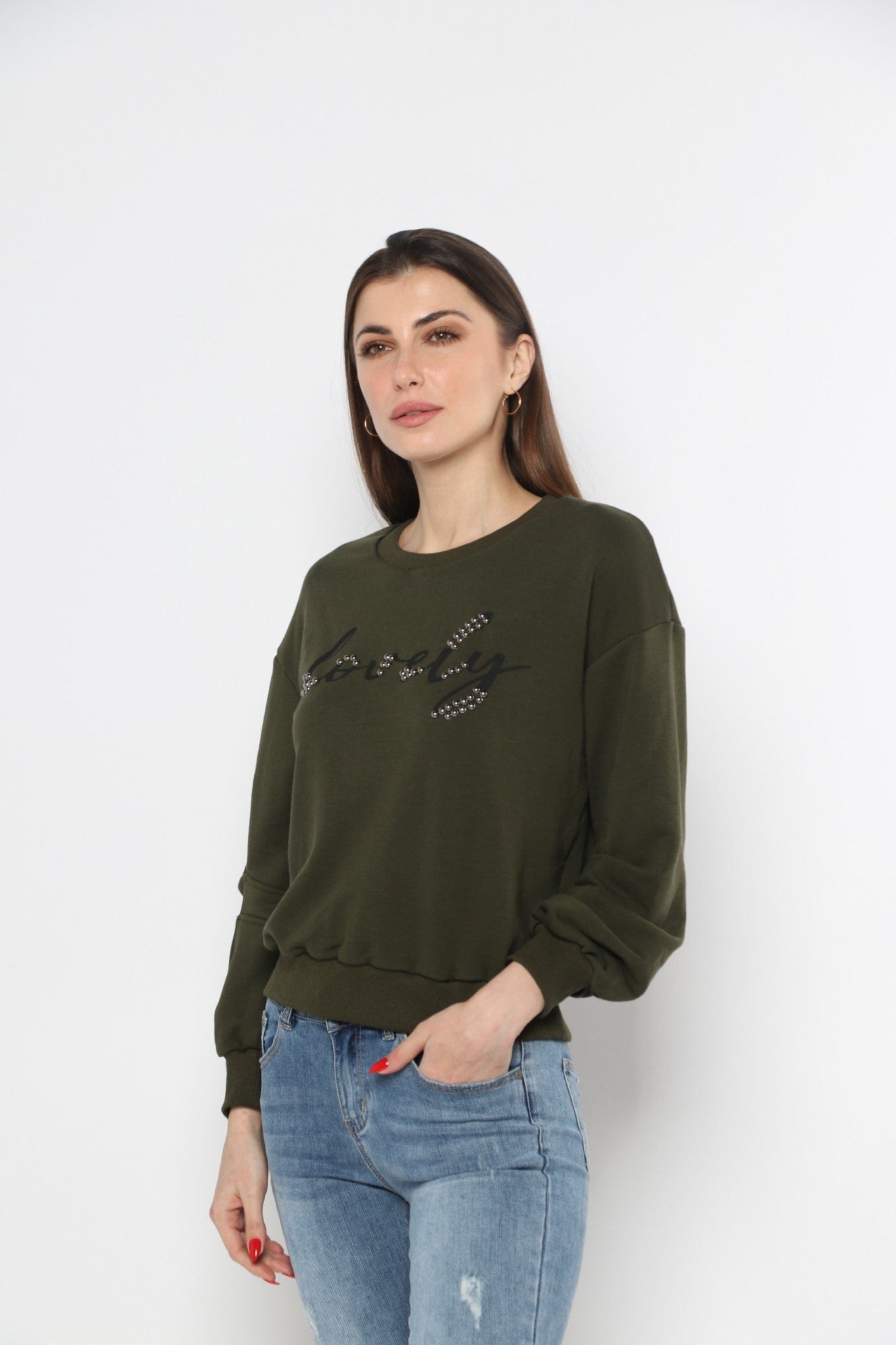بلوزة بطبعة مطرزة بالكريستال بأكمام طويلة