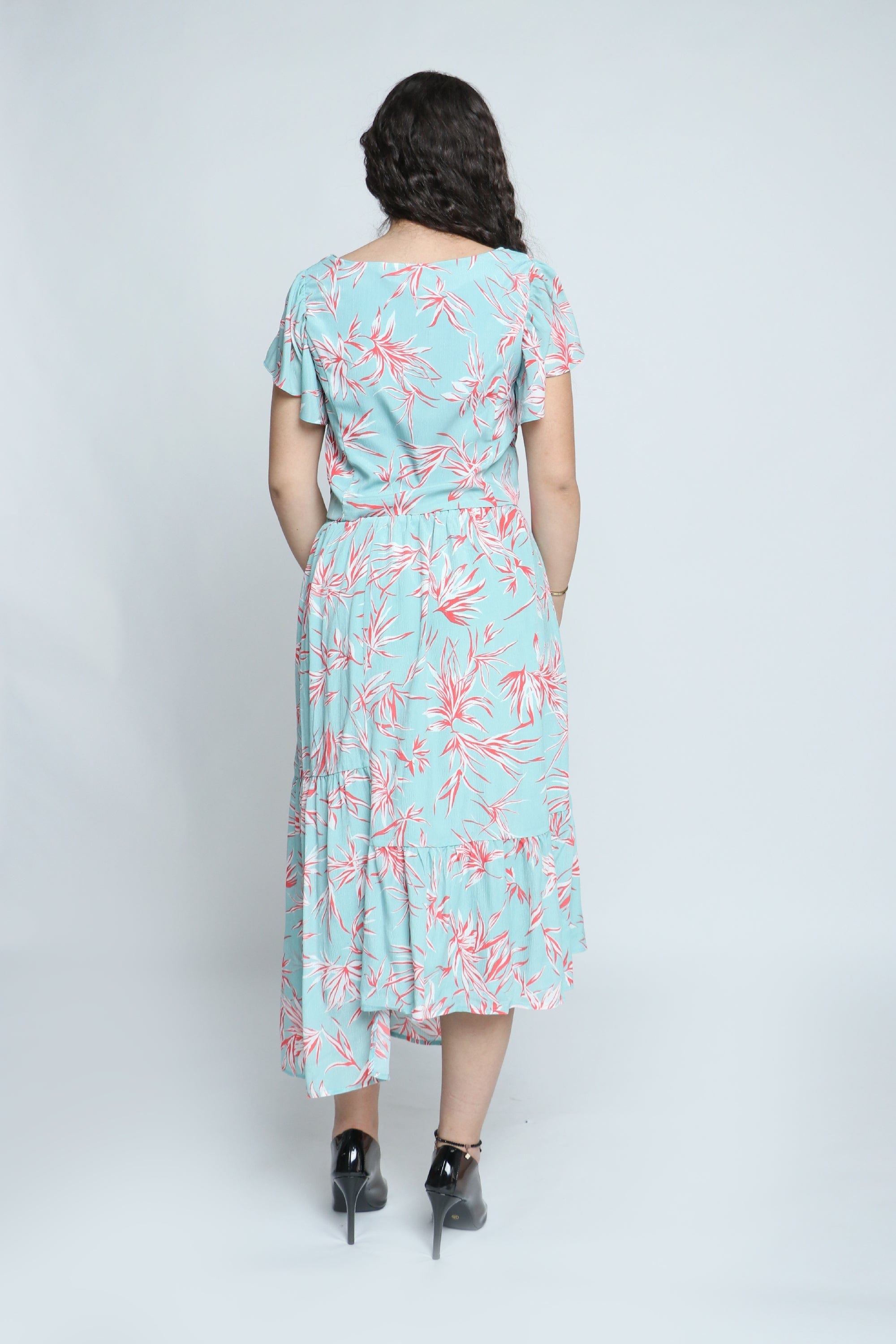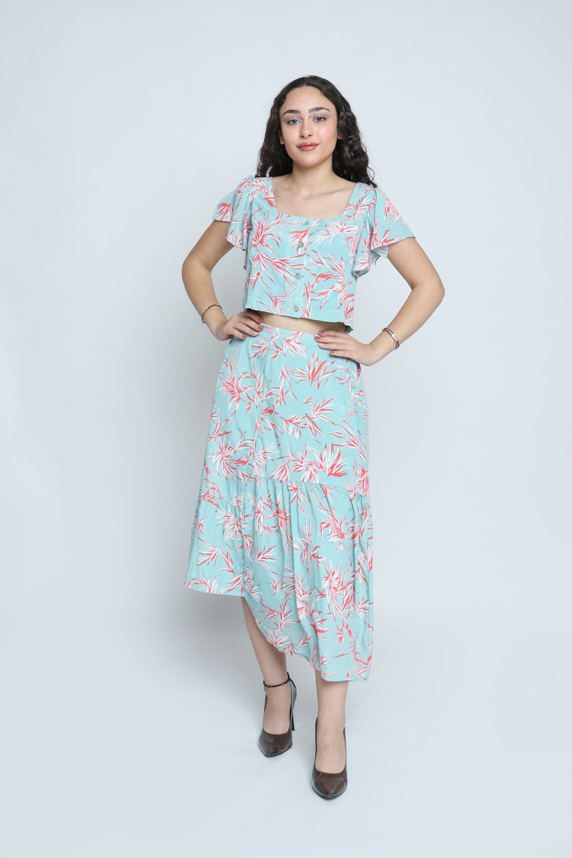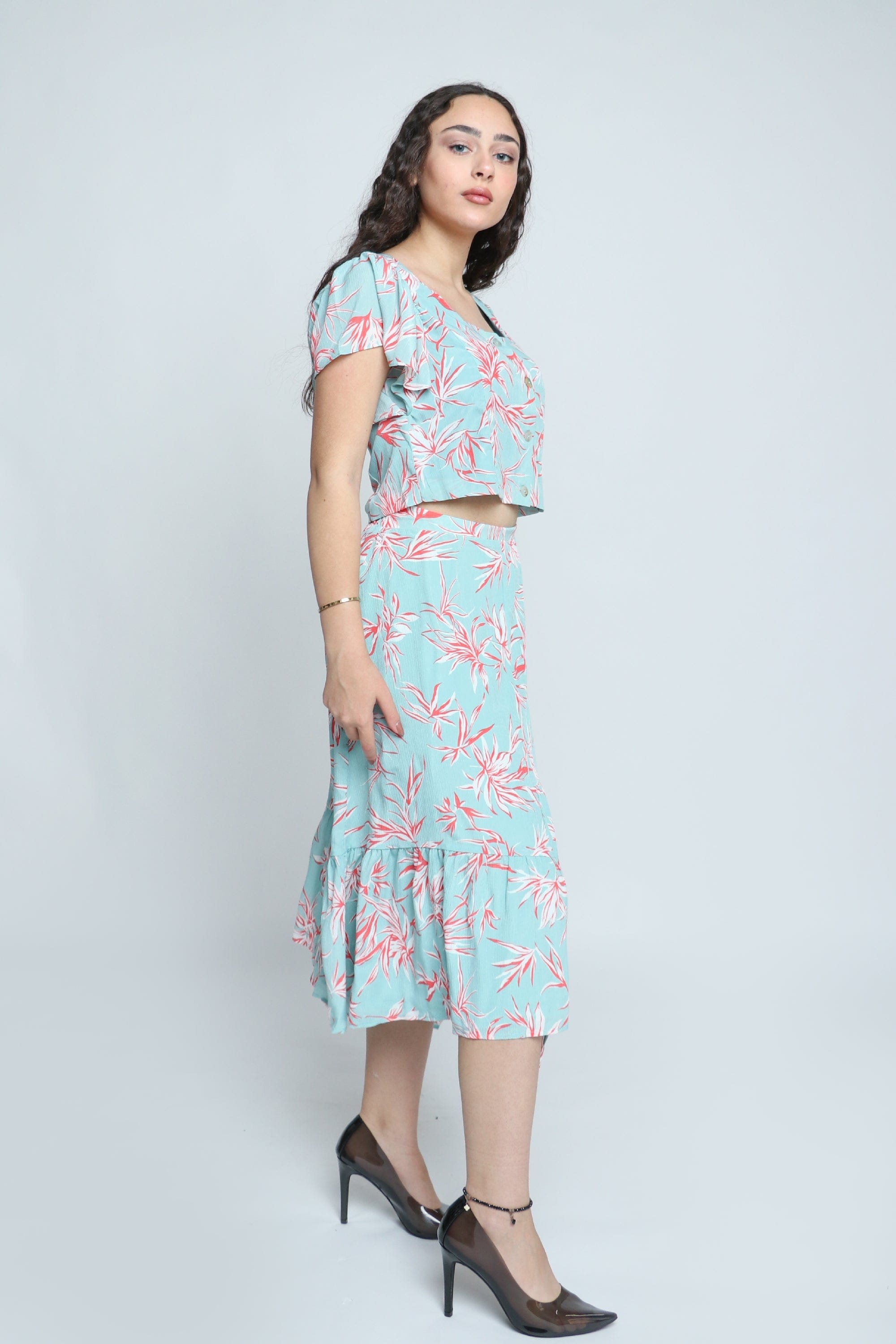 بلوزة مشجرة نص بطن كم قصير مكشكش نسائية