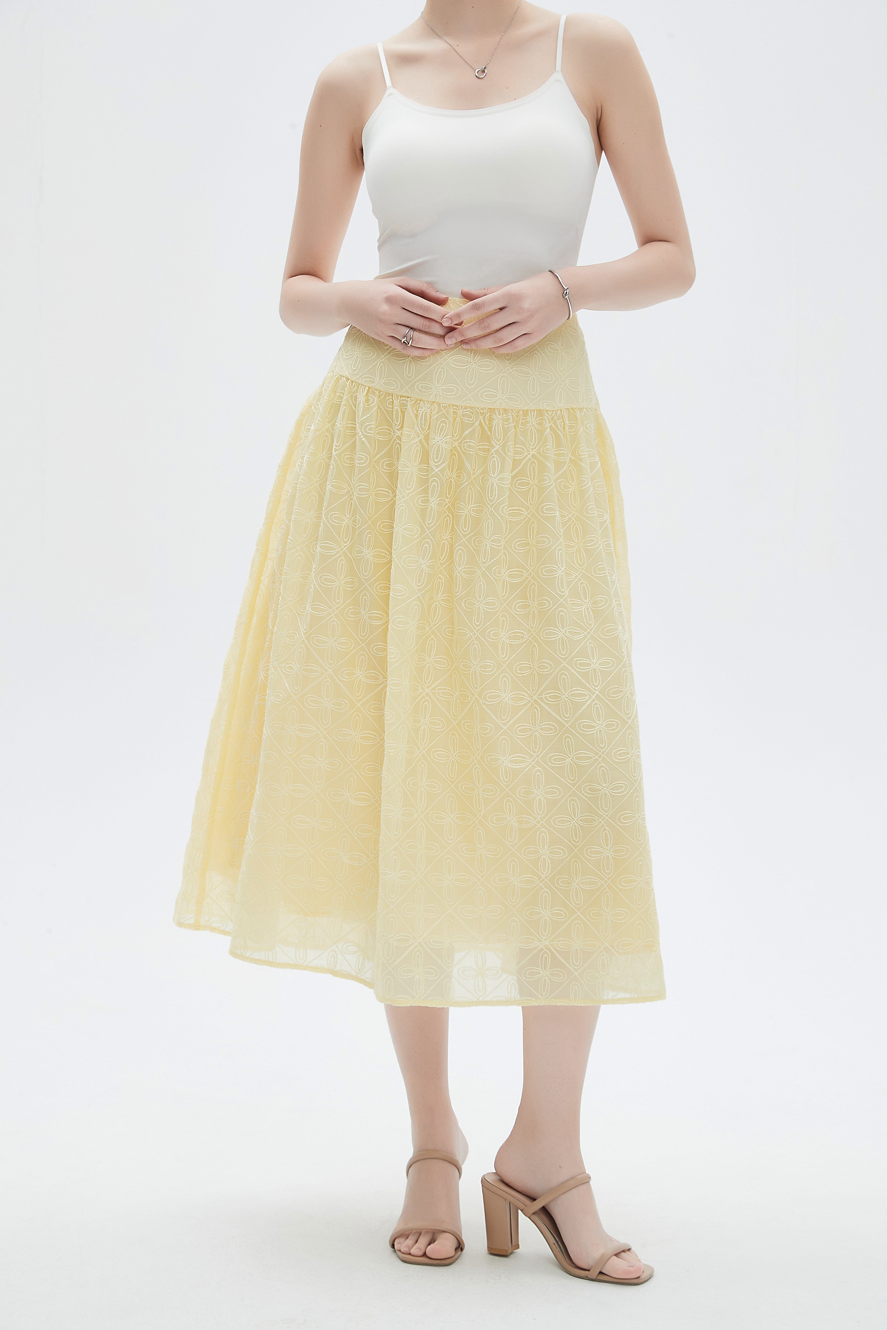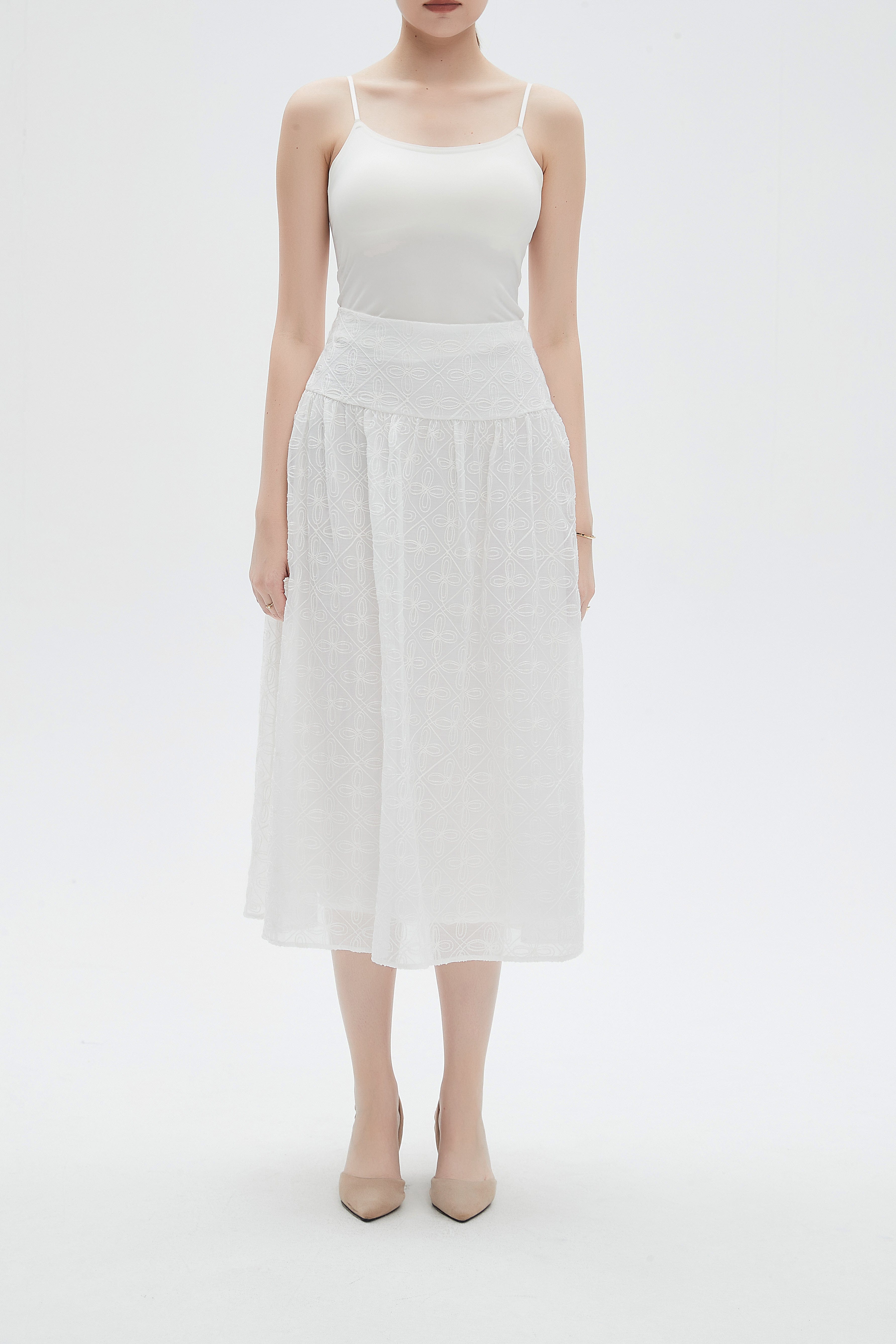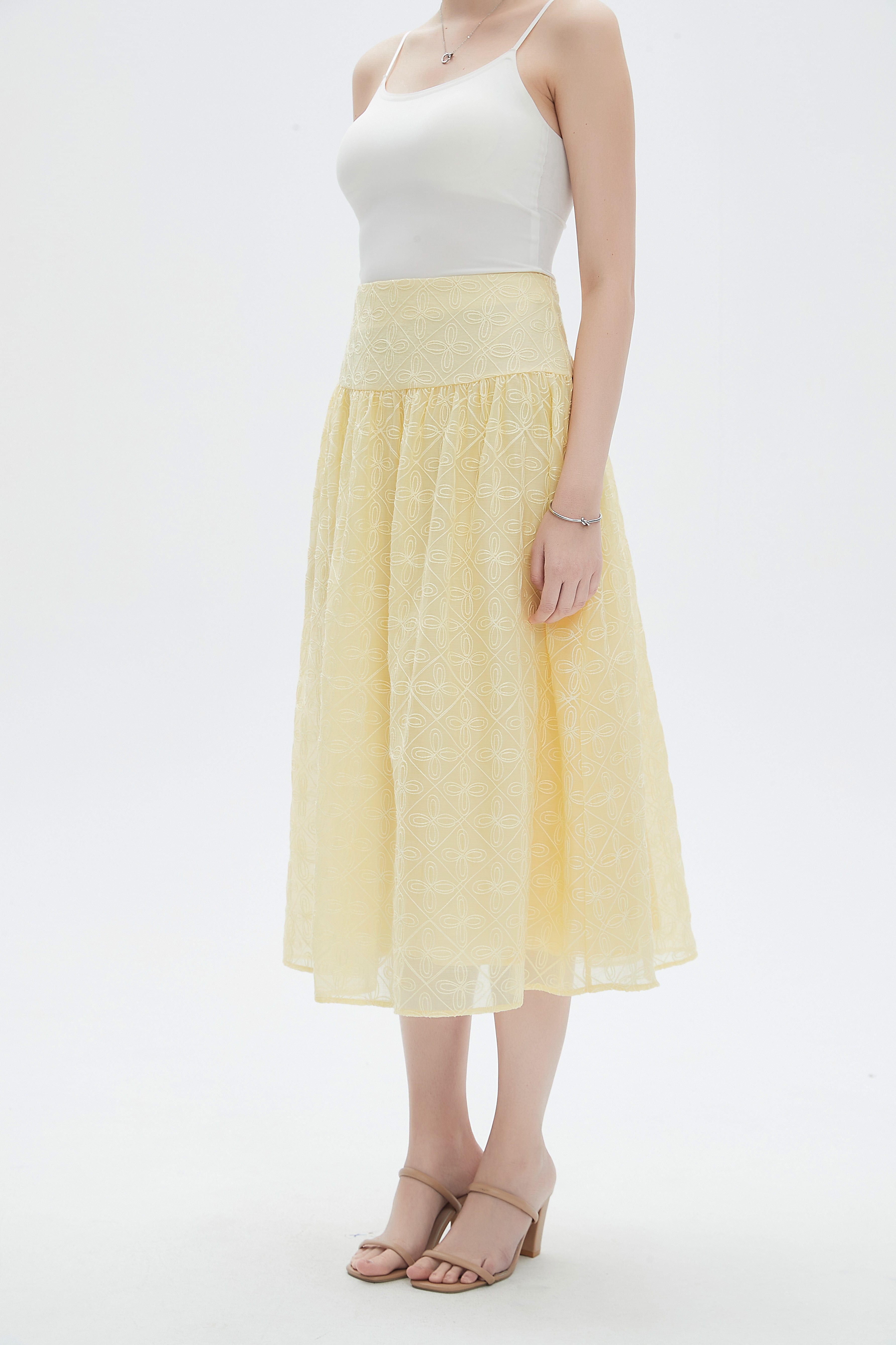 تنورة نسائية ميدي مطرزة ورود