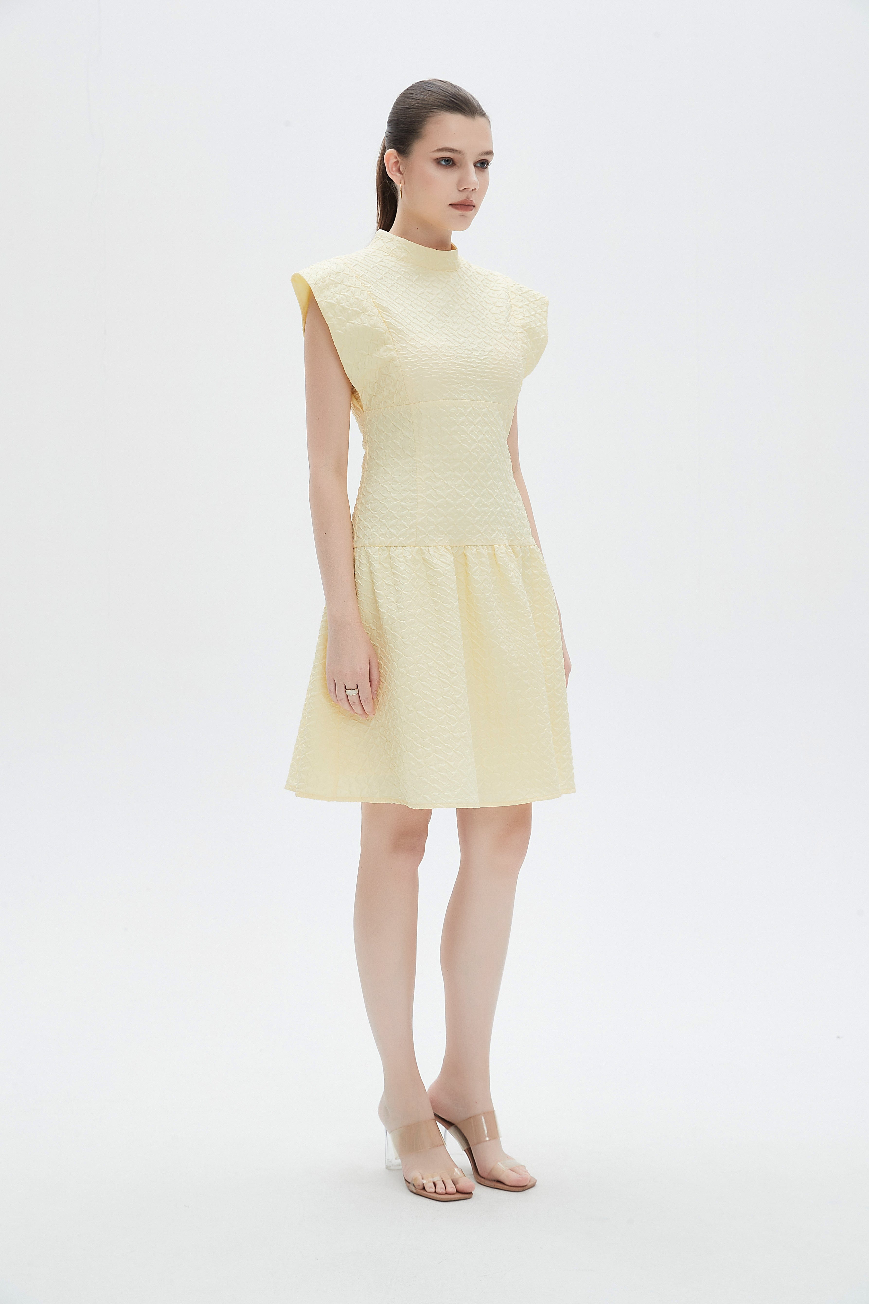 - ياقة عالية وتصميم بلا أكمام لمظهر معاصر