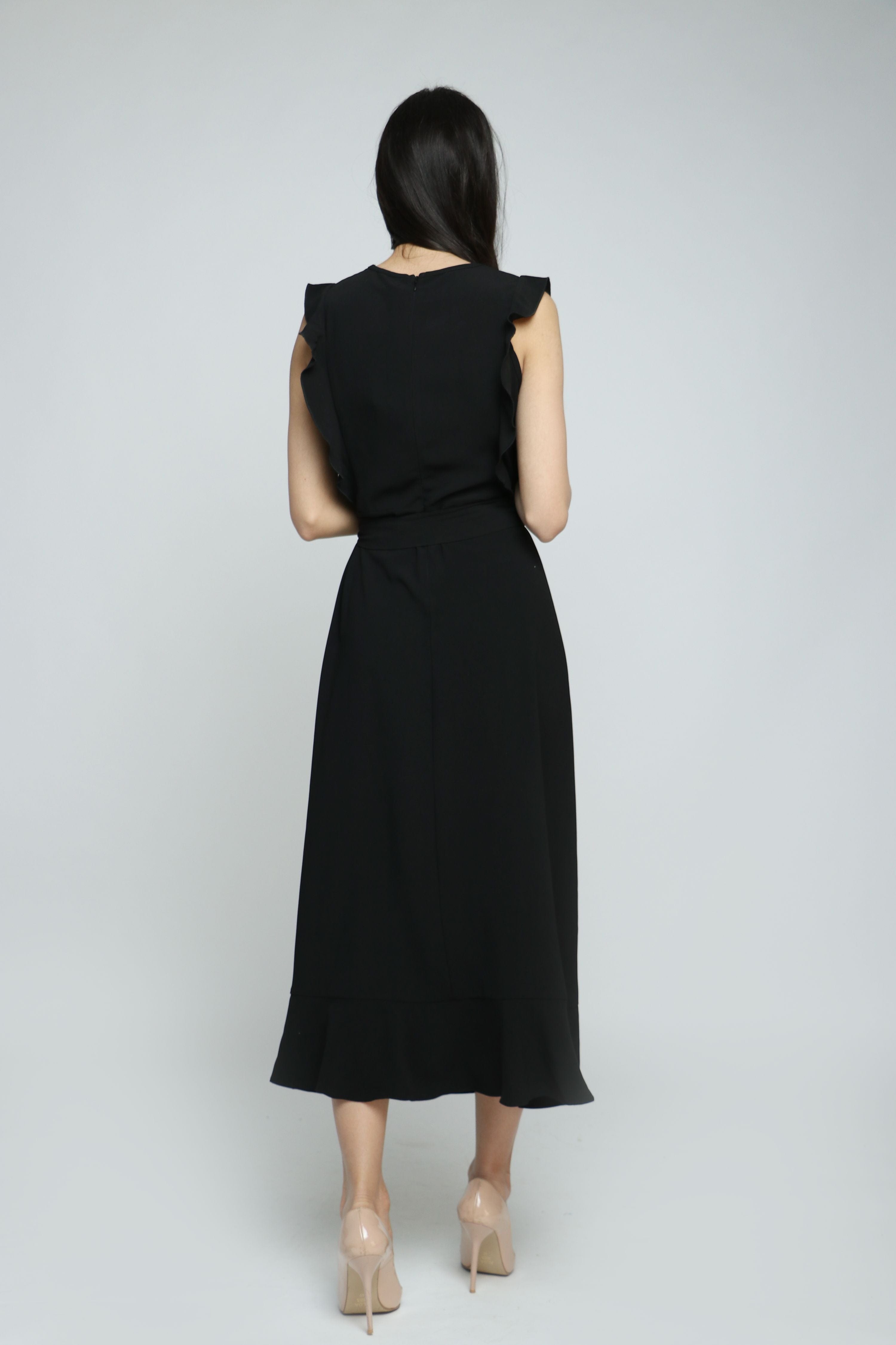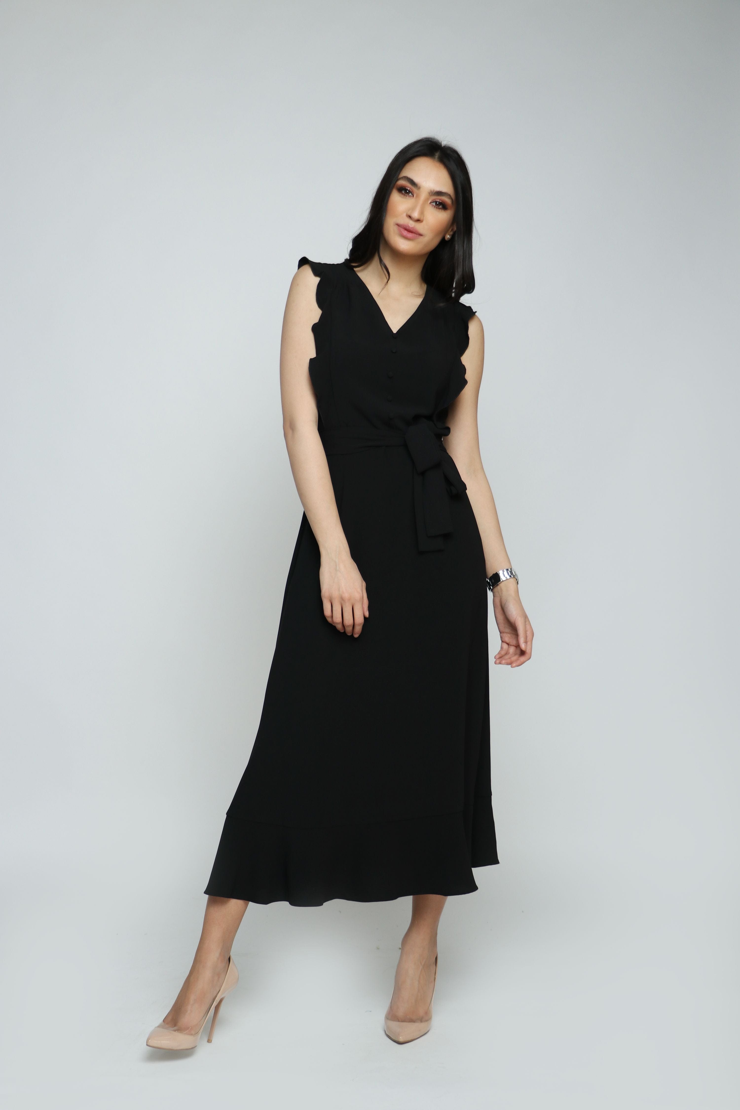فستان ميدي بدون أكمام برباط خصر وأزرار على الصدر