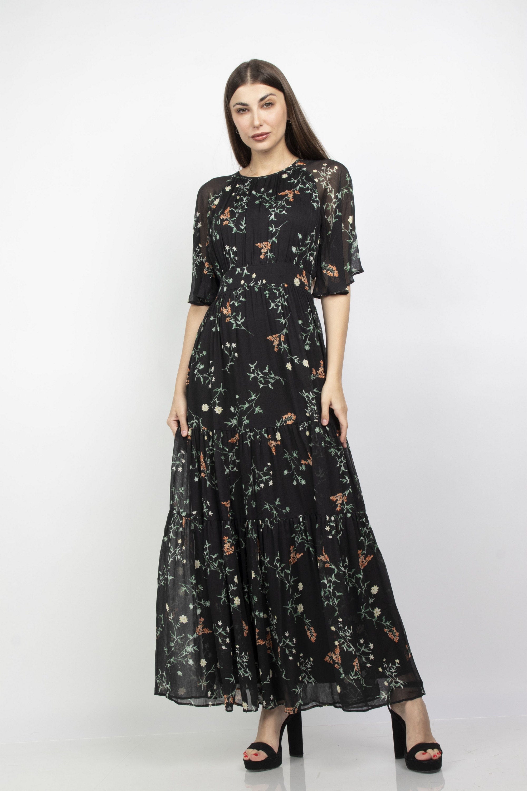 • نقشة زهور على خلفية سوداء لمظهر أنيق وكاجوال