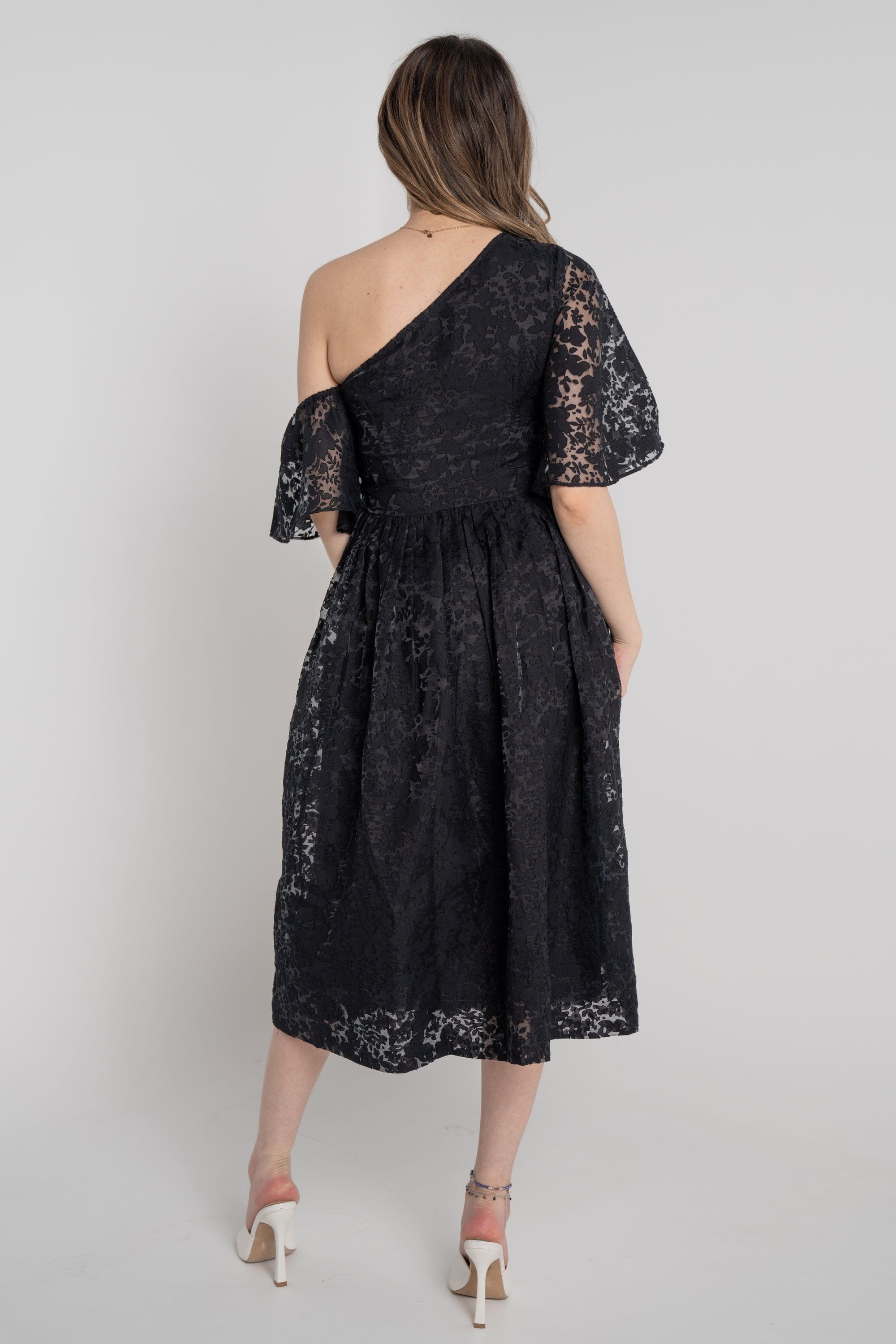 - ياقة كتف واحد مع كم قصير تضفي لمسة أنثوية جريئة