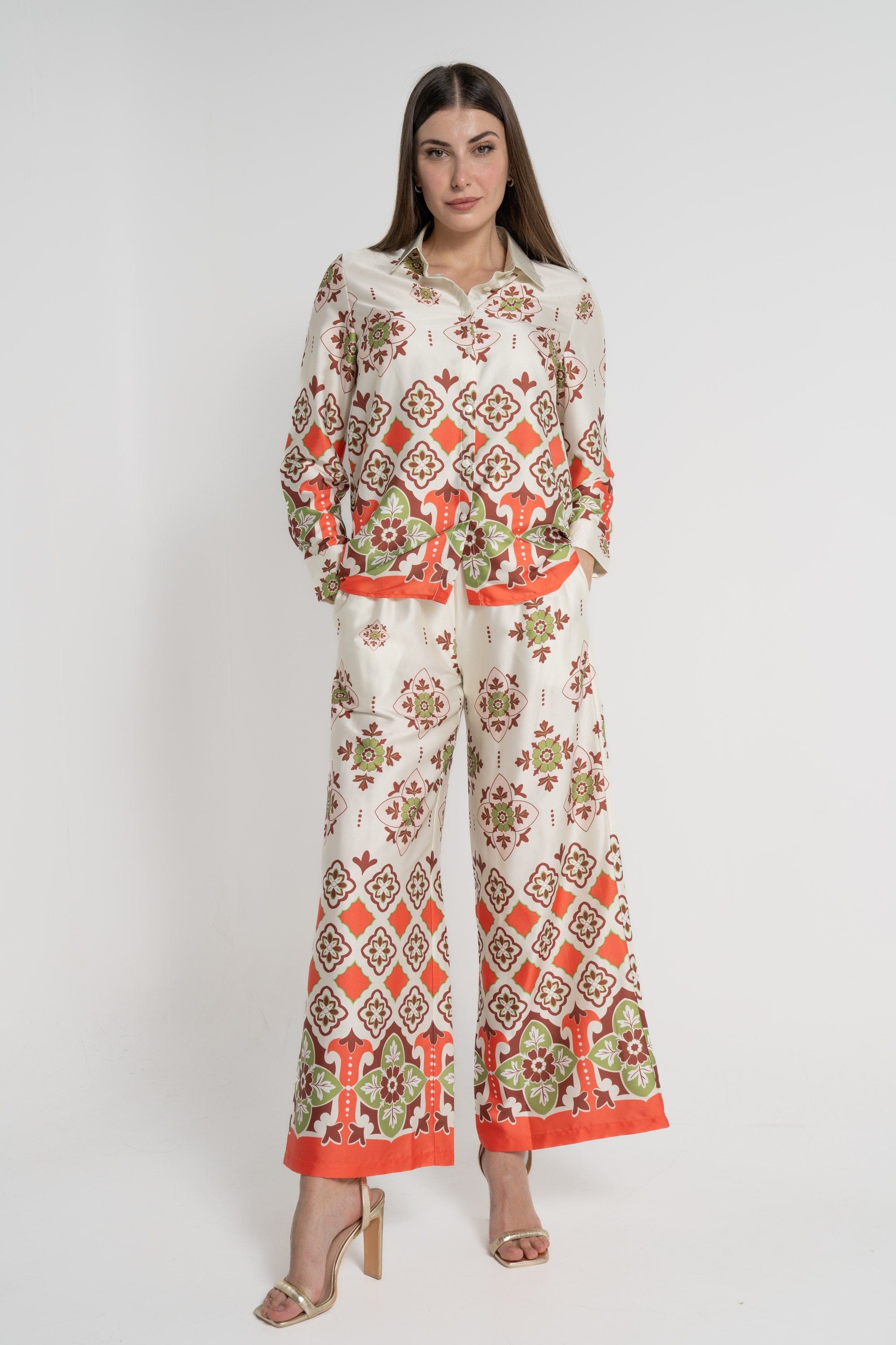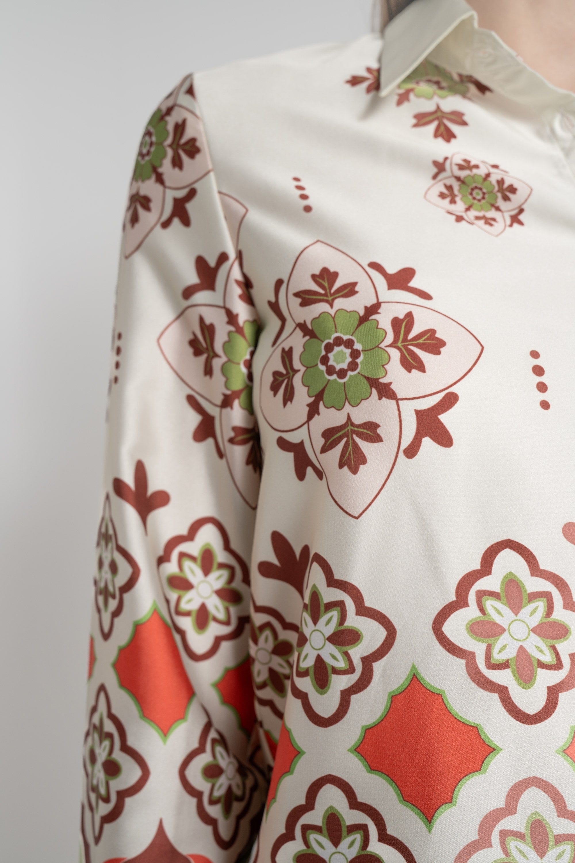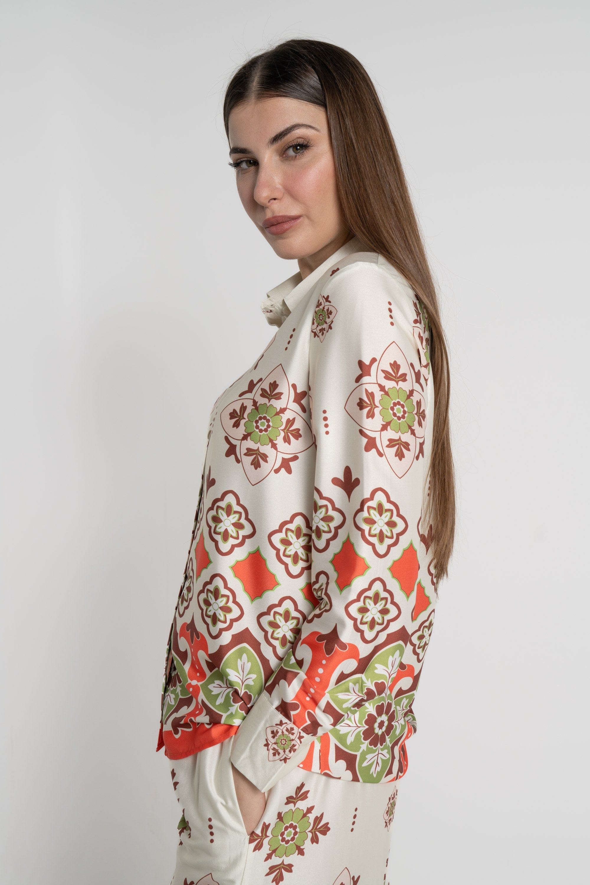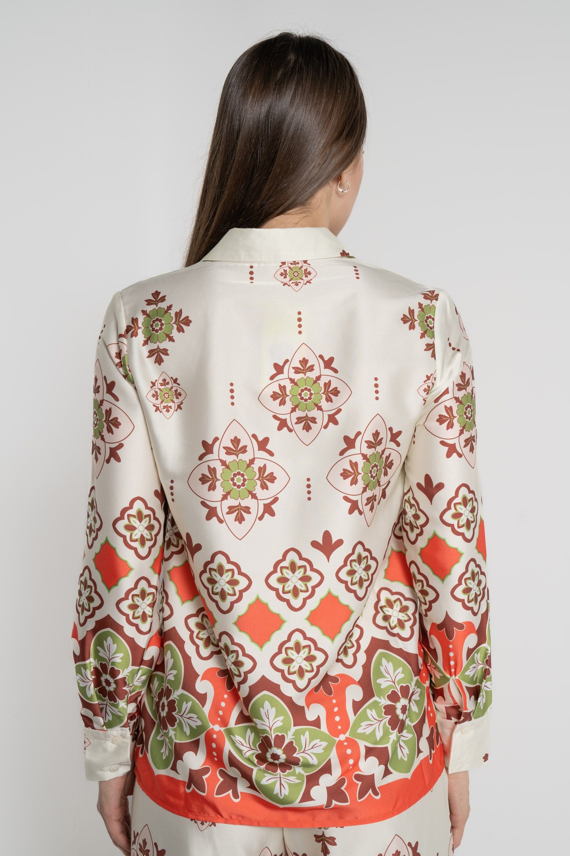 قميص بأكمام طويلة منقوش بأزرار أمامية نسائي