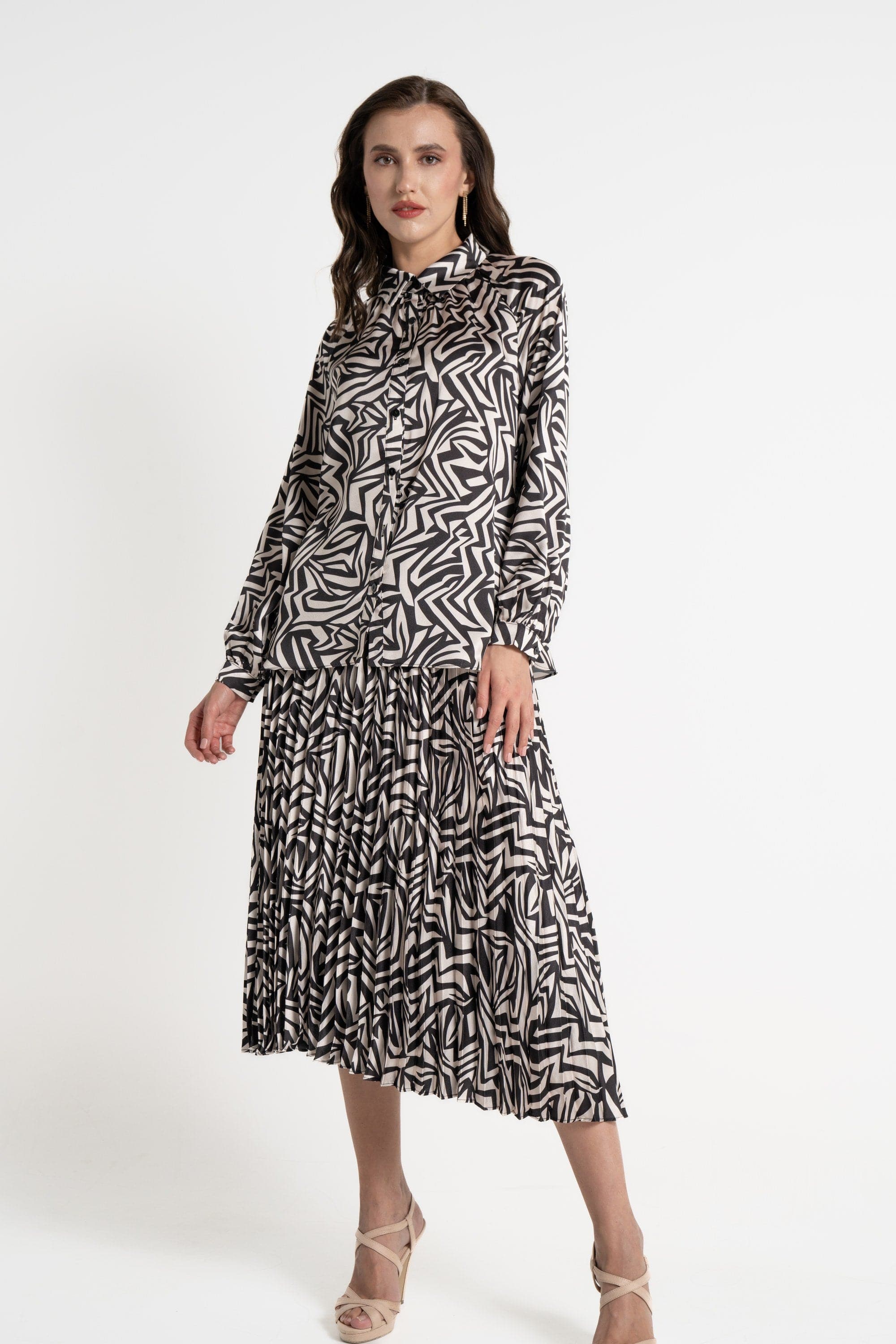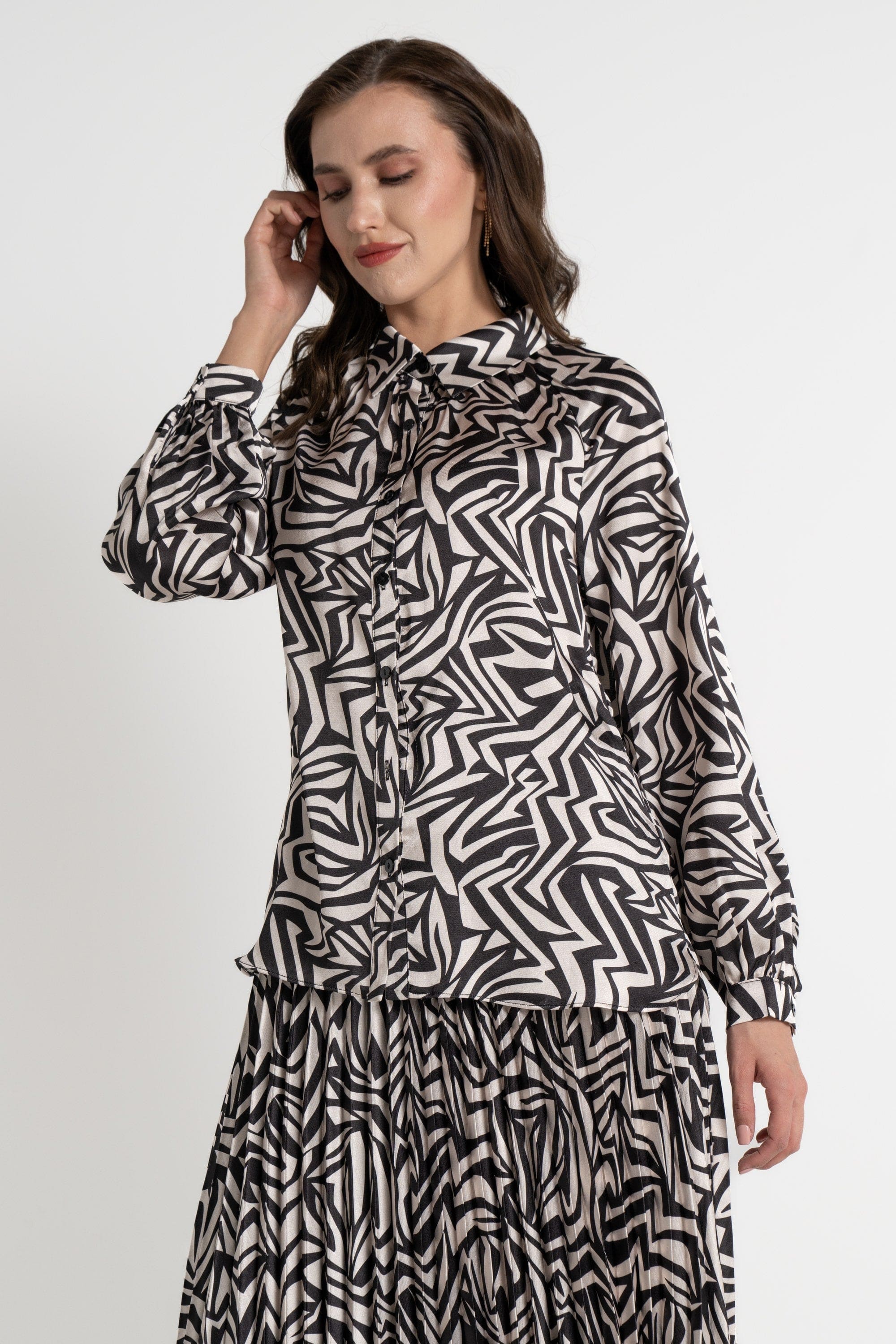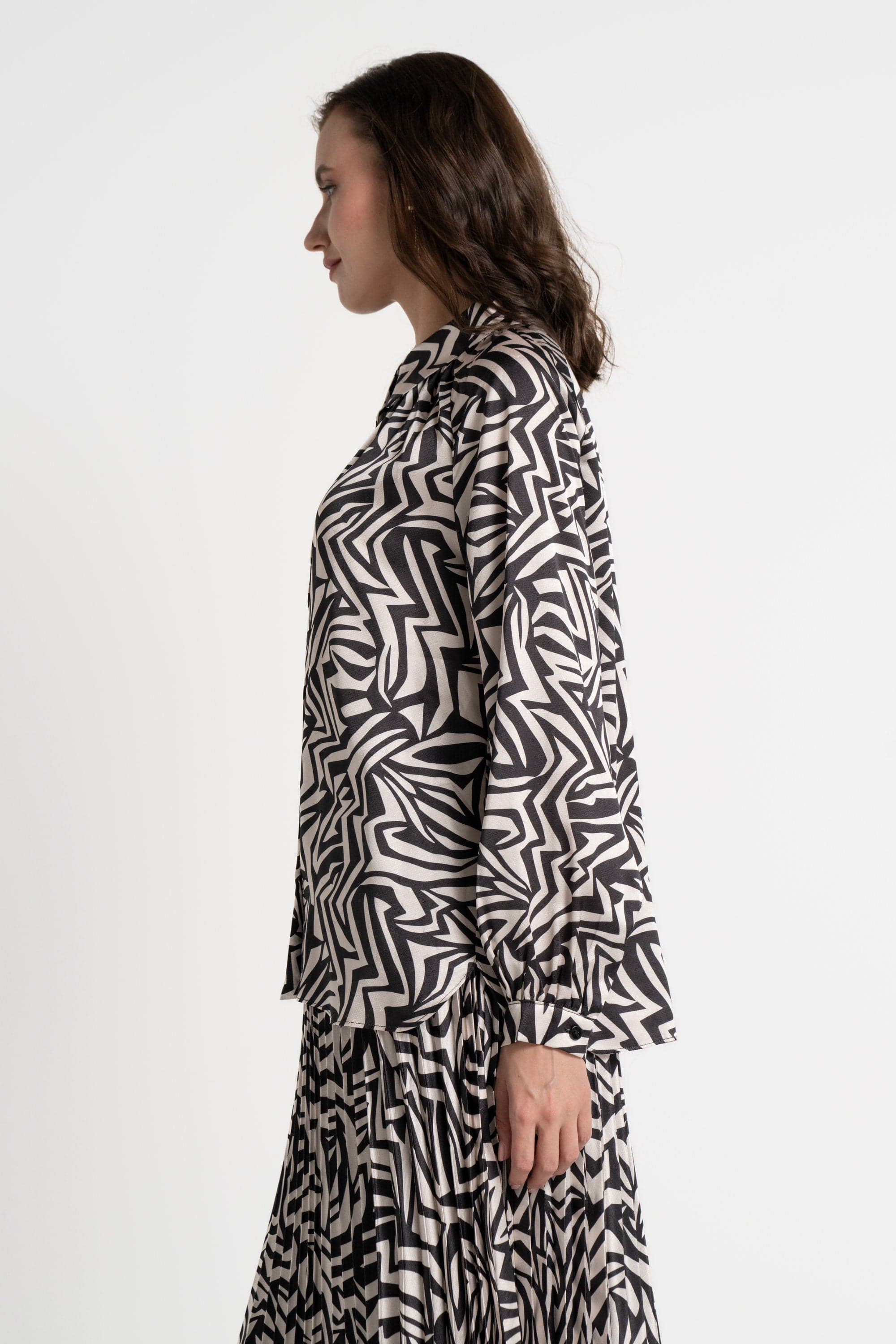 قميص بأكمام طويلة منقوش بأزرار أمامية