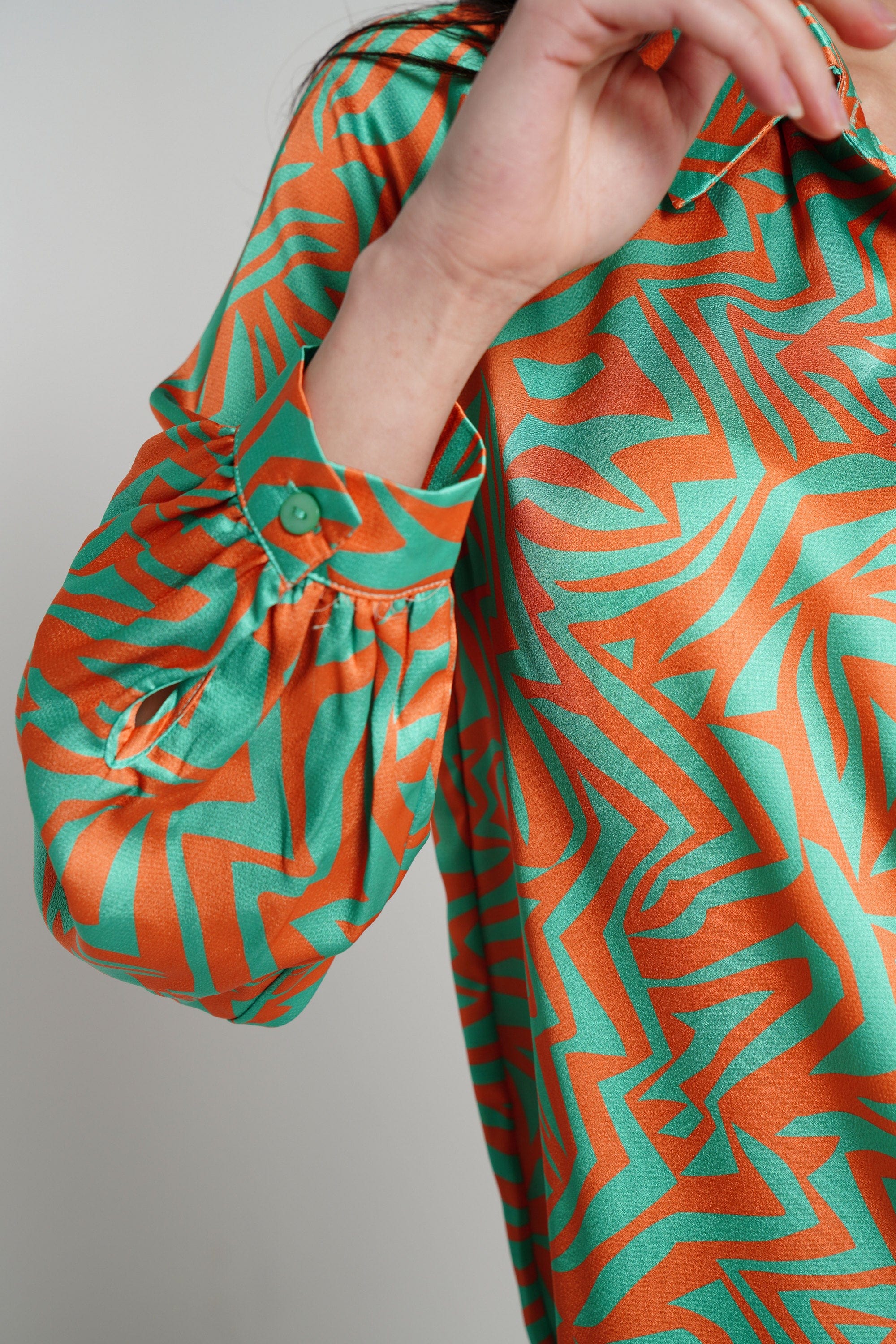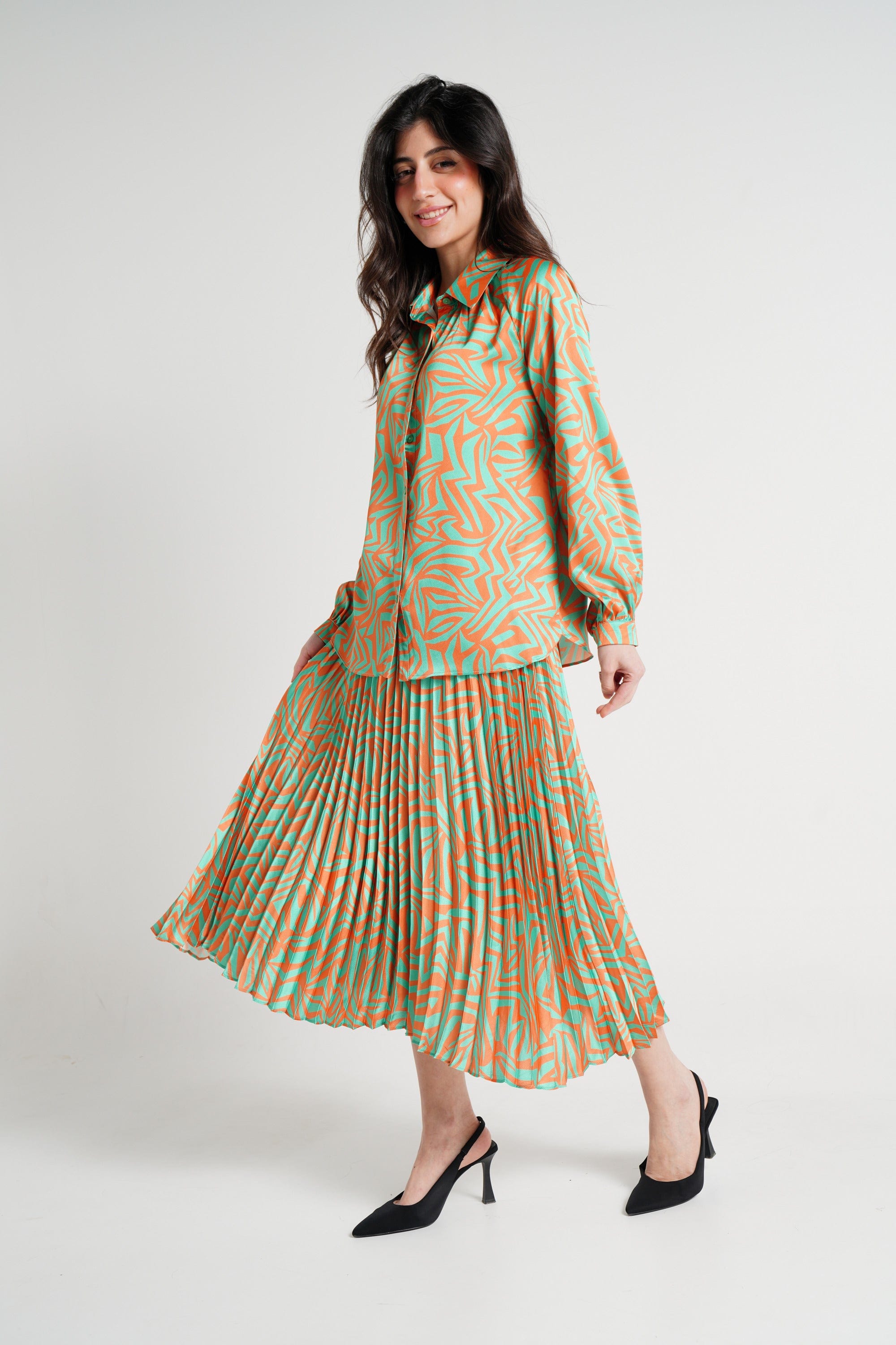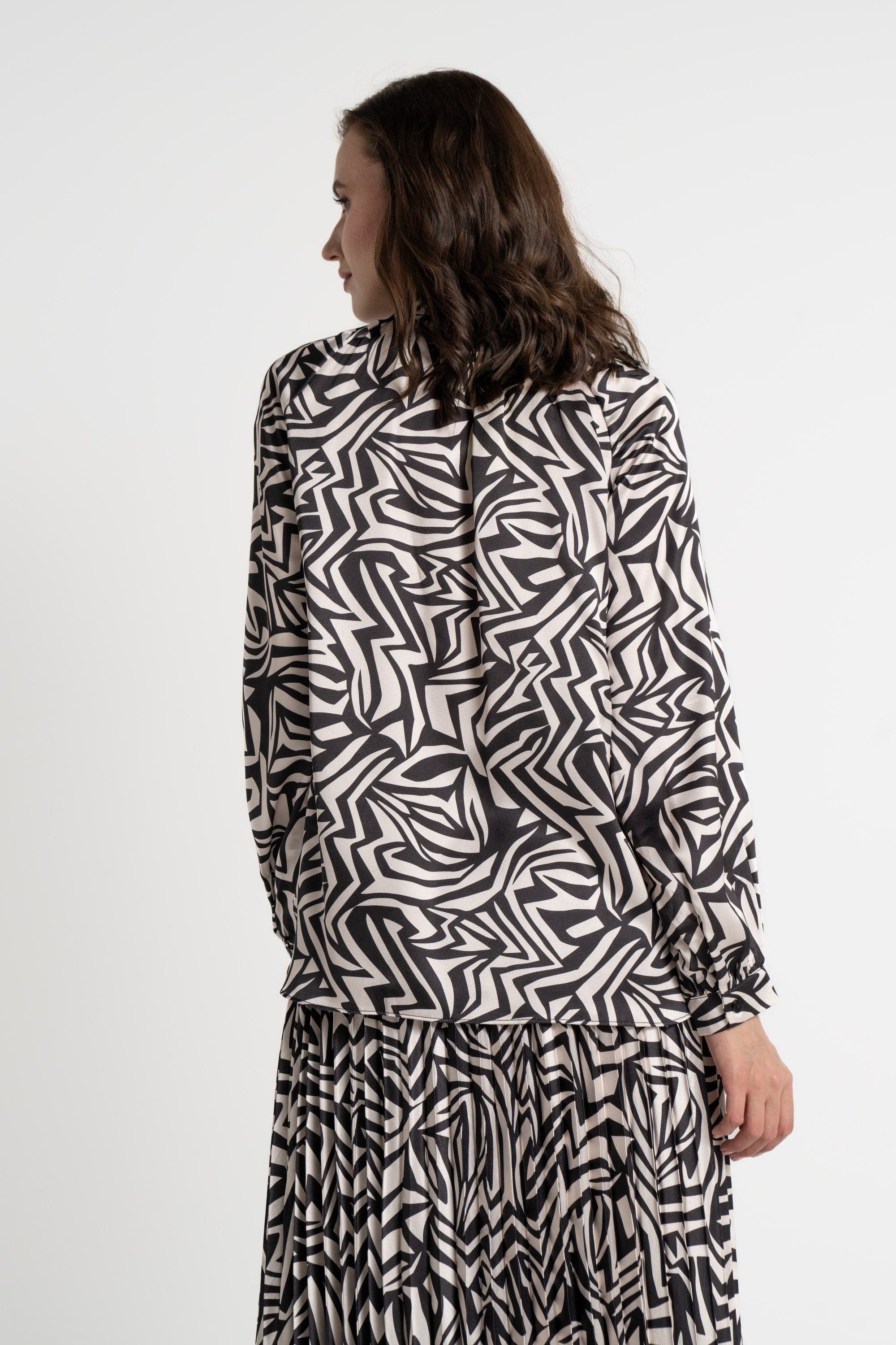 قميص بأكمام طويلة منقوش بأزرار أمامية