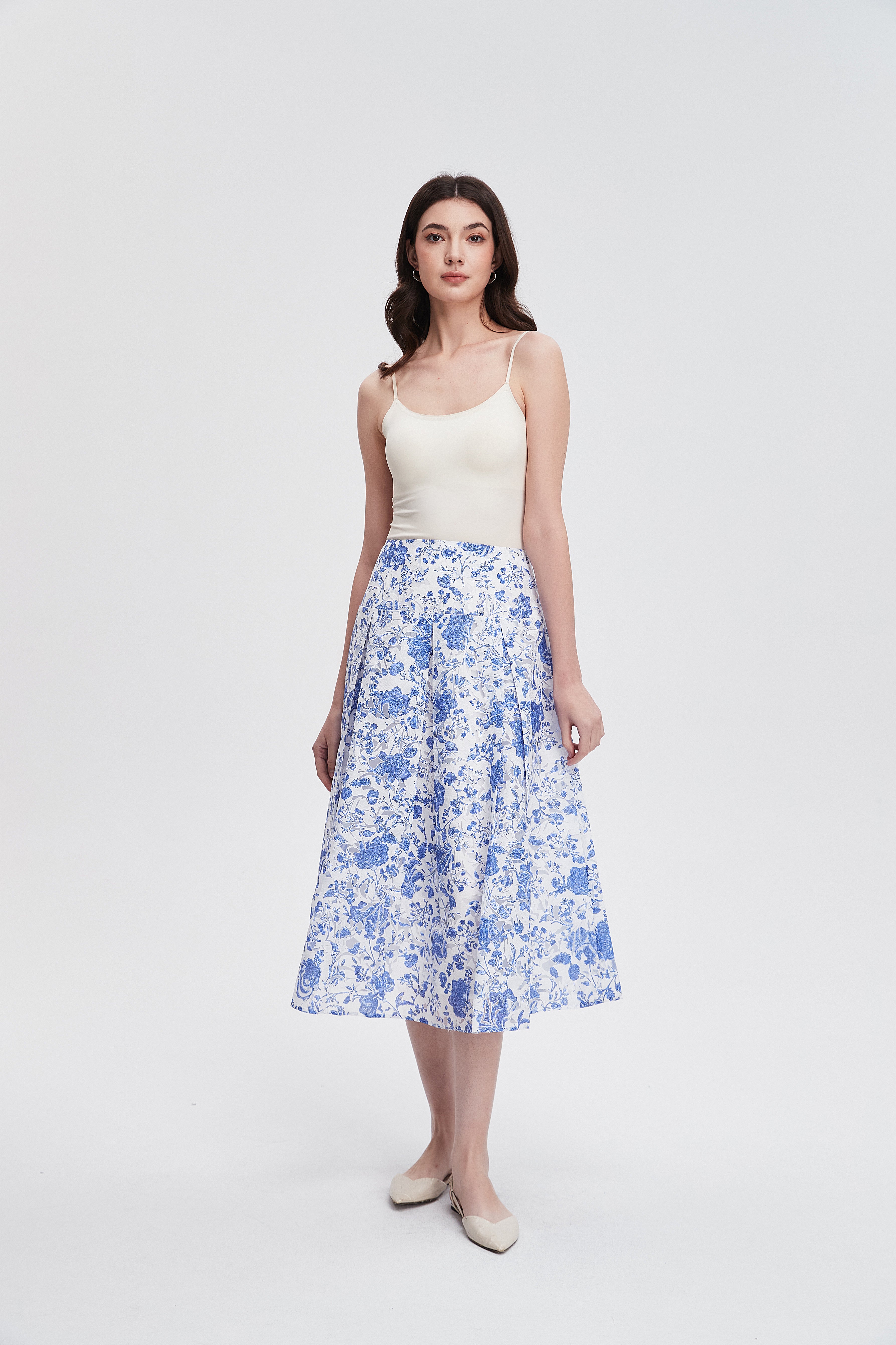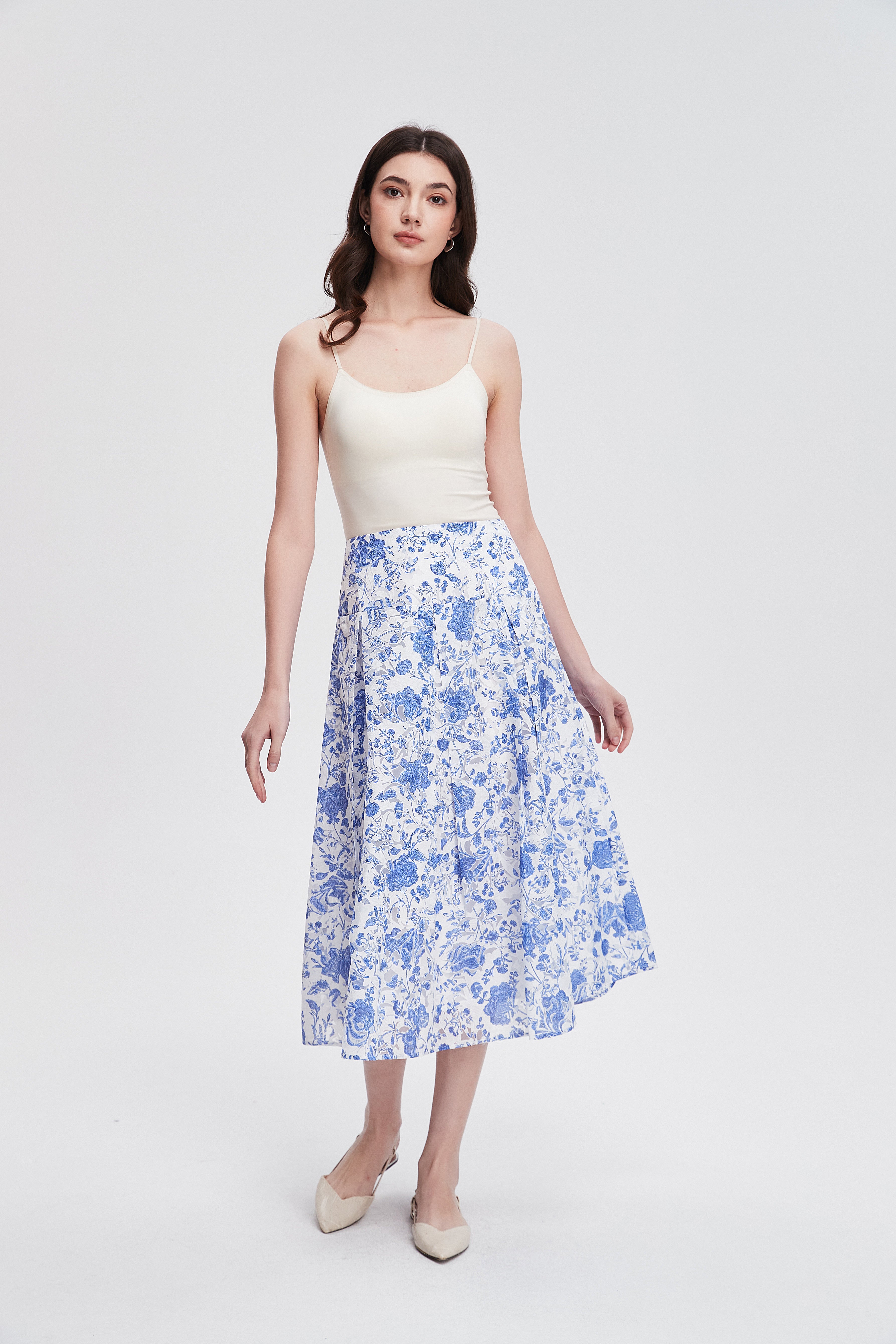 تنورة نسائية ميدي منقوشه مكشكشة