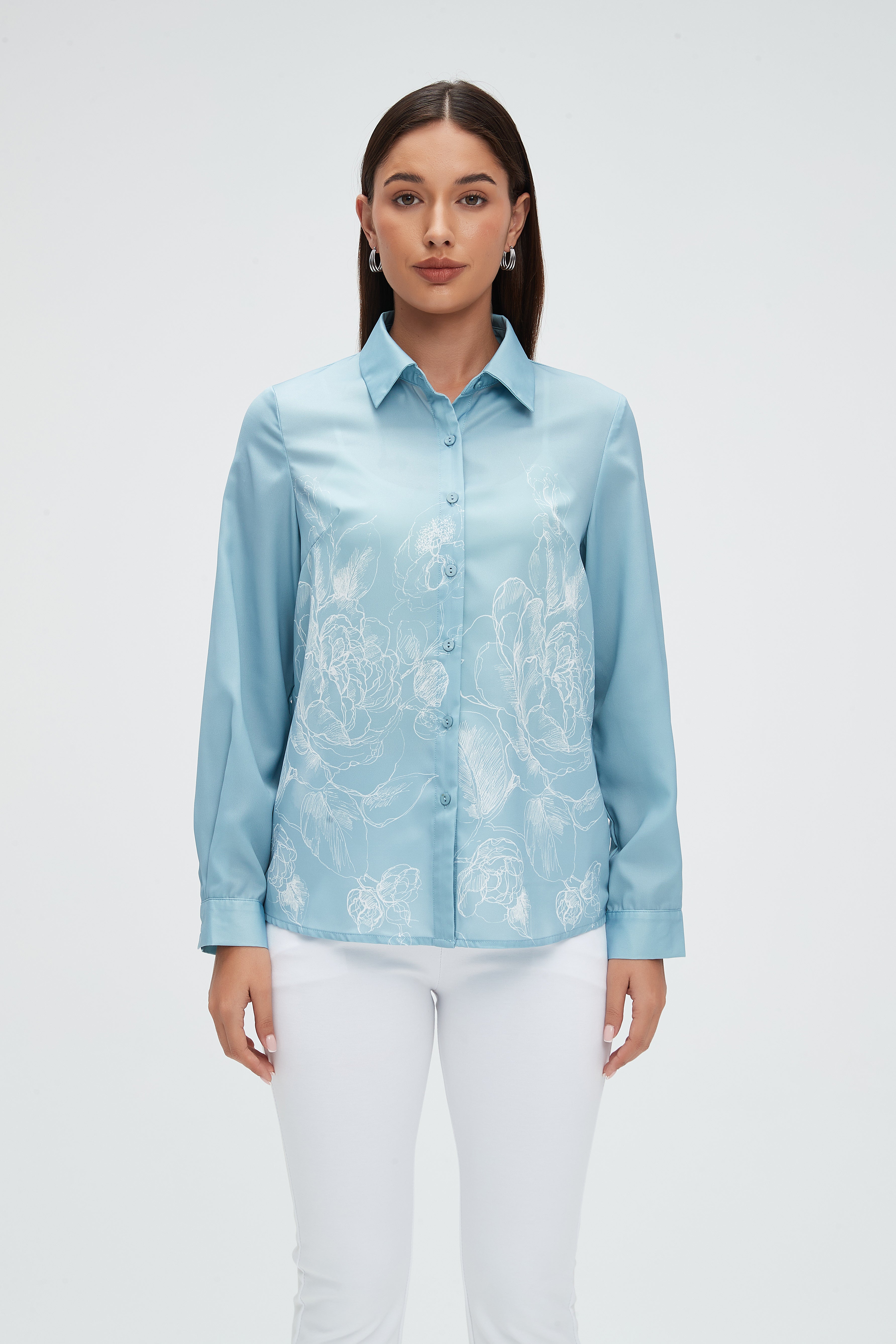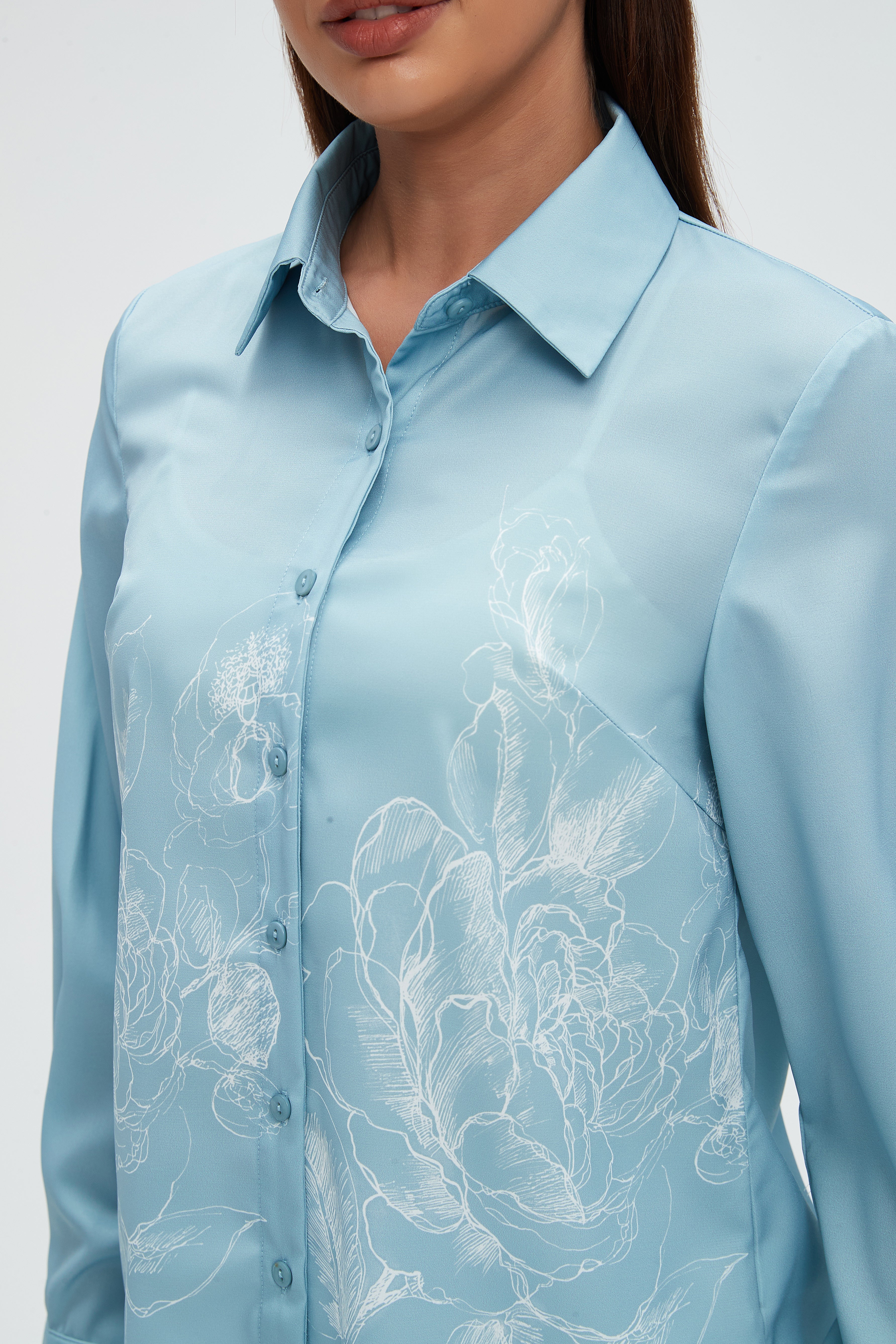 قميص كم طويل بنقشة ورود