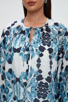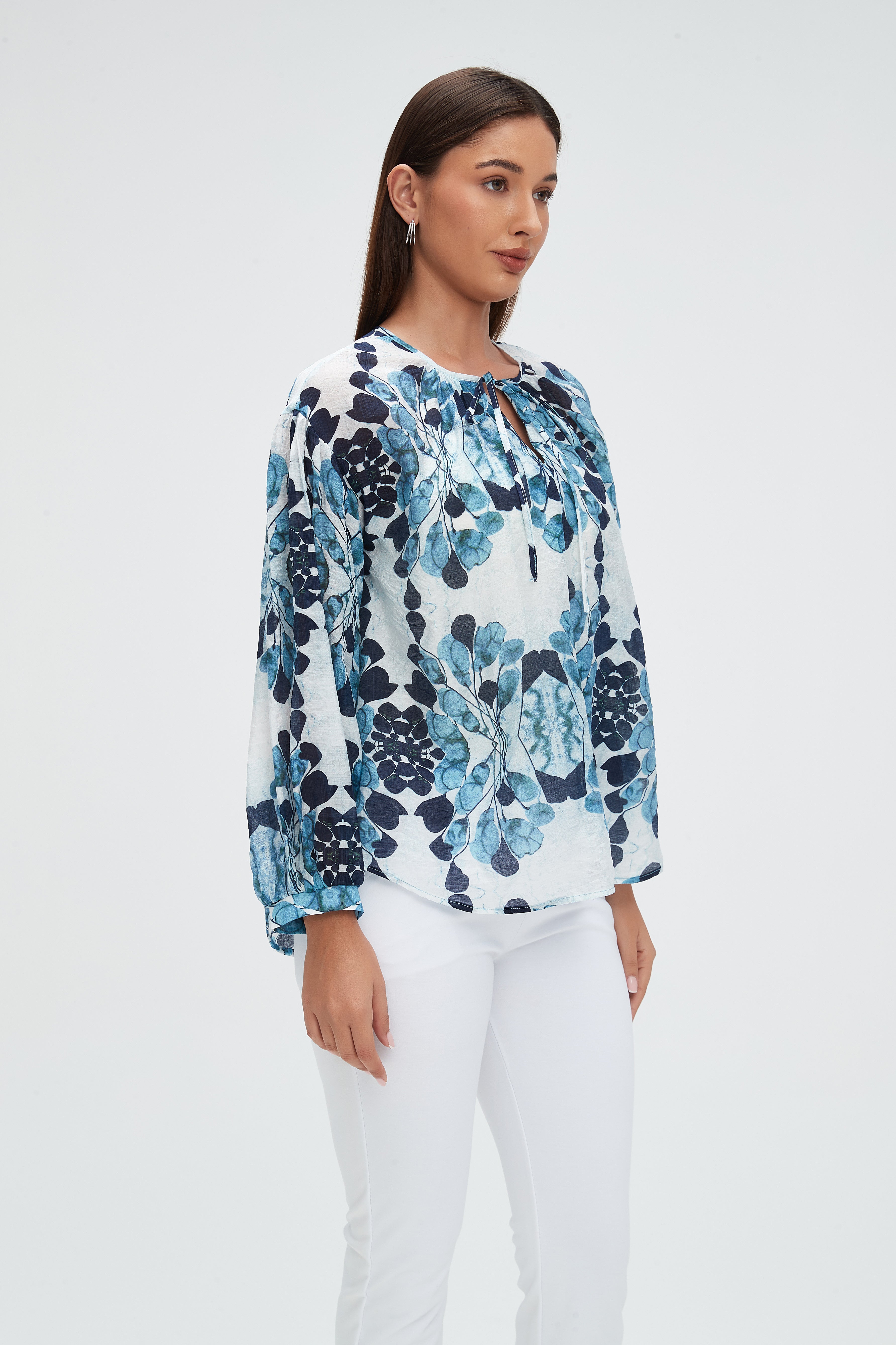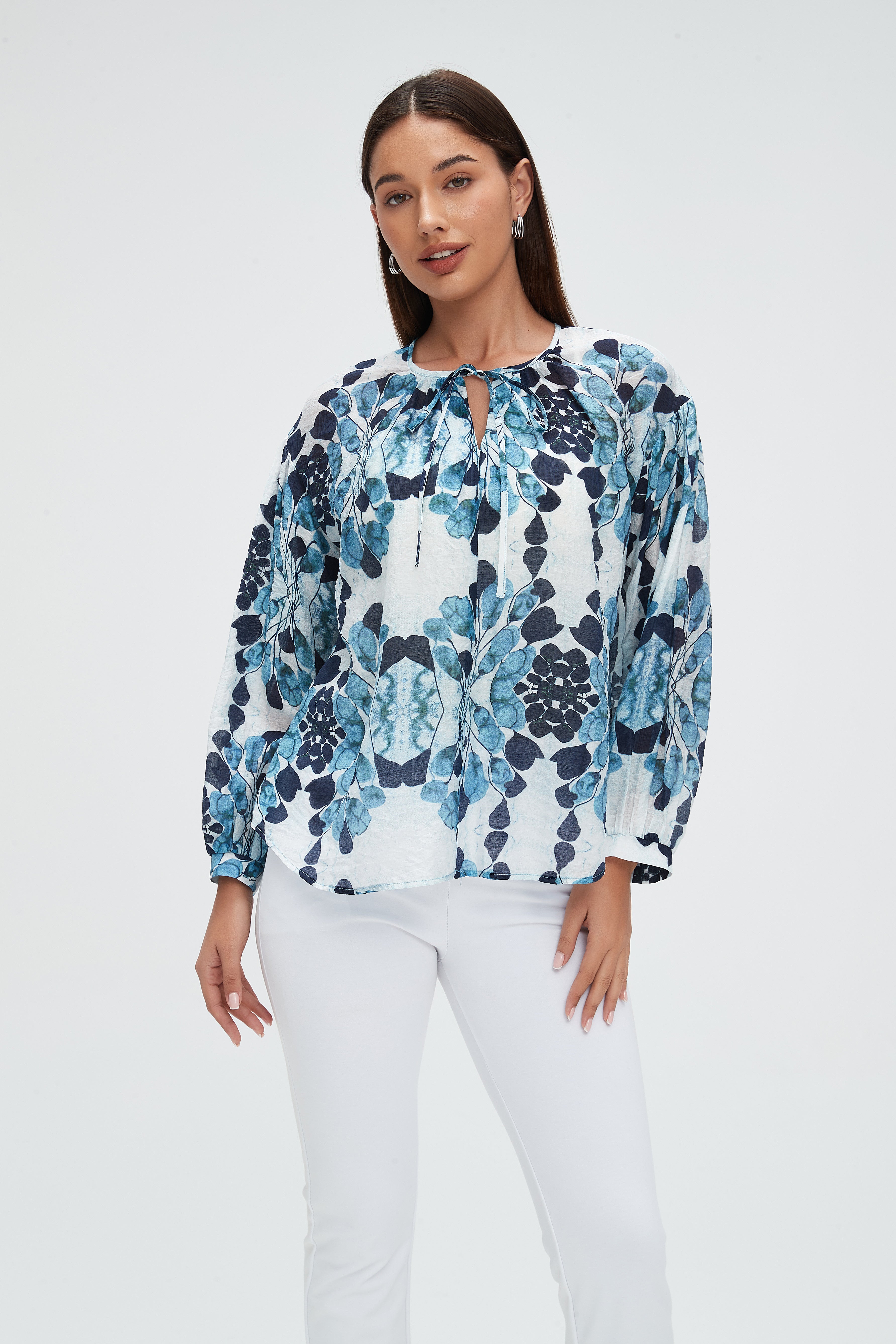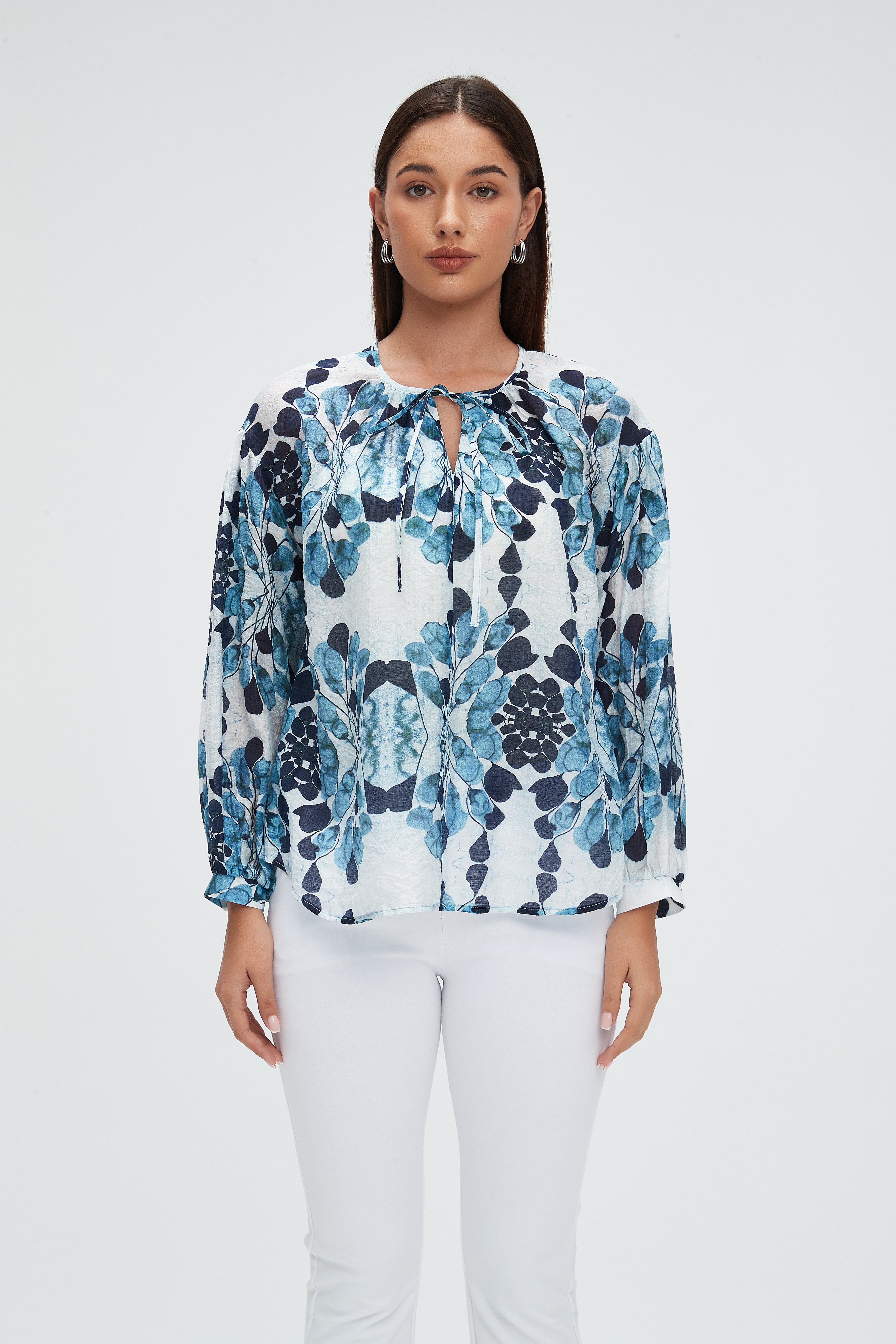 بلوزة مشجرة واسعة برباط بأكمام طويلة