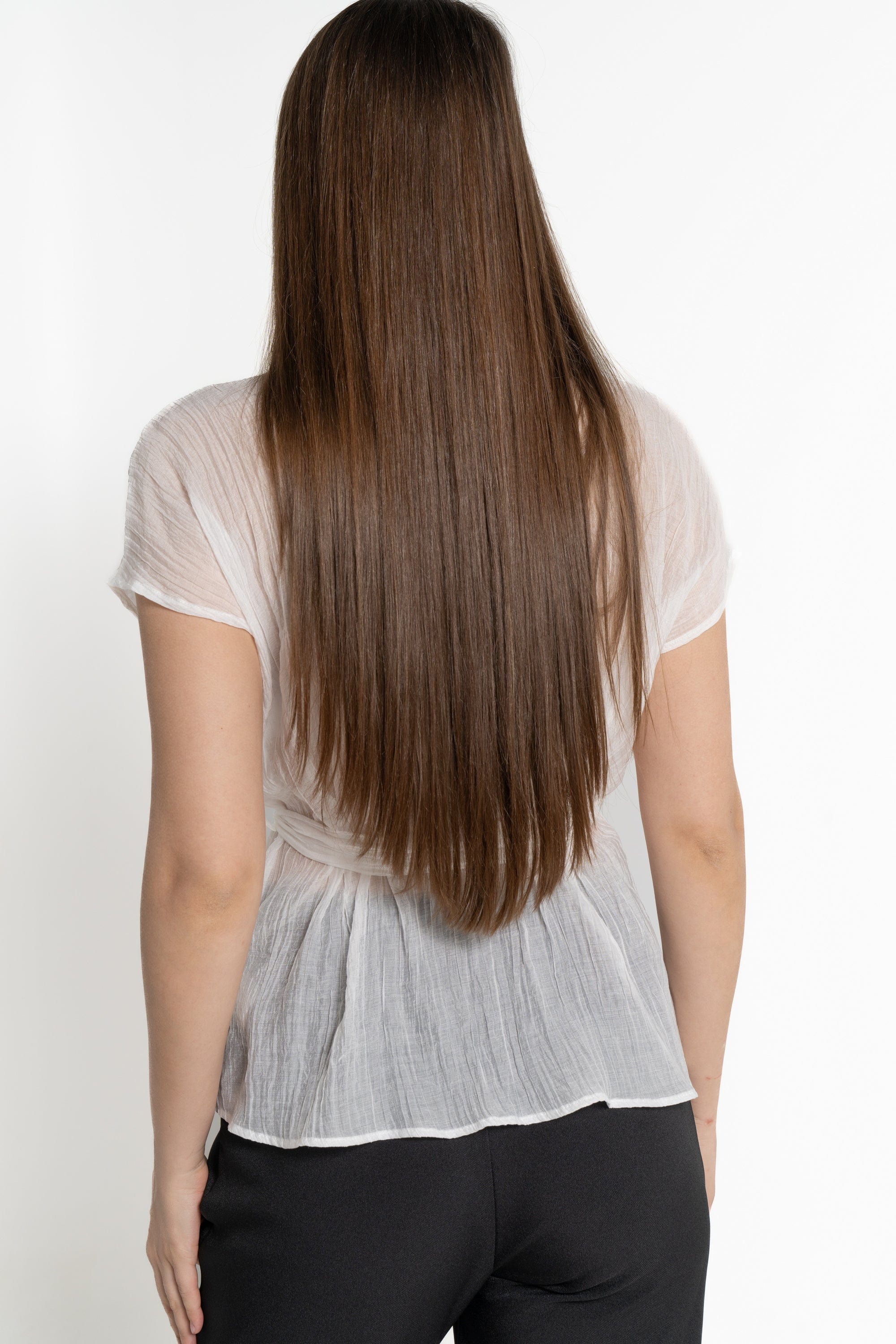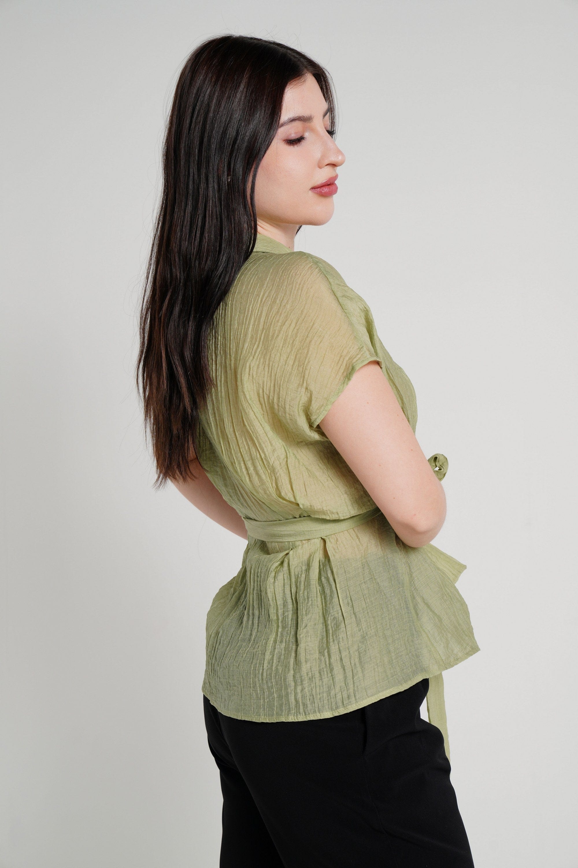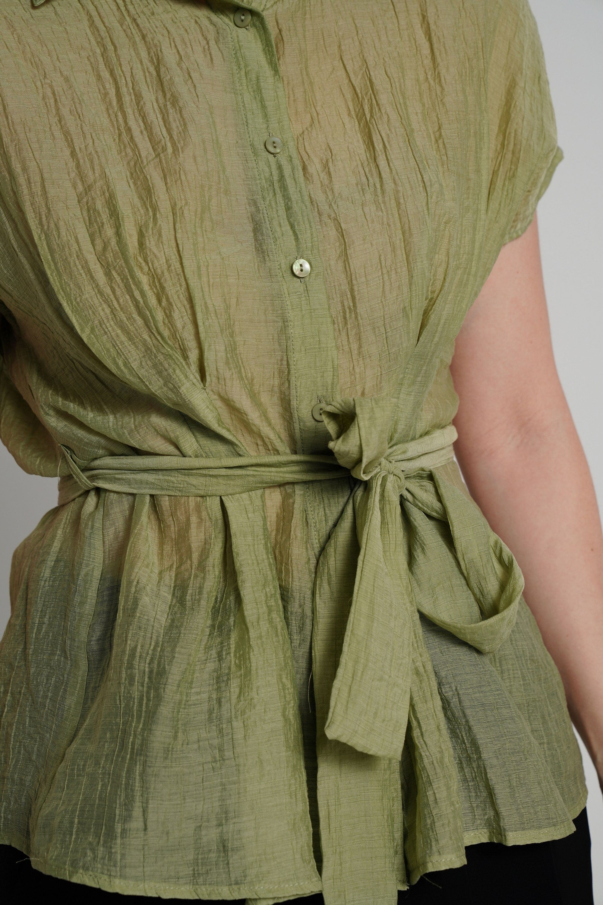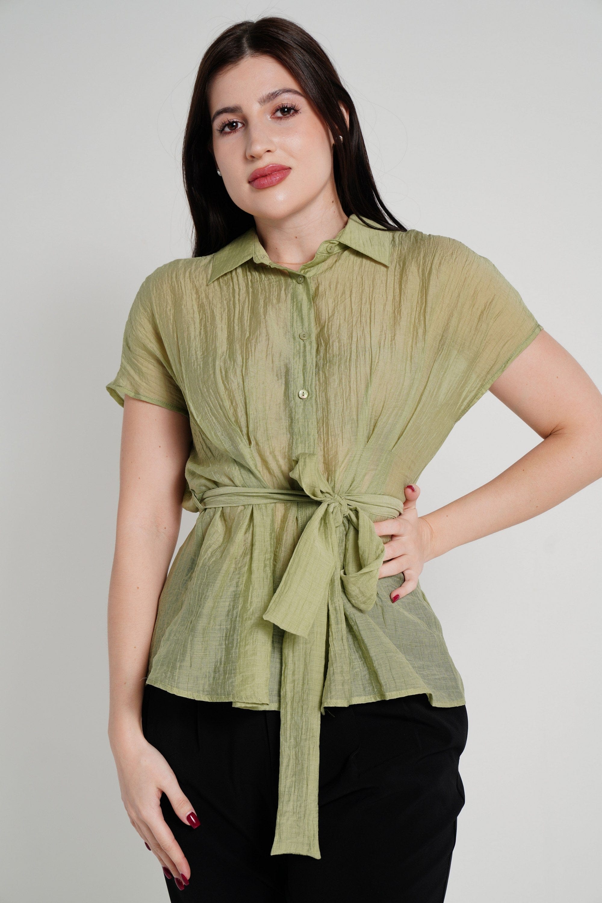 استعدي للتألق بقميص بأكمام قصيرة برباط خصر من ميكا. هذا القميص المثير متوفر بألوان رائعة: الأخضر والأوف وايت. صُمم هذا القميص بأكمام قصيرة وبرباط خصر مميز ليضفي لمسة أنثوية وعصرية على إطلالتك. يمكنك تنسيقه مع بنطلون جينز أو تنورة لإطلالة متنوعة ومميزة. احصلي الآن على قميص بأكمام قصيرة برباط خصر من ميكا واستمتعي بأناقة لا مثيل لها. اطلبيه الآن واستعدي للتألق بأسلوبك الخاص من خلال فاشن السعودية. رقم المنتج: mlc042424q202