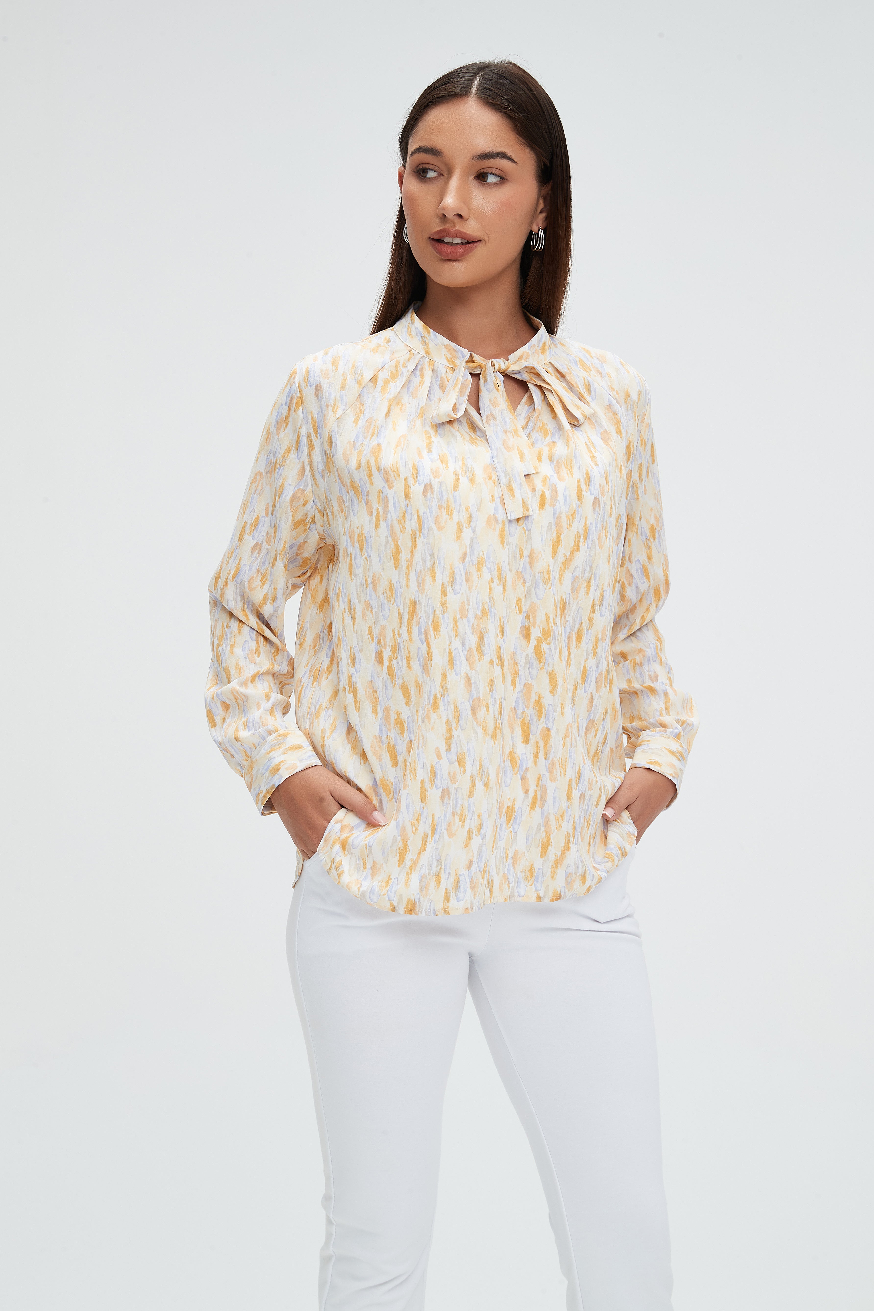 تضفي بلوزة كم طويل منقوشة برقبة دائرية من ميكا لمسة من الأناقة على إطلالتك اليومية. بلونها الأصفر الجذاب، تبرز هذه البلوزة أنوثتك وتمنحك شعورًا بالراحة والانتعاش. تصميمها العملي يجعلها مثالية للتنسيق مع مختلف الإطلالات، سواء كانت رسمية أو غير رسمية. الأقمشة المستخدمة عالية الجودة تمنحك ملمسًا ناعمًا وإحساسًا بالراحة طوال اليوم. لا تفوتي فرصة الحصول على هذه القطعة المميزة لتعززي من أسلوبك. اطلب الآن عبر فاشن السعودية وتمتعي بإطلالة فريدة! رقم المنتج: mlc053525q306
