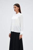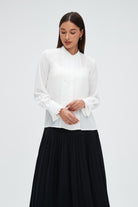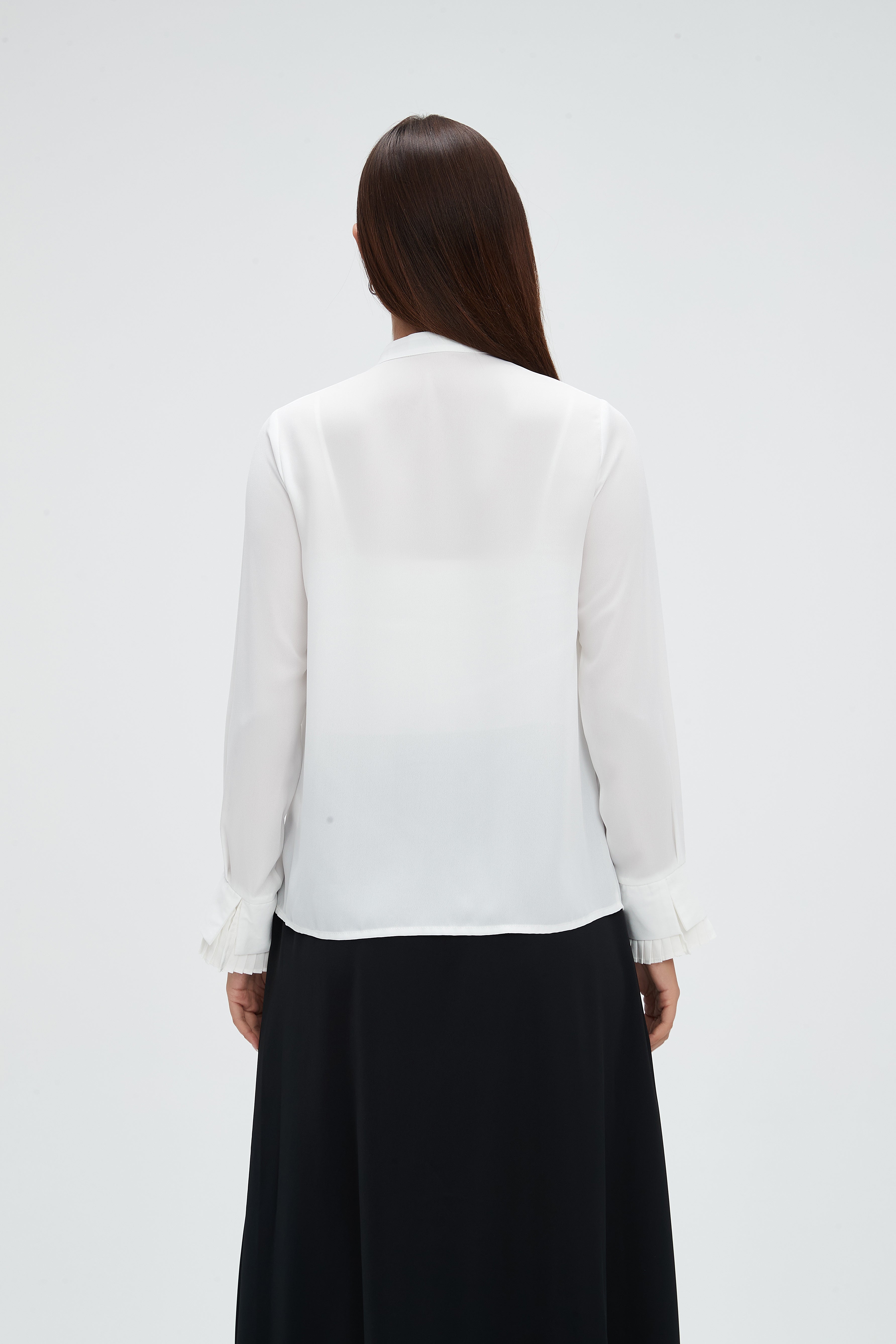 بلوزة كم طويل بطبقة دانتيل في المنتصف ياقة دائرية