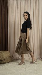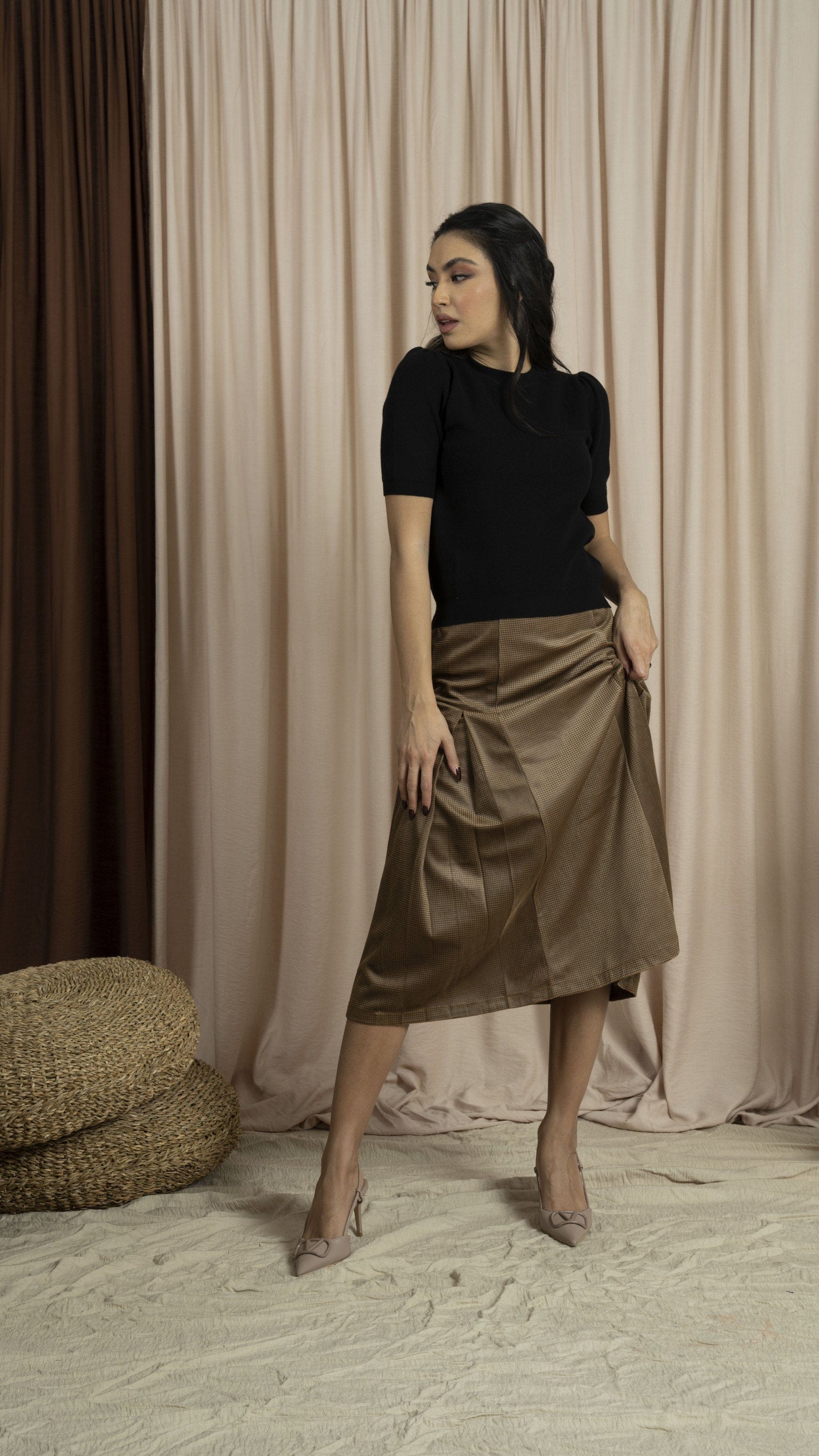 انغمسي في روعة الموضة مع تنورة ميدي كلوش من الجوانب النسائية من ماركة ميكا. تتميز هذه التنورة بتصميمها الأنيق والراقي الذي يبرز جمالك وأنوثتك. تأتي التنورة بقصة كلوش تضفي لمسة أنيقة وعصرية على إطلالتك. تتوفر هذه التنورة بألوان أسود وبني، لذا يمكنك اختيار اللون الذي يناسب ذوقك ومظهرك الشخصي. ستجد تناسقاً رائعاً بين الألوان الكلاسيكية وأناقة التصميم. صُنعت هذه التنورة بجودة عالية وبأقصى اهتمام بالتفاصيل، مما يضمن راحتك وثباتها على الجسم. إنها مثالية للمناسبات الرسمية والحفلات وحتى للإطلالات اليومية المميزة. رقم المنتج: mlf0127-22q406