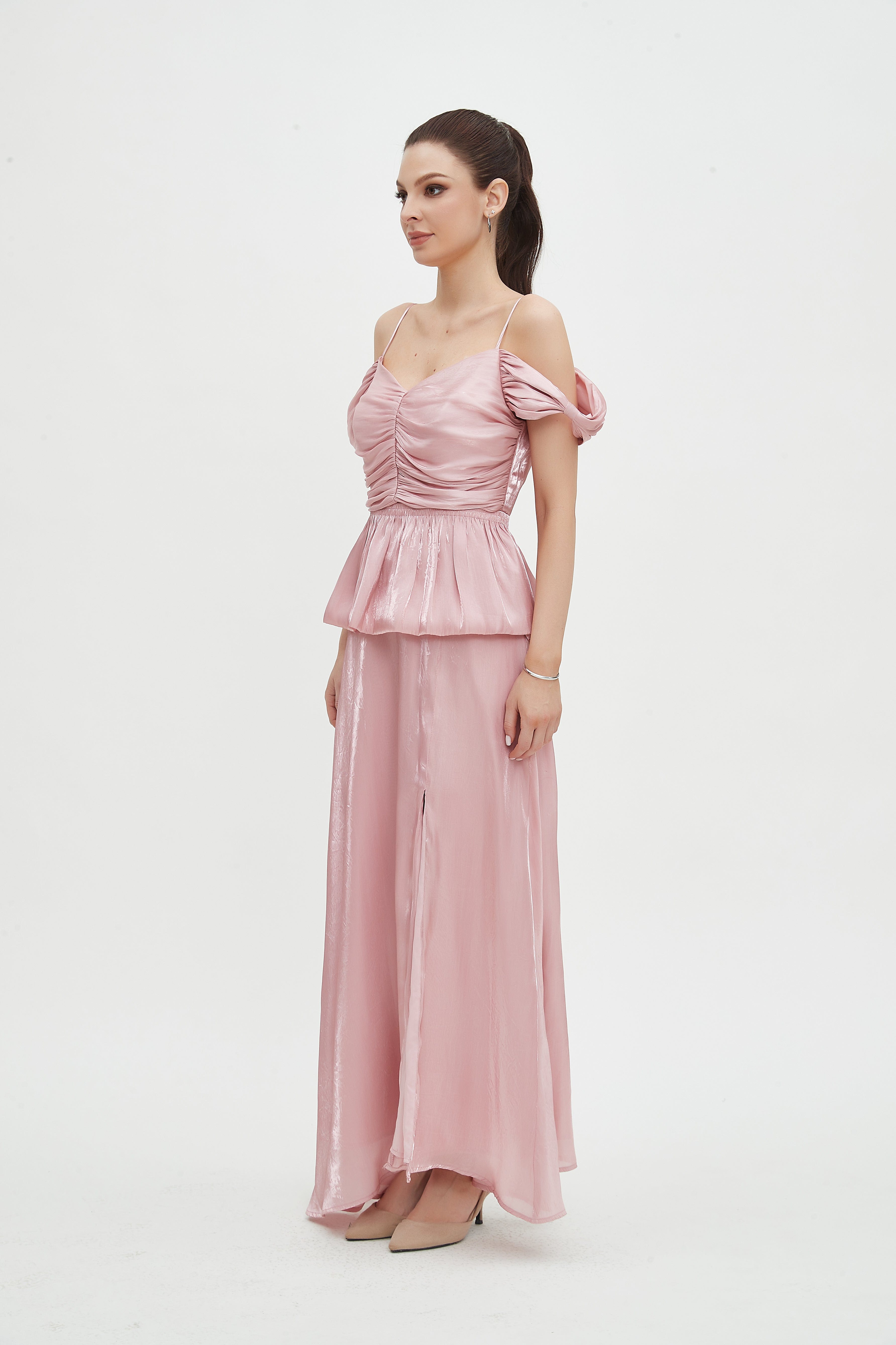 إذا كنتِ تبحثين عن فستان يجمع بين الأناقة والراحة للمناسبات المسائية والطلعات اليومية، فهذا الفستان ماكسي بقصة A خيار رائع. الخامة بوليستر 100% بسمك متوسط تجعله مناسباً لكل المواسم ويمنحك راحة أثناء الحركة مع الحفاظ على الشكل، والفستان يأتي بدون بطانة. التصميم سادة بكتف واحد وياقة مكشوفة الأكتاف يبرز الكتفين بطريقة أنثوية، وبلا أكمام مع شق يمنح خطوة حرة ولمسة مسائية جذابة. لا يحتوي على جيوب أو حزام، ما يحافظ على انسيابية القصة العادية. اللون البنفسجي يضيف جرأة ودفء للطلّة. سهل العناية ومقاوم للتجاعيد، ستقدرين غسله بالمغسلة دون خسارة شكله. مناسب للخروجات الرومانسية والسهرات أو نهار متأنق؛ ستحبين كيف يتحرك معك ويمنحك إحساس أنثوي أنيق. اعثري على مقاسك في فاشن السعودية وأضيفي هذه القطعة المتنوعة إلى خزانة ملابسك اليوم.