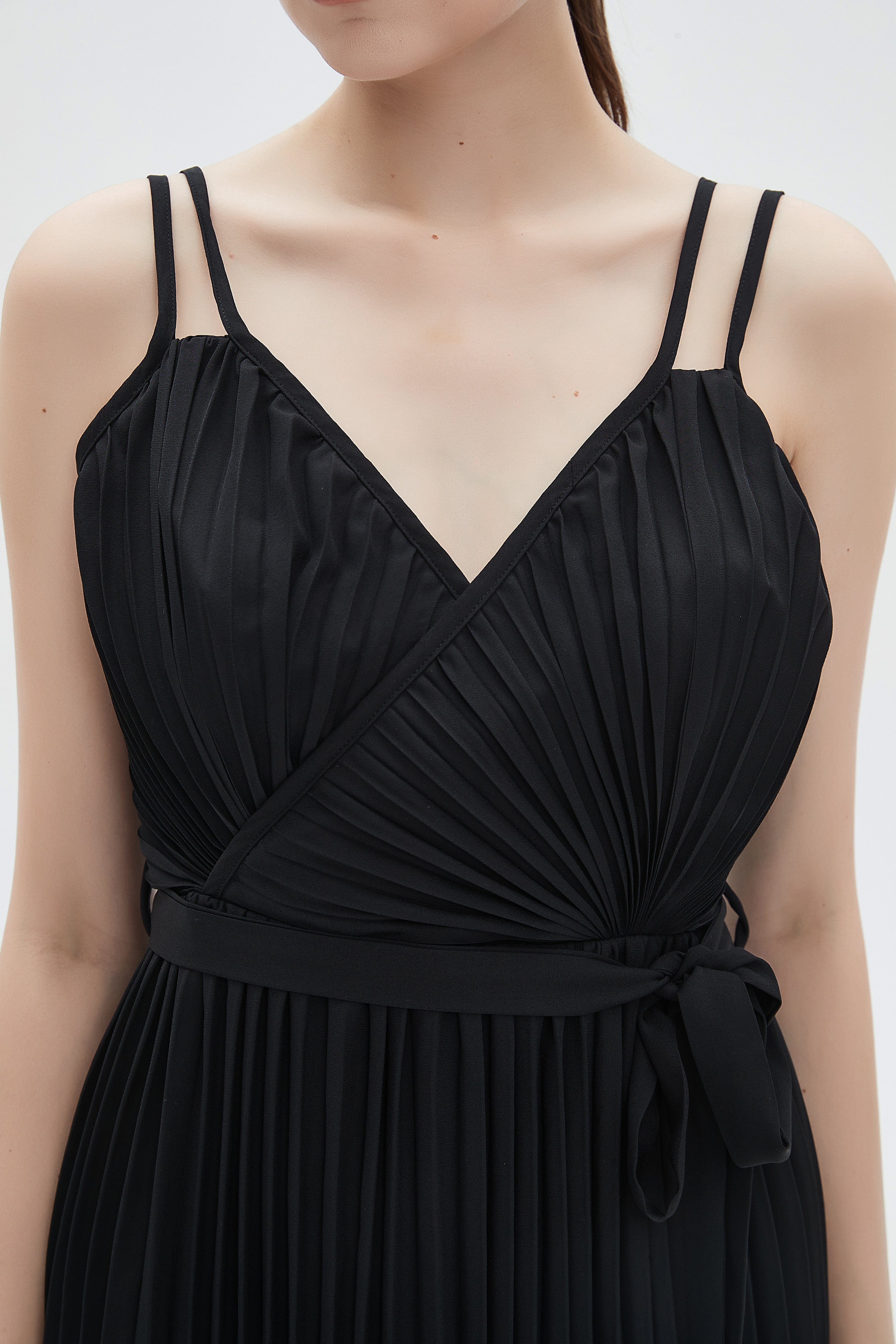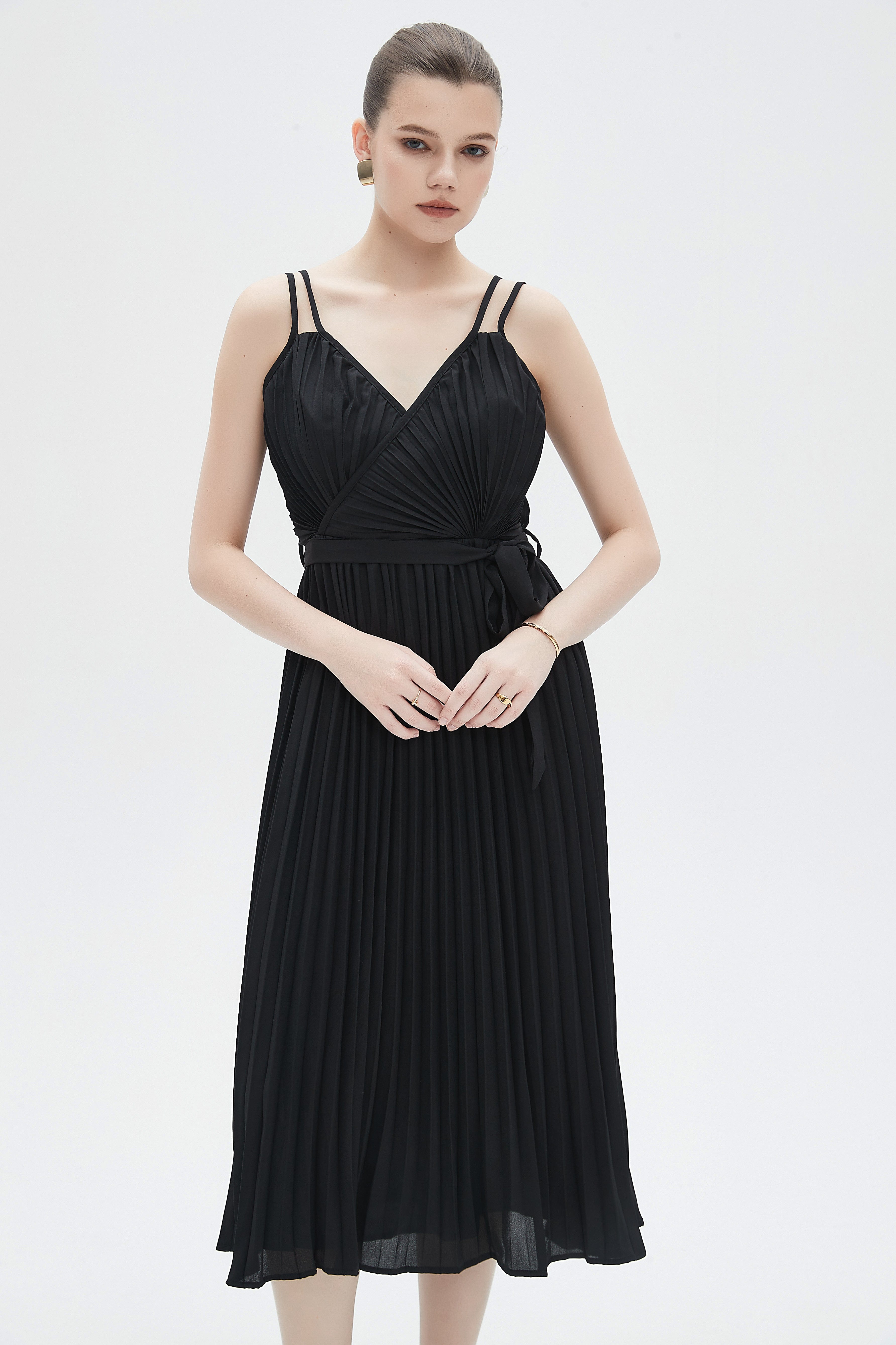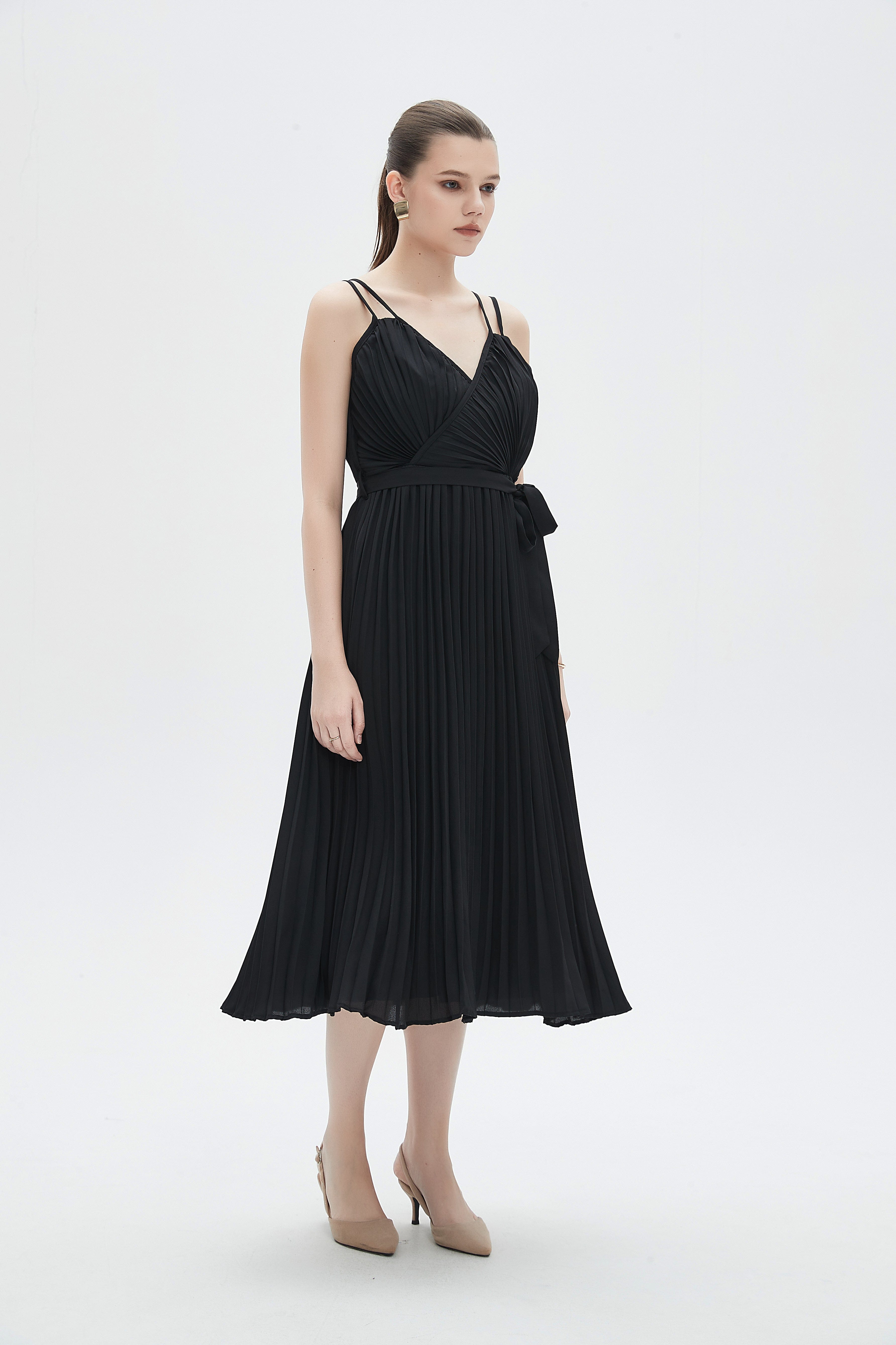فستان نسائي ميدي بحمالات بليسيه سادة