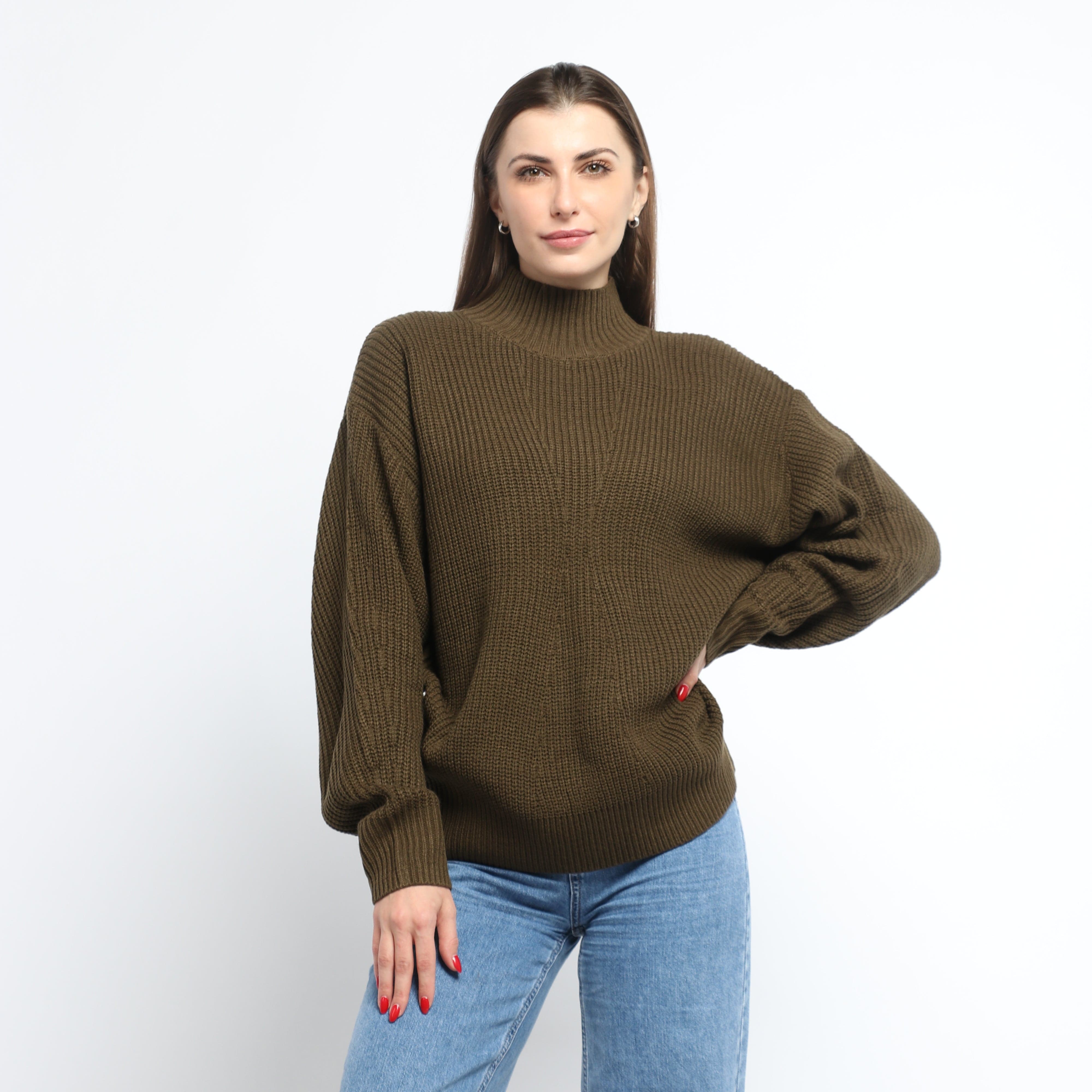 توب مضلع سادة بياقة مرتفعة بكم طويل نسائي