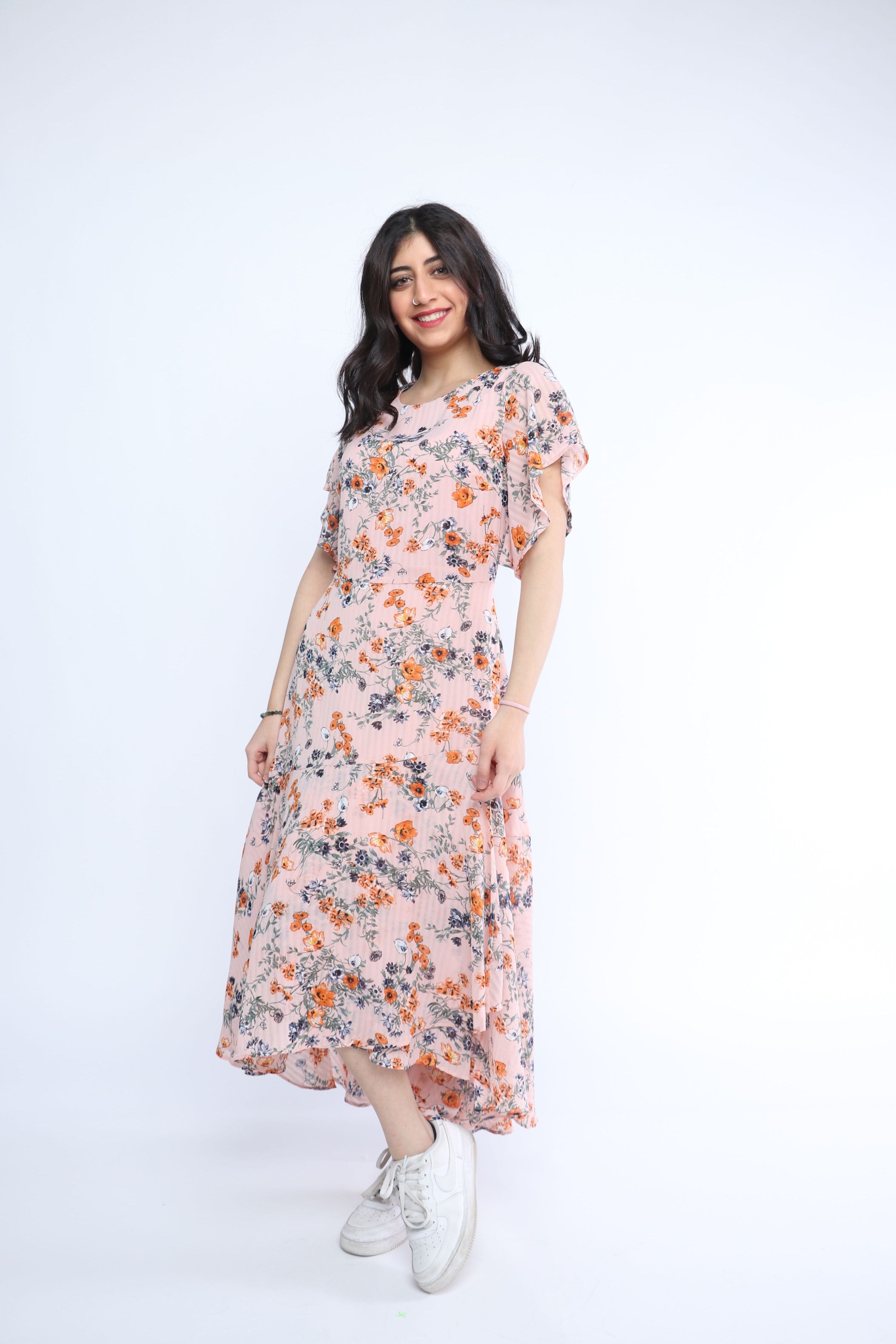 أحيانًا تحتاجين فستاناً يظهرك أنثوية ويكون عملي في نفس الوقت، وهذا الفستان رائع لذلك. مصنوع من بوليستر 100% يمنحك قطعة خفيفة التحميل وتحافظ على ألوانها المتعددة بعد الغسيل، بسماكة متوسطة تناسب كل المواسم مع تكديس طبقات بسيطة. قصة A مريحة بقصّة عادية تبرز الخصر بلطف، بطول ميدي يضفي لمسة أنيقة، وياقة مستديرة تمنح إطلالة ناعمة، والأكمام القصيرة مثالية للخروجات الكاجوال. نقش الزهور يضيف حيوية للأيام اليومية أو للخروجات الرومانسية. بدون جيوب وبلا بطانة ولا حزام مرفق، لذا ستستمتعين بحرية الحركة ويمكنك إضافة حزام خارجي أو جاكيت حسب المناسبة. اعثري على مقاسك في فاشن السعودية وأضيفي هذه القطعة المتنوعة إلى خزانة ملابسك اليوم.