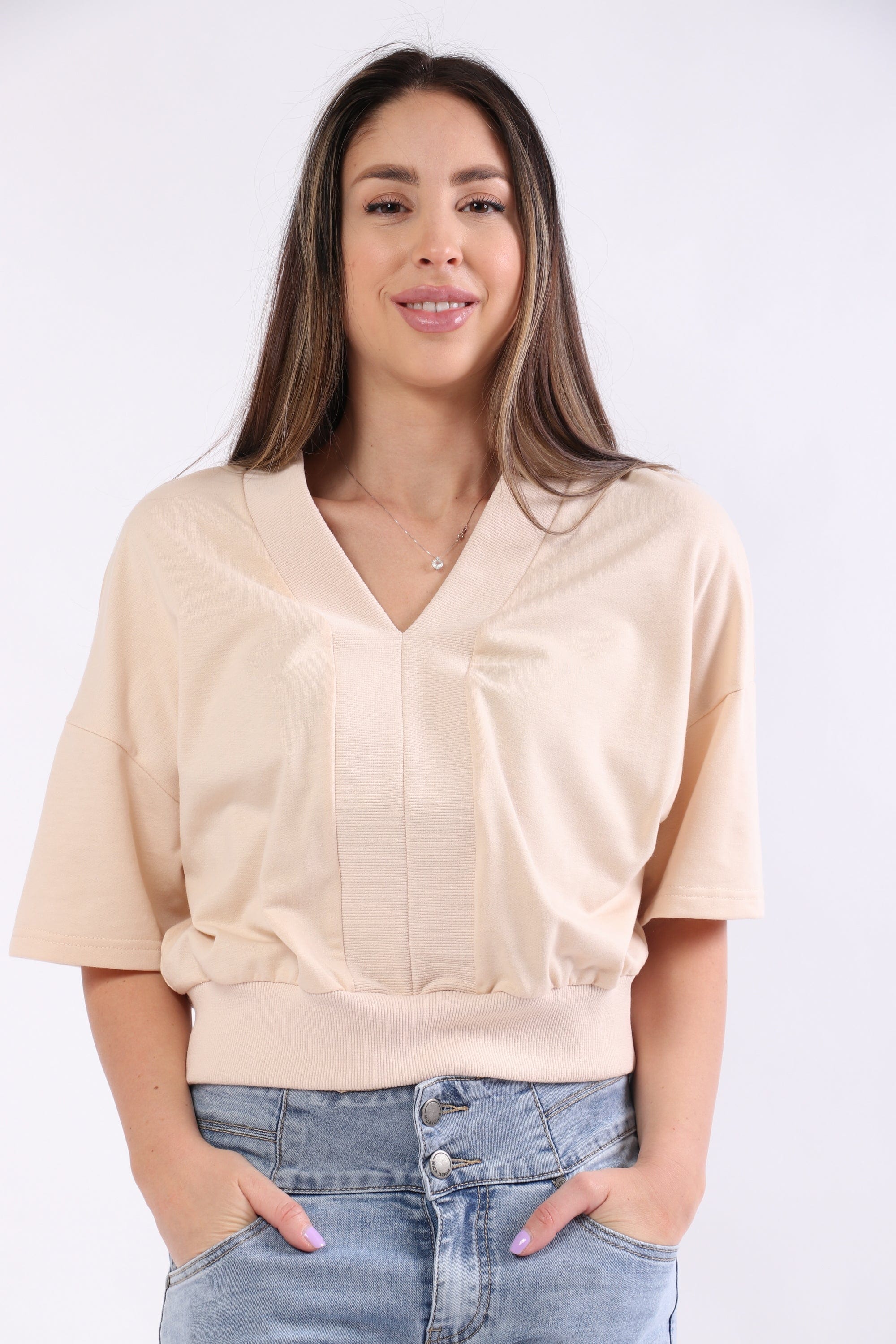بلوزة بأكمام قصيرة سادة بخصر مطاطي