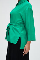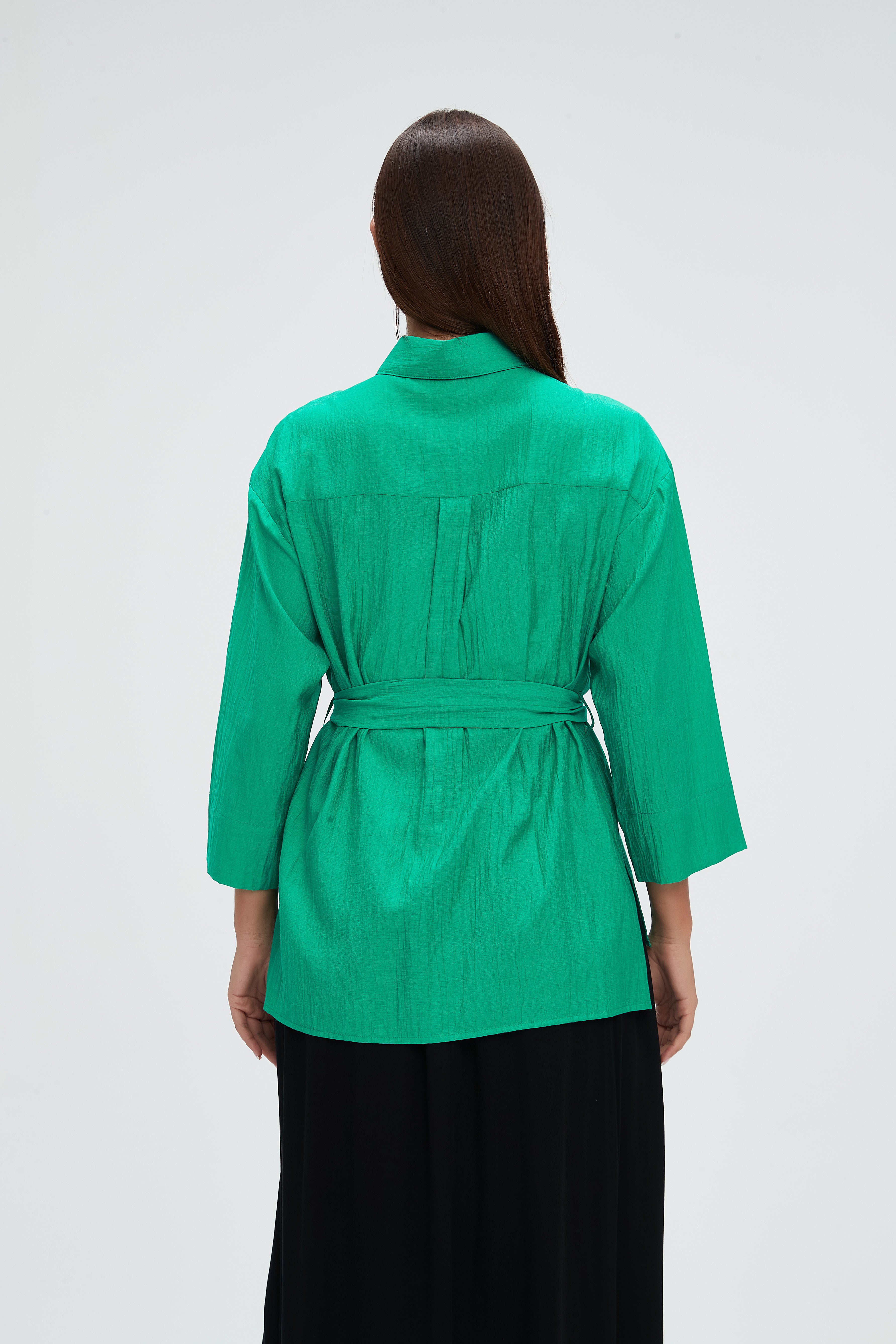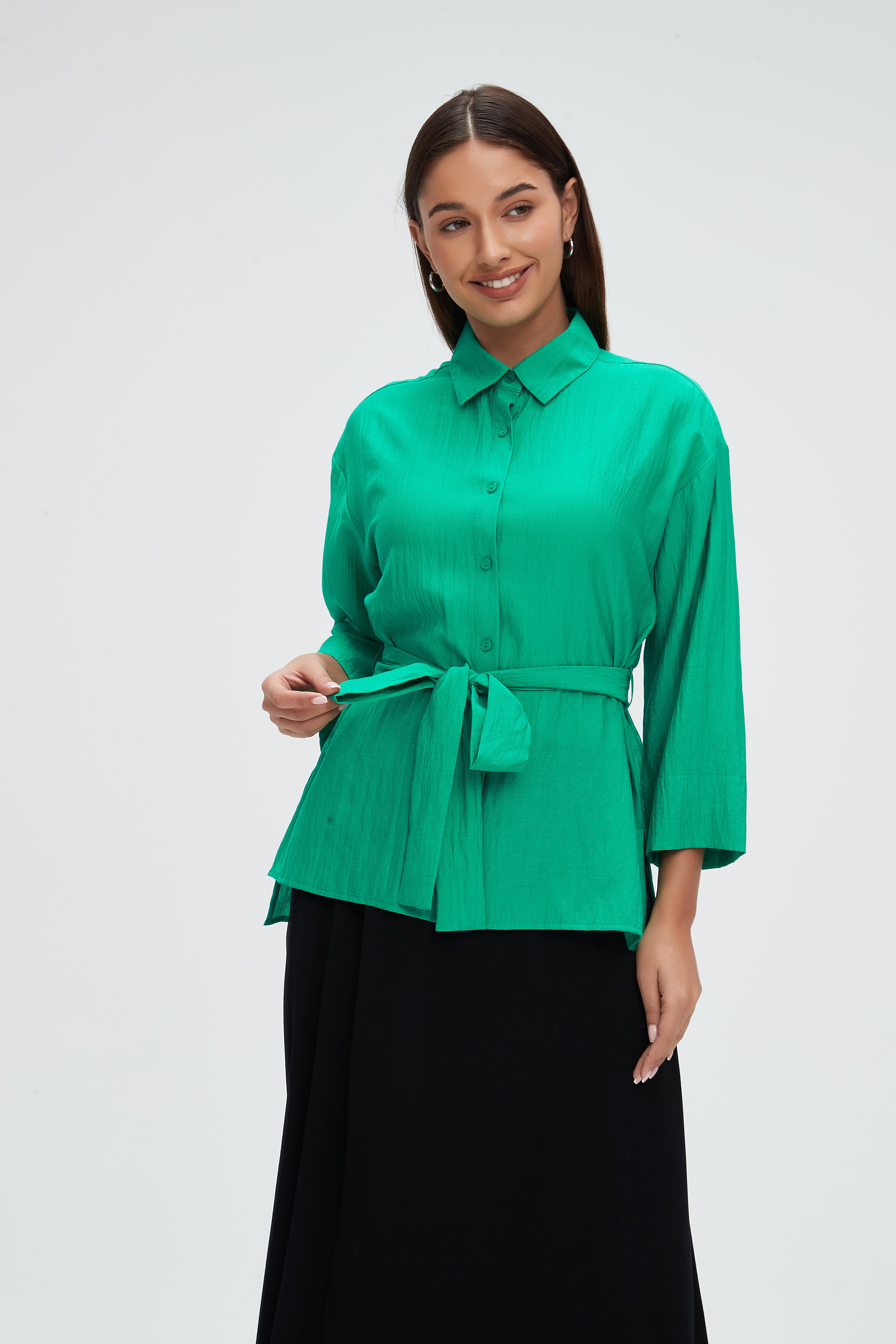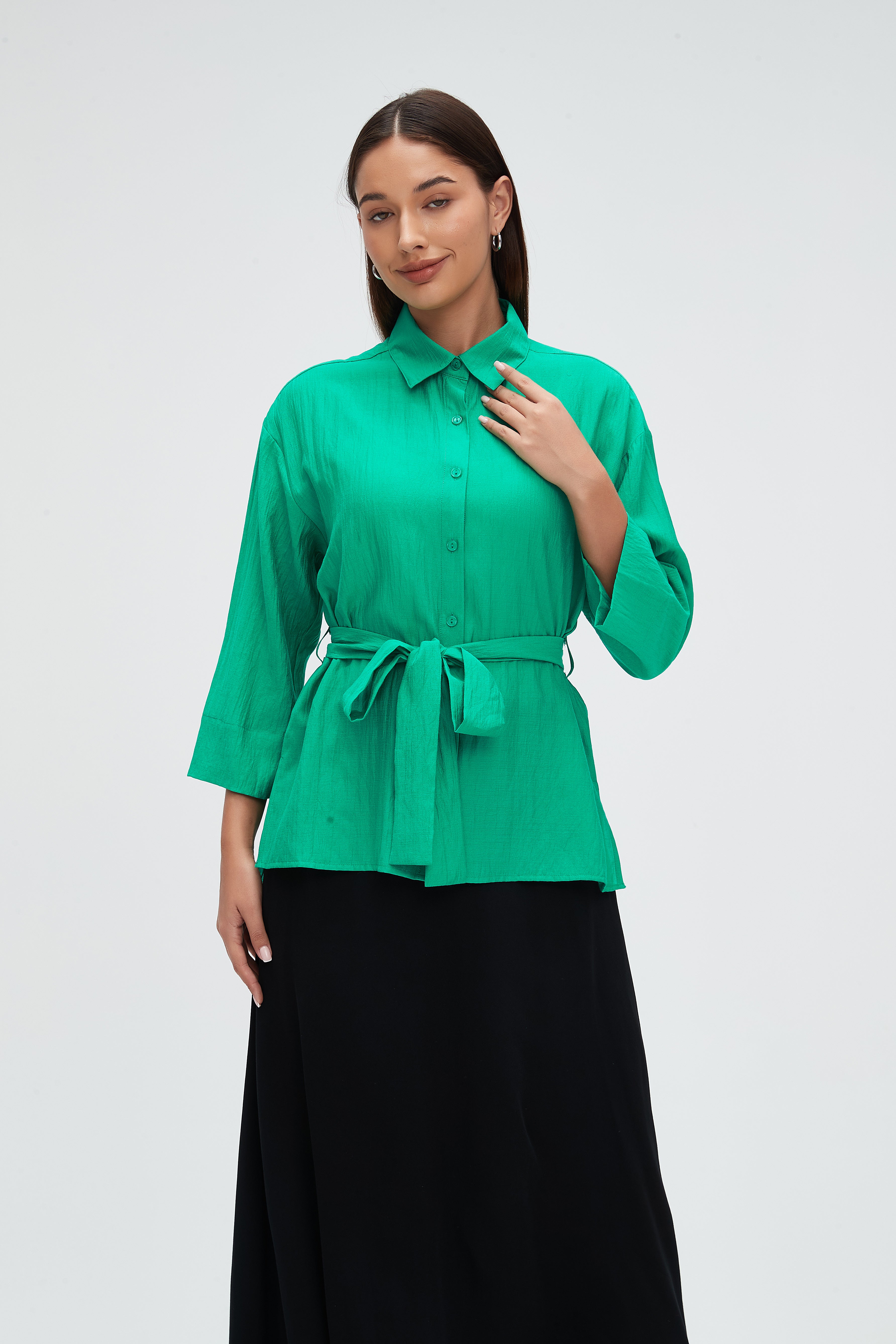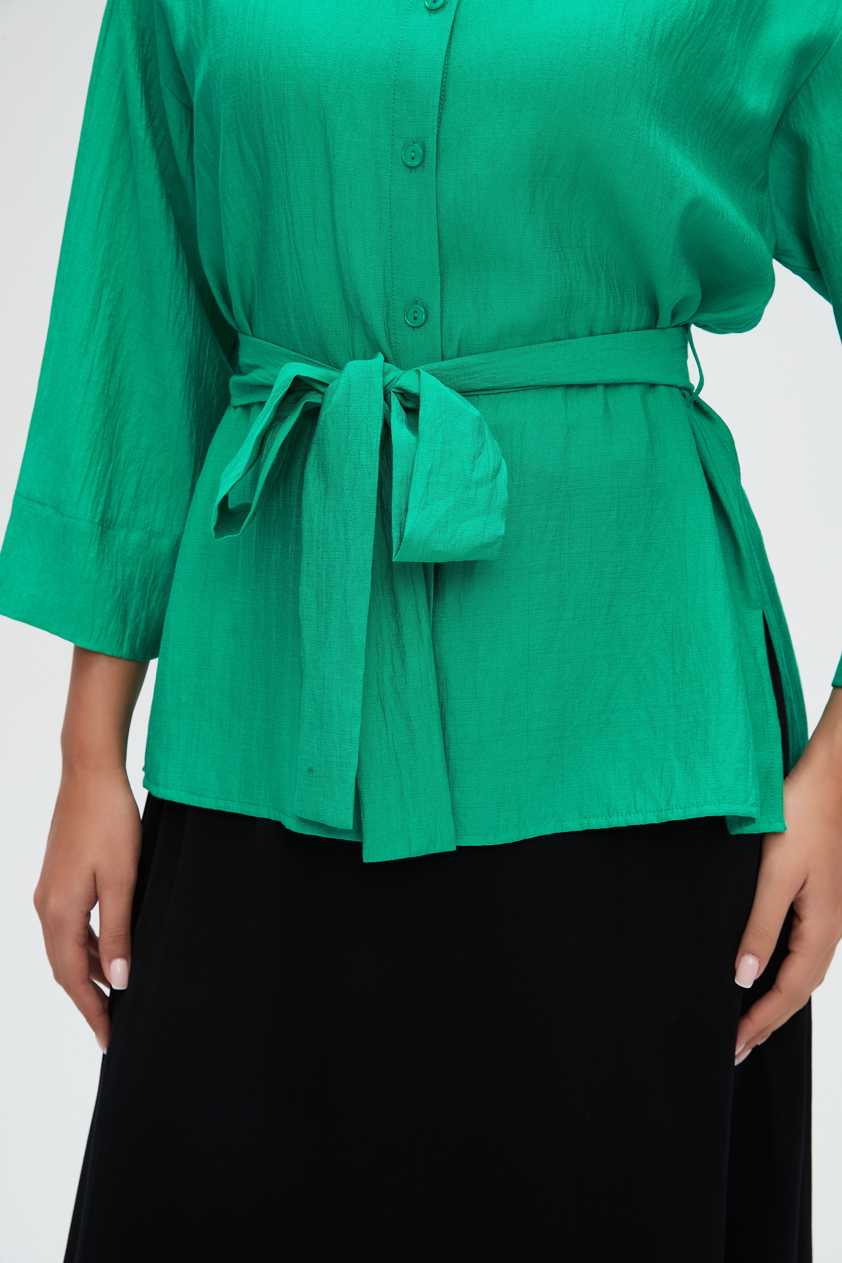 بلوزة طويلة 4\3 كم بحزام على الخصر