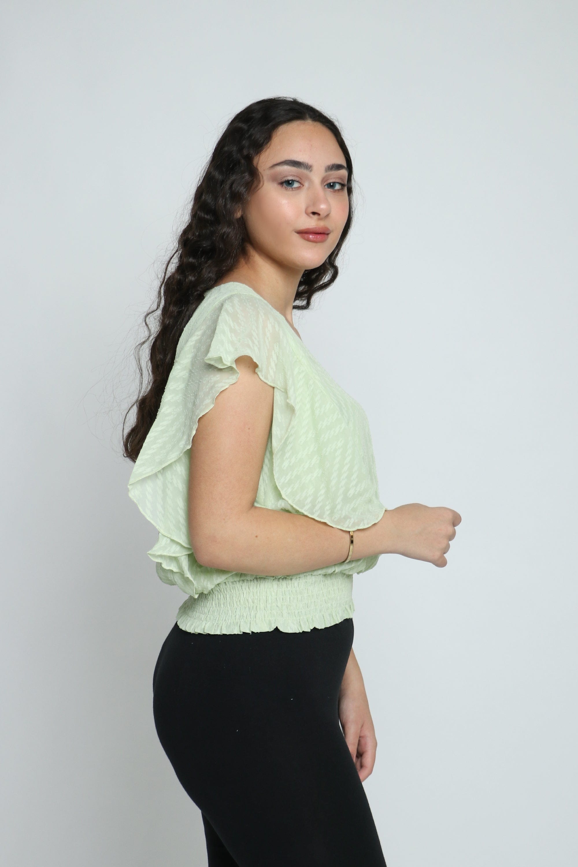 بلوزة بأستيك وبأكمام قصيرة طبقات نسائي