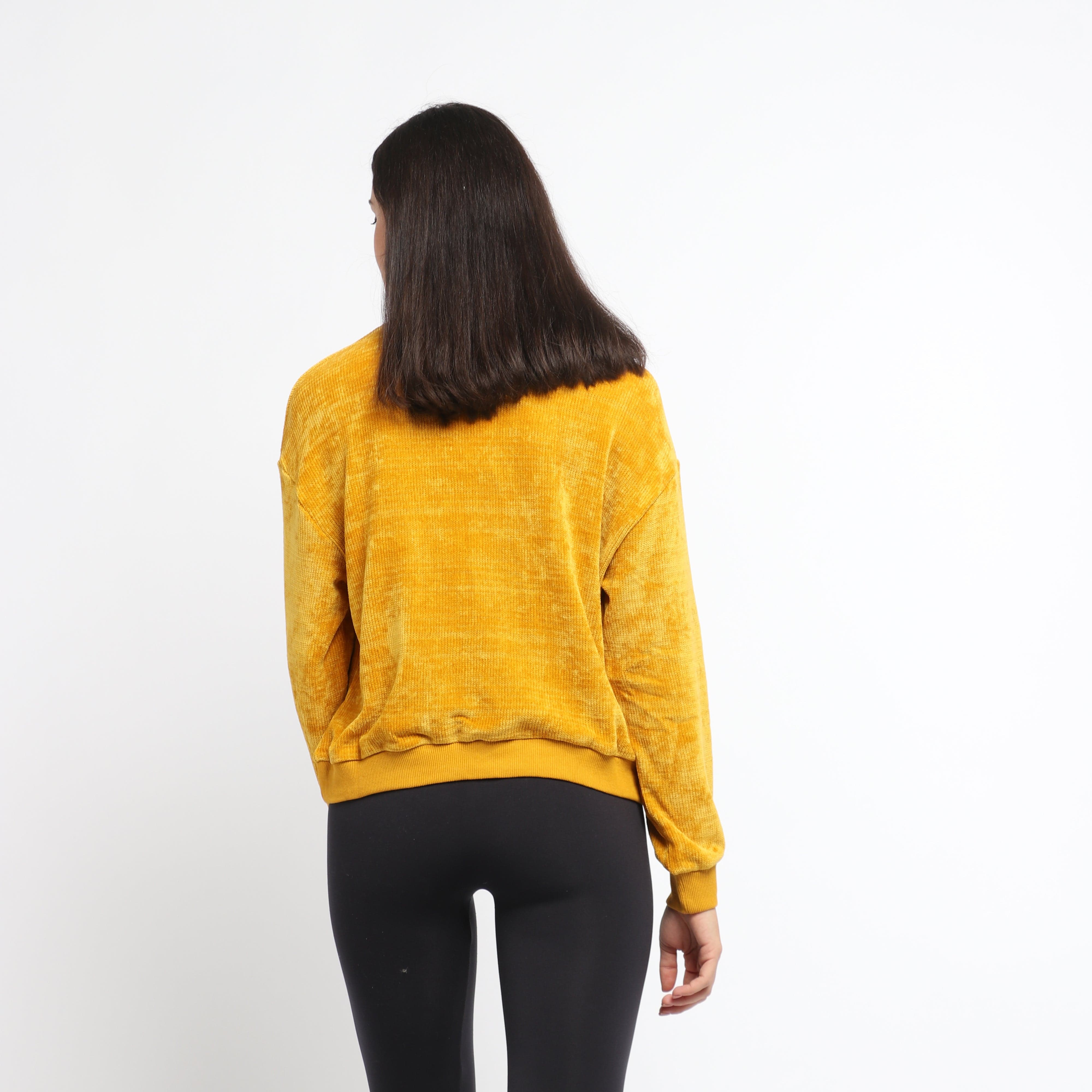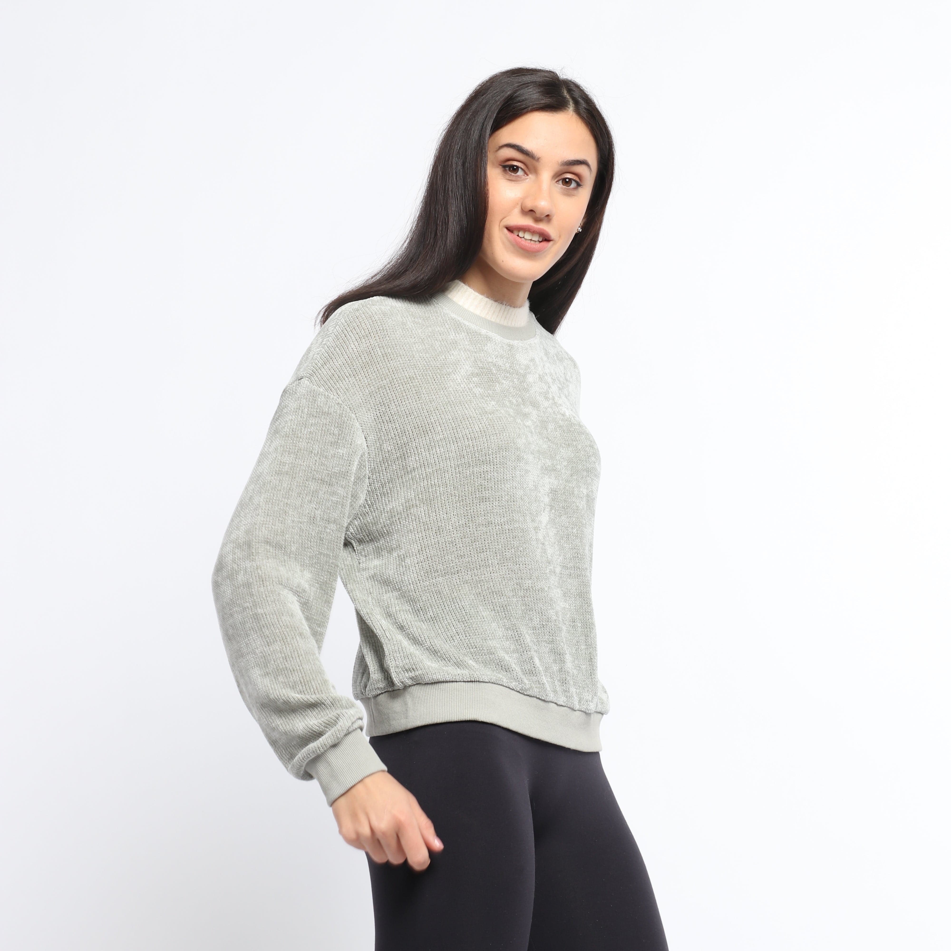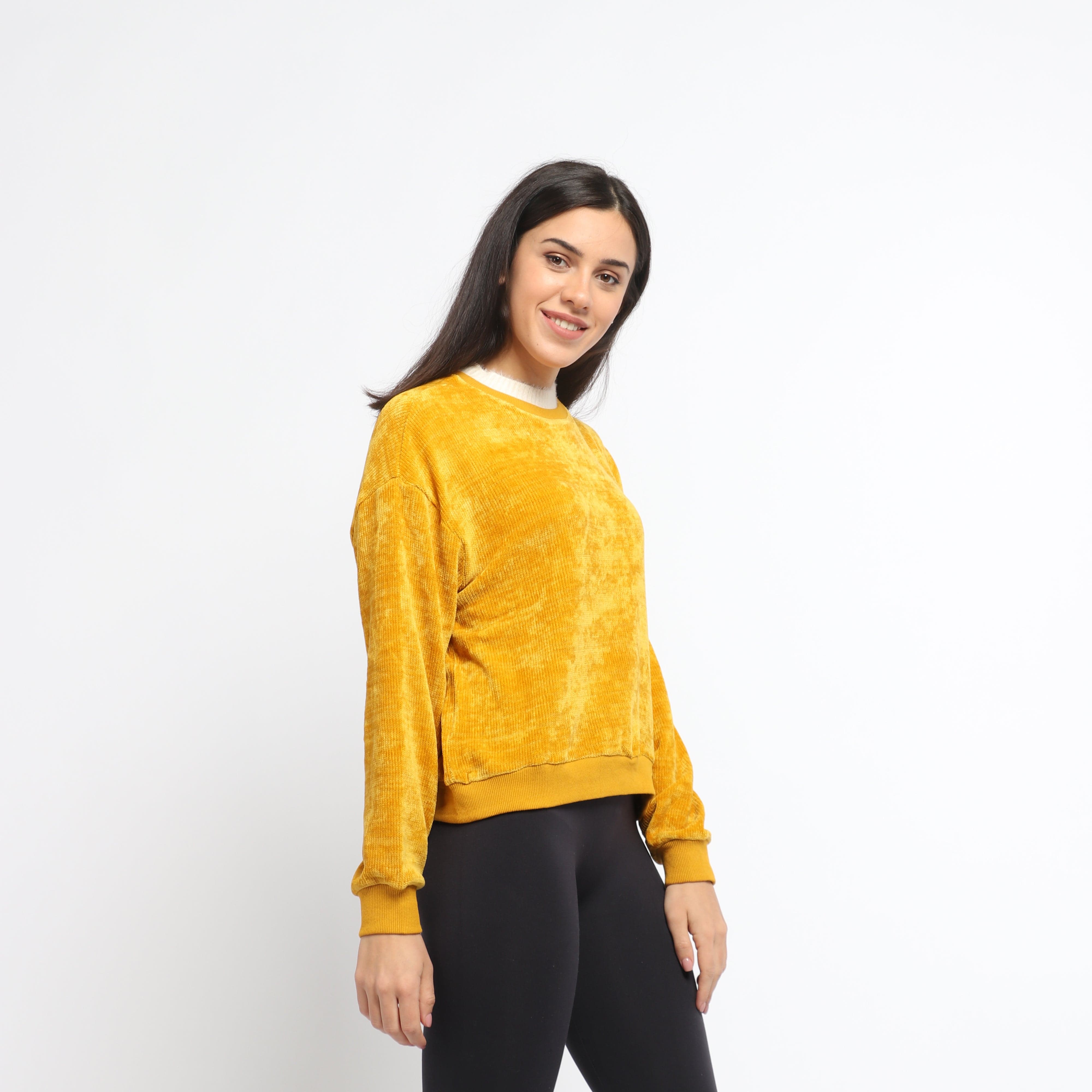بلوزة سادة بياقة بيضاء بأكمام طويلة