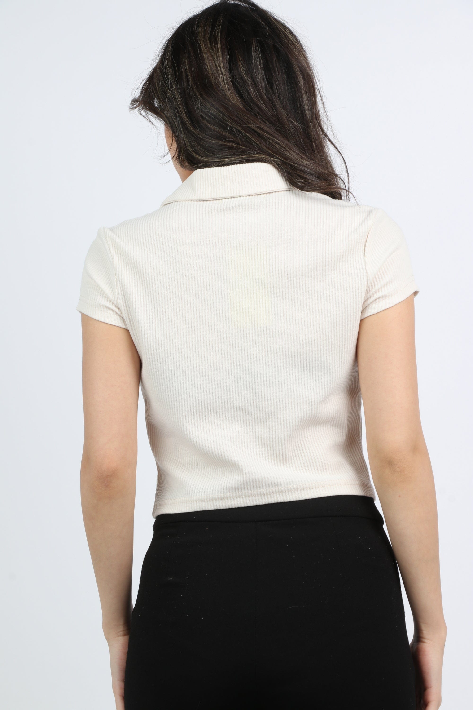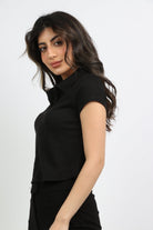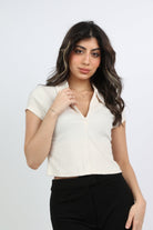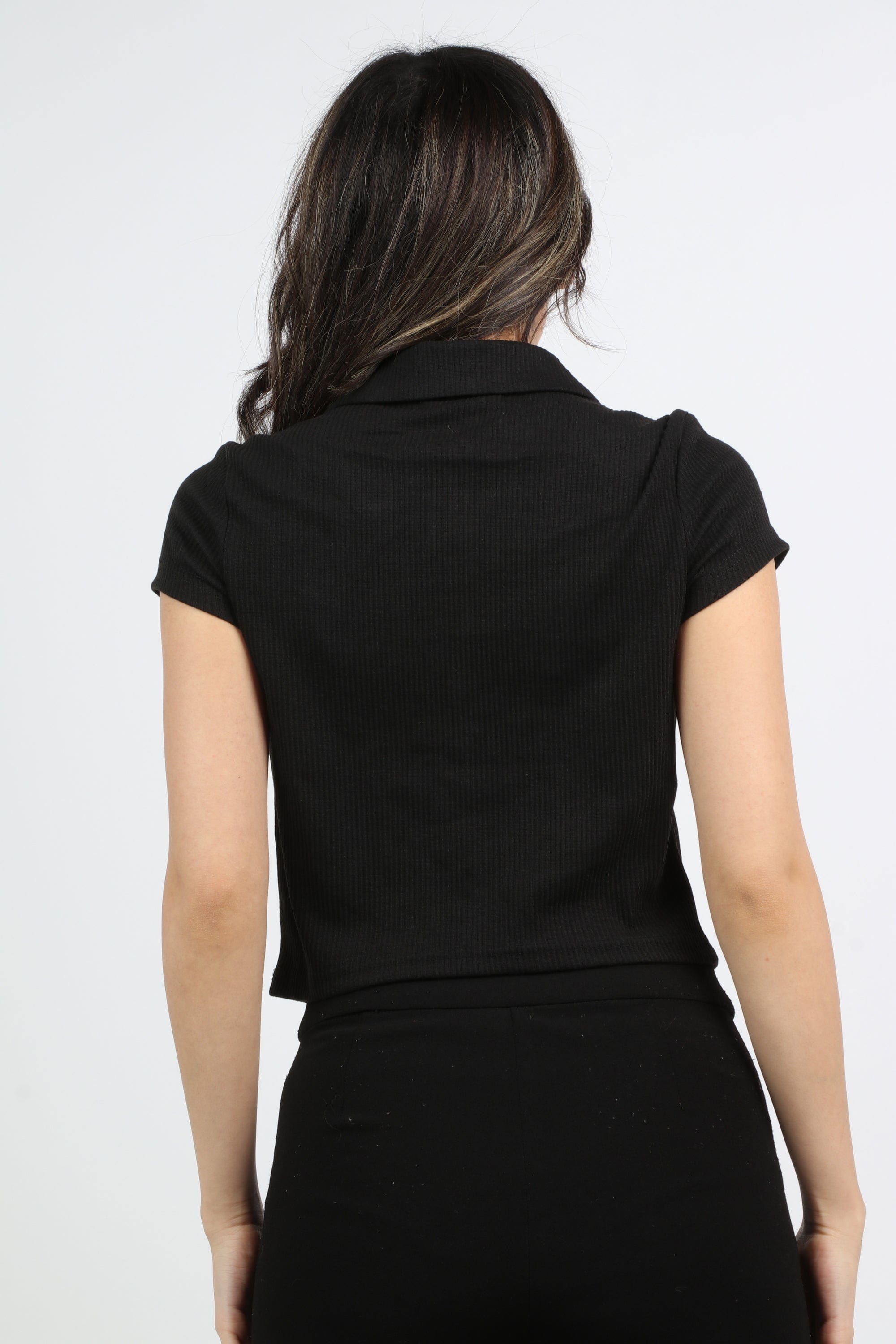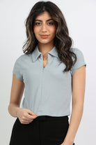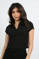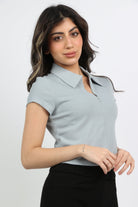 بلوزة سادة بياقة وسحاب كم قصير نسائي