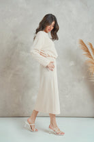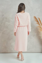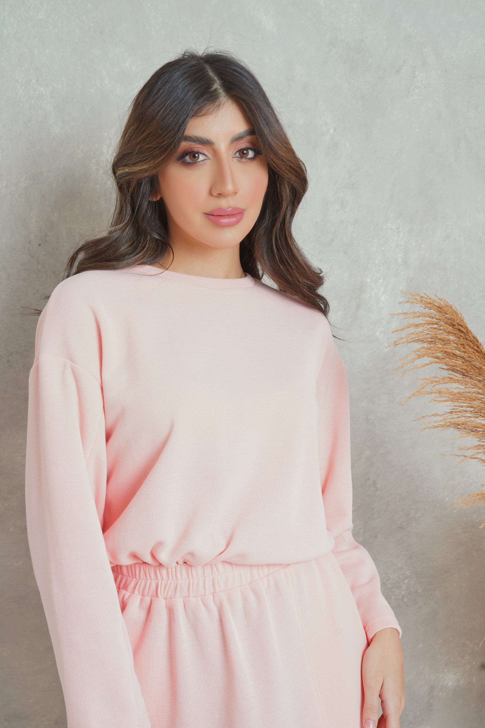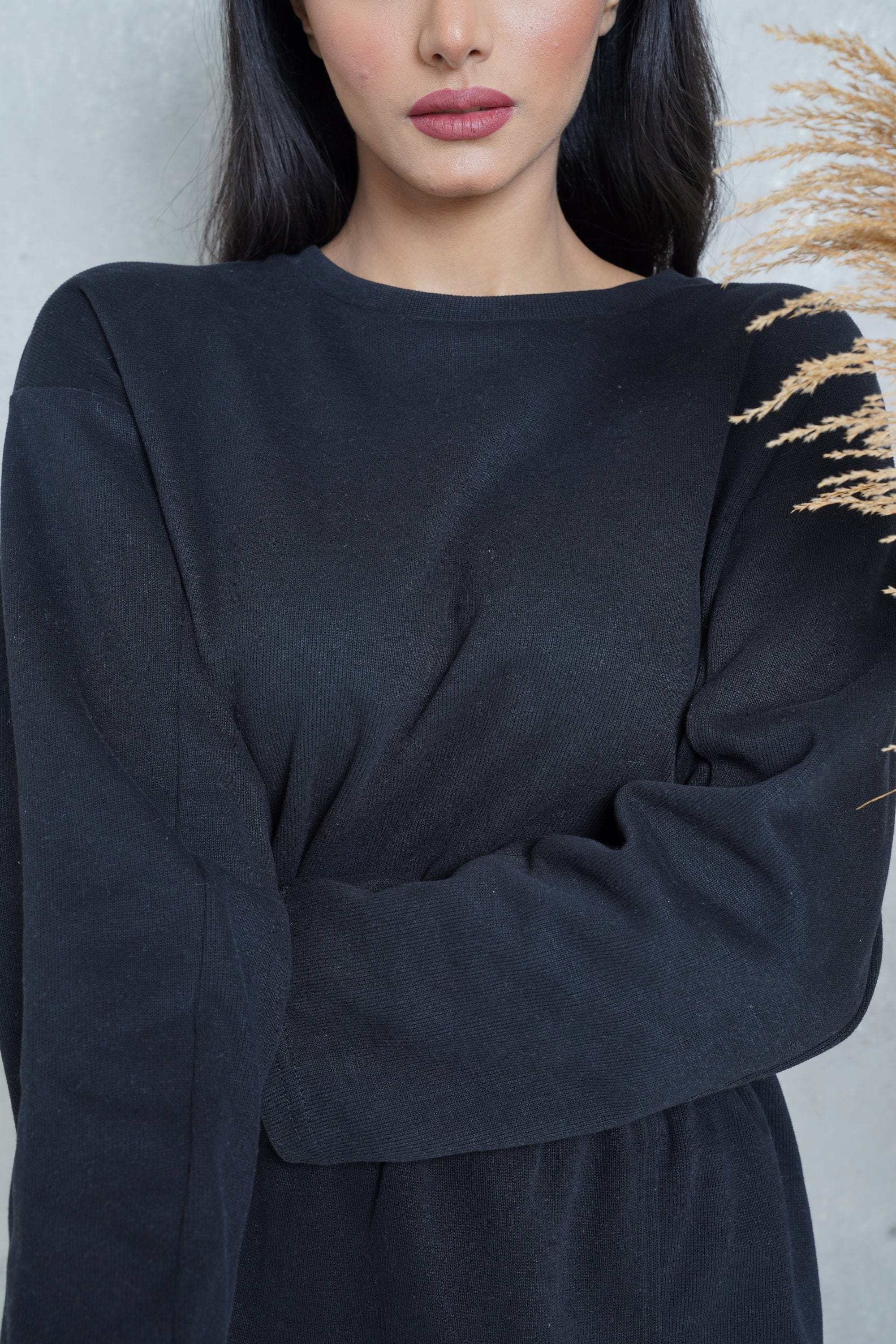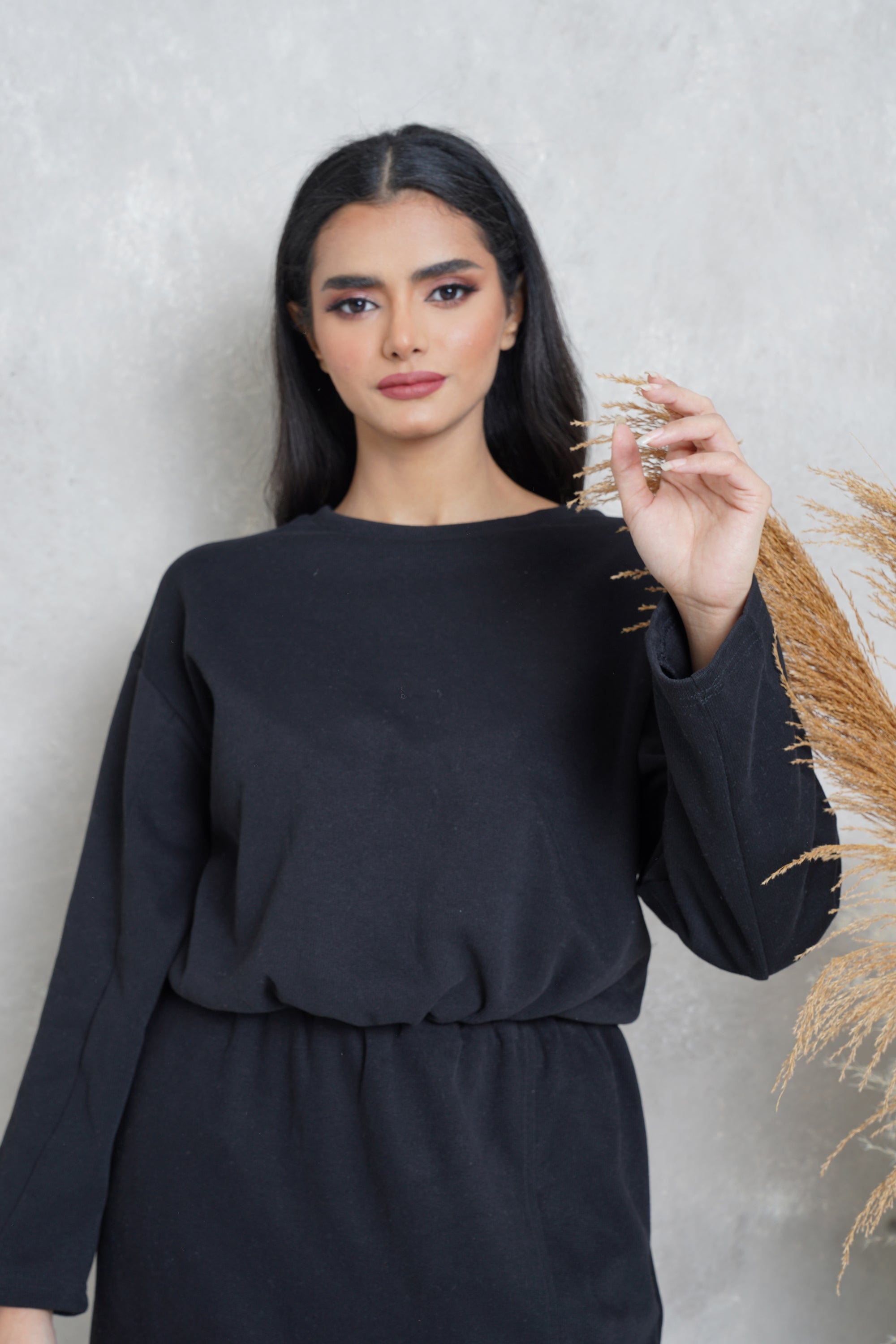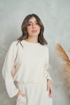 بلوزة قطنية بفتحة رقبة دائرية كم طويل