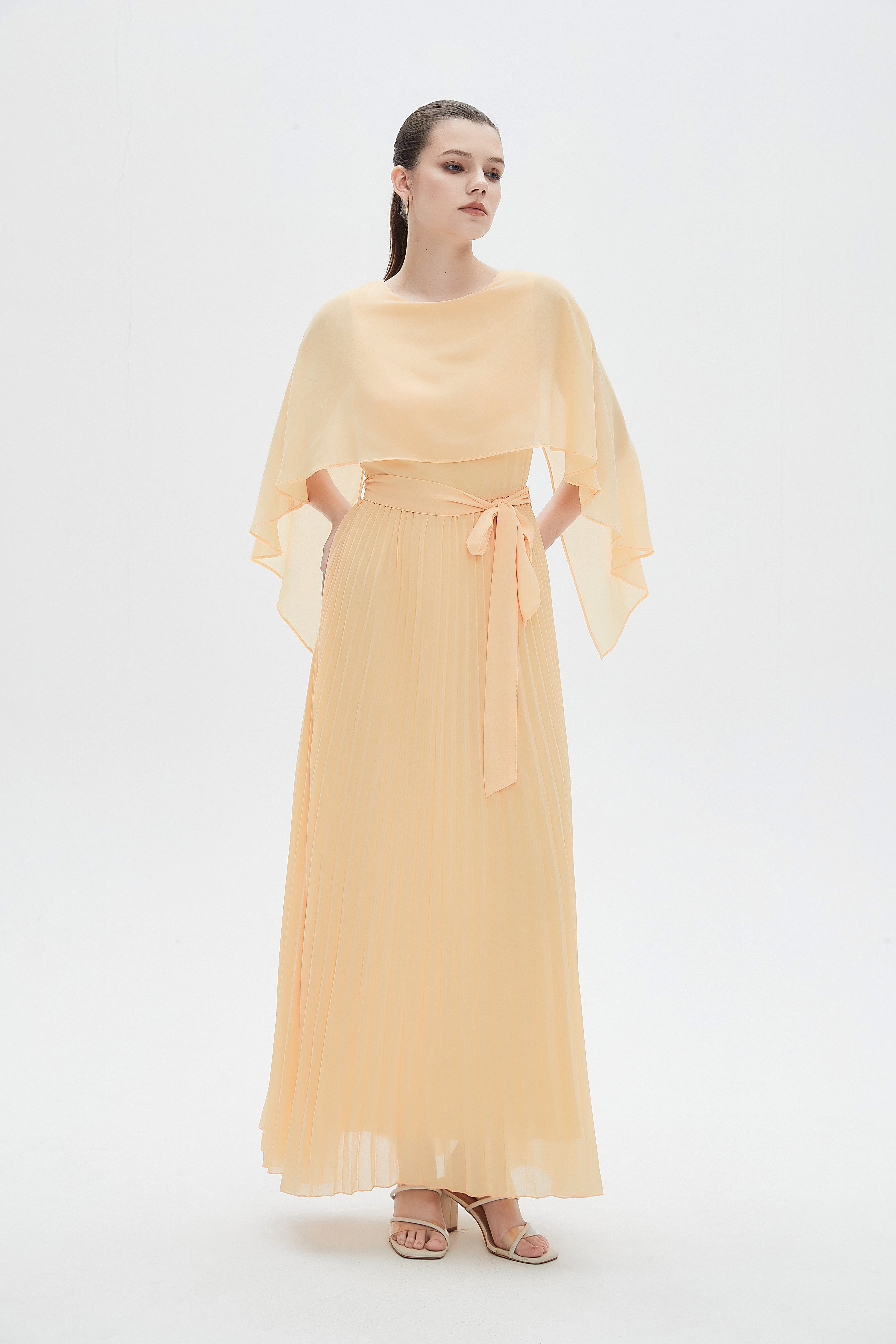 فستان نسائي ماكسي اكمام كاب قصيرة بيلسيه وبفتحة رقبة دائرية