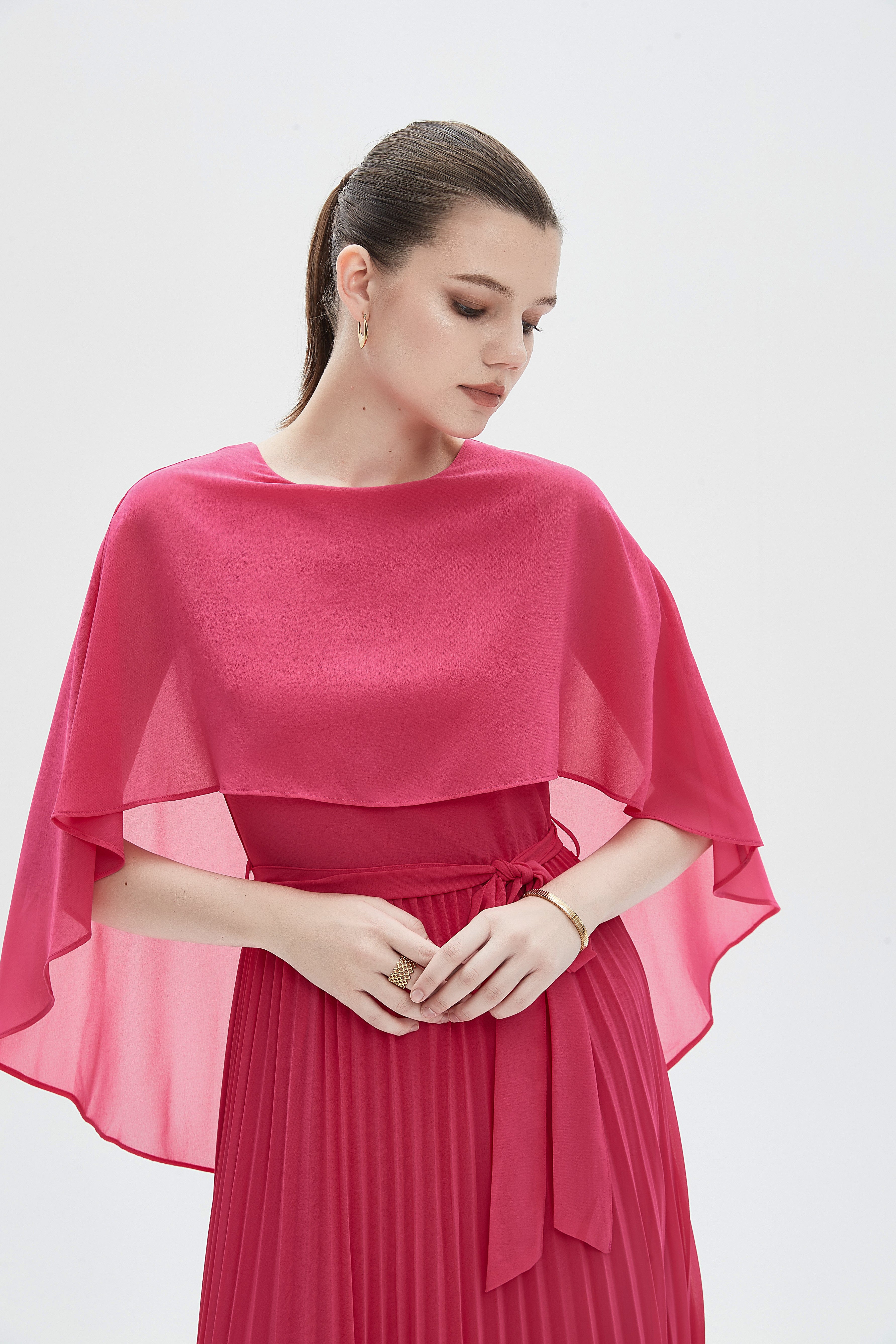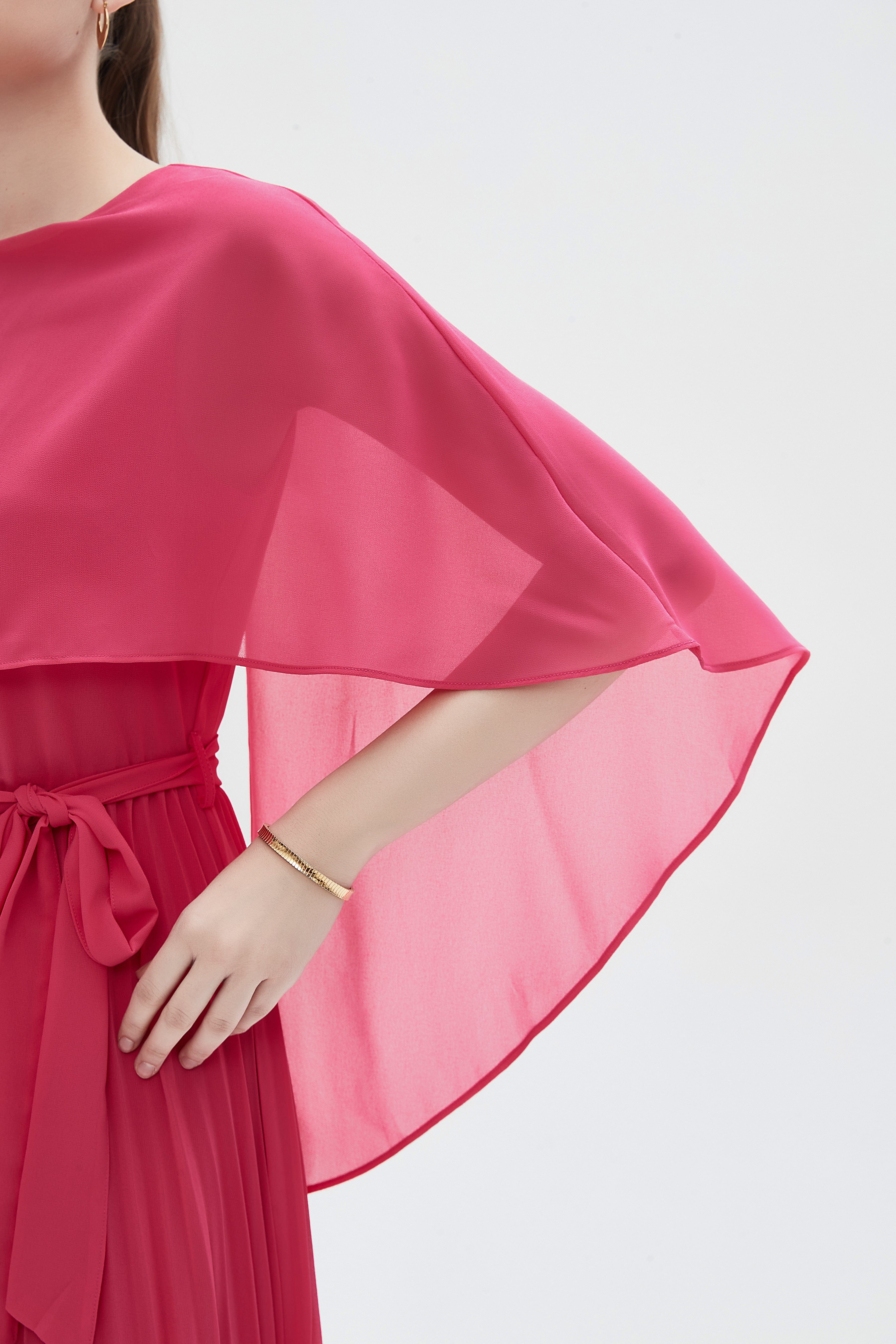 • التنسيق: نسقيه مع صندل بكعب وحقيبة يد أنيقة للسهرات، أو مع صندل مسطح وقبعة للنهار. استخدمي الحزام المرفق لتحديد الخصر أو أضيفي سترة خفيفة في الأجواء الباردة — مثالي للخروجات الرومانسية والمناسبات الرسمية.