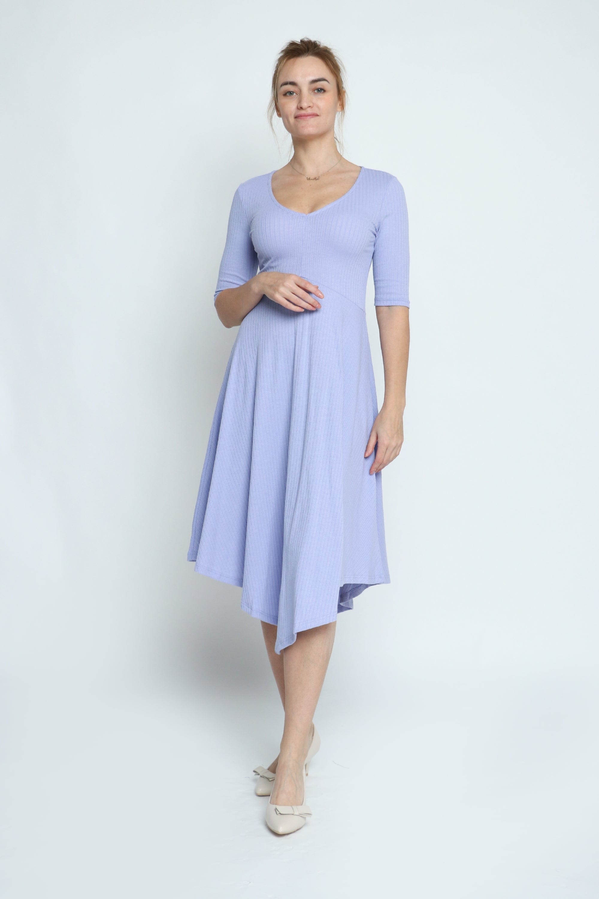 هذا الفستان ليلكي مريح وعصري ويبدو وكأنه خيار مناسب لكل يوم عندما تريدين مظهر أنيق من دون مبالغة. خامته مكونة من 92% فيسكوز و8% إيلاستين، لذلك ستشعرين بنعومة القماش مع قليل من المرونة التي تساعد القصة على الالتزام بشكلها. قصة A تعطي انسياب خفيف عند الوسط وتناسب أشكال جسم مختلفة، والطول ميدي مثالي للنهار والمساء. ياقة V تضيف لمسة أنثوية وأكمام كم ثلاثة أرباع تمنح تغطية عملية دون ثقل. الفستان سادة بلا طبعات أو تطريز، بدون جيوب وبدون بطانة أو حزام، وهذا يجعله خفيف وسهل الغسيل. ستحبين كيف يتحرك معك عند المشي. مثالي للخروجات الكاجوال، للمقابلات الخفيفة، أو للخروجات الرومانسية. قطعة تناسب كل المواسم بسمك متوسط يمنح دفء خفيف في الأجواء المعتدلة. طريقته البسيطة والسادة تجعلها قاعدة ممتازة تضيفين إليها إكسسوار ملون أو جاكيت خفيف. قصة عادية محسوبة تمنحك عملية الارتداء اليومية دون تعقيد. اعثري على مقاسك في فاشن السعودية وأضيفي هذه القطعة المتنوعة إلى خزانة ملابسك اليوم.