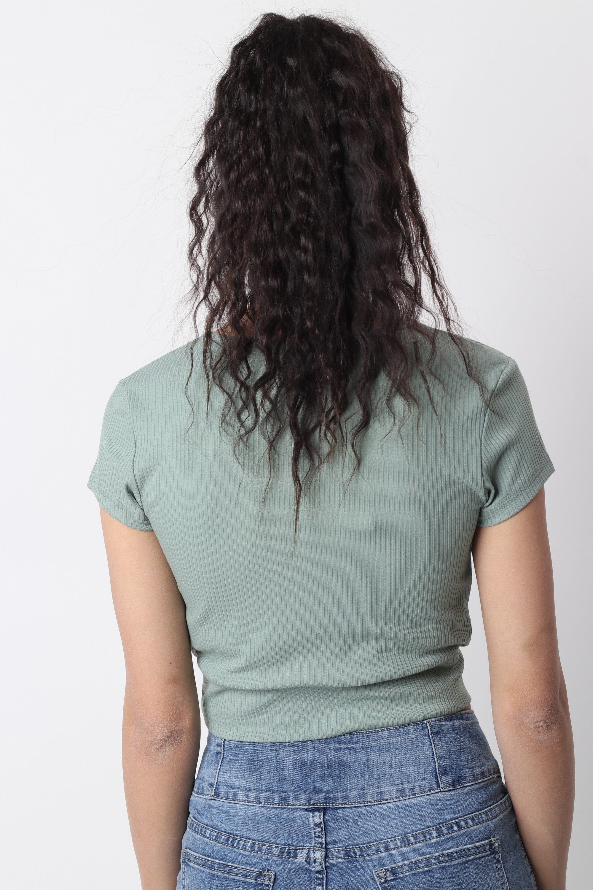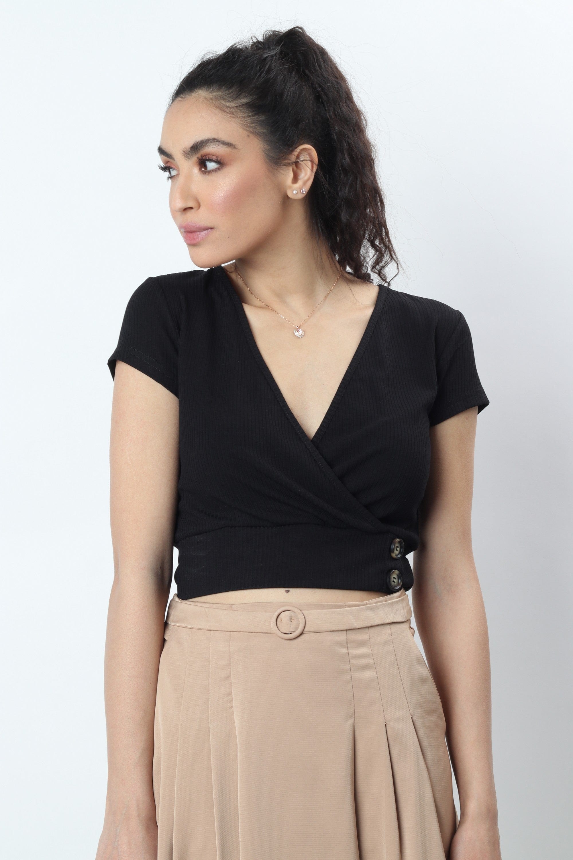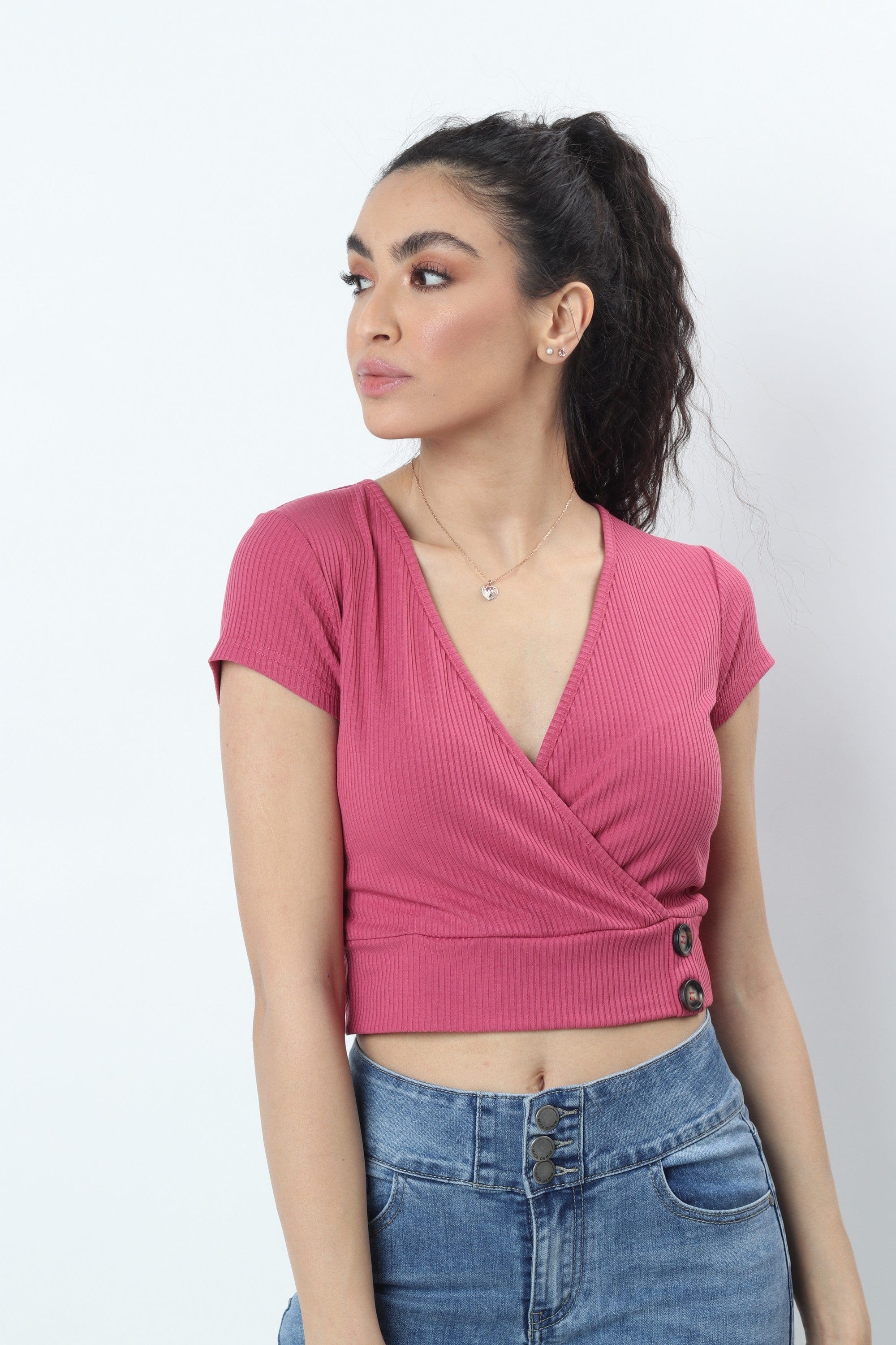 بلوزة قصيرة متداخلة بأزرار على الجانب كم قصير نسائي