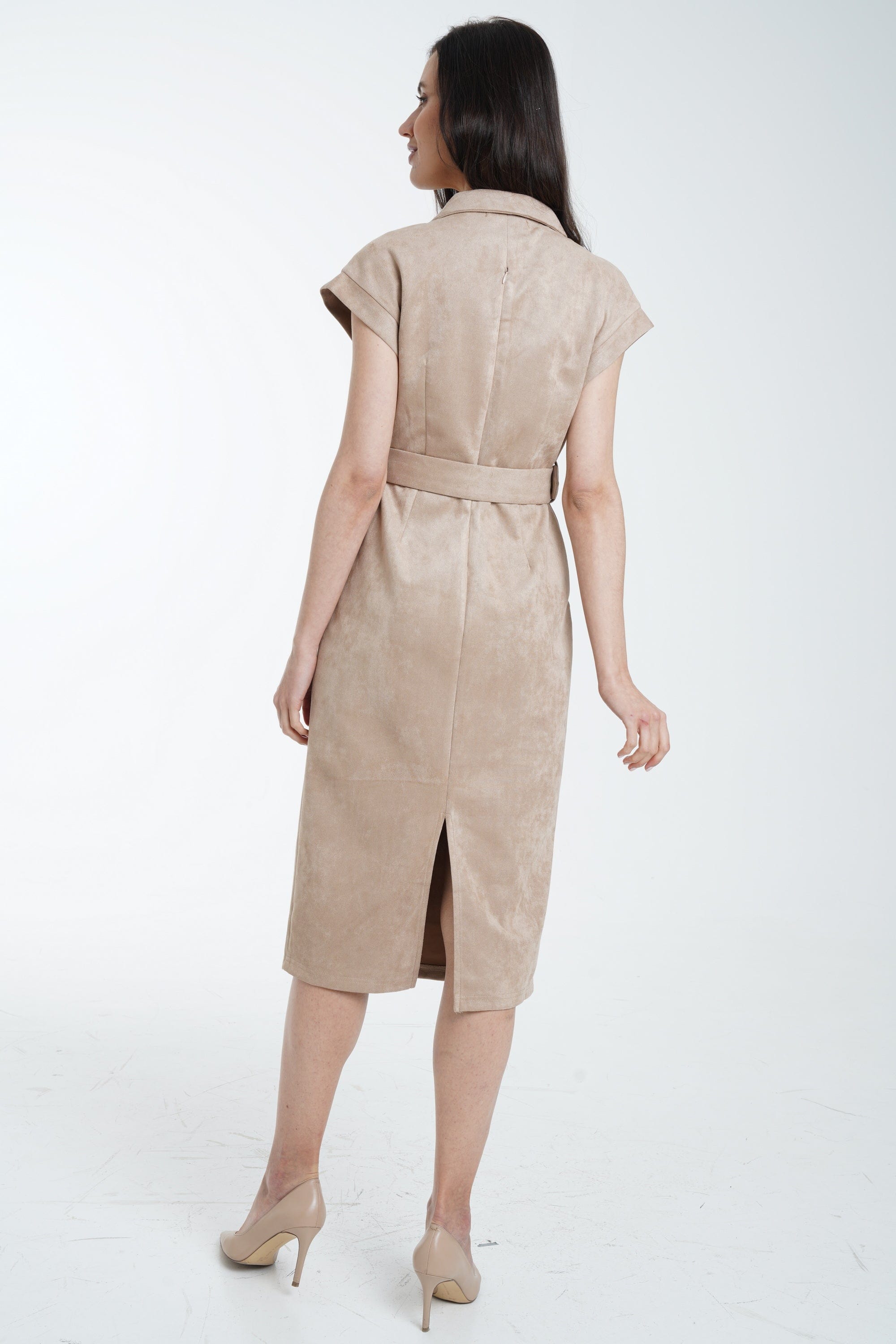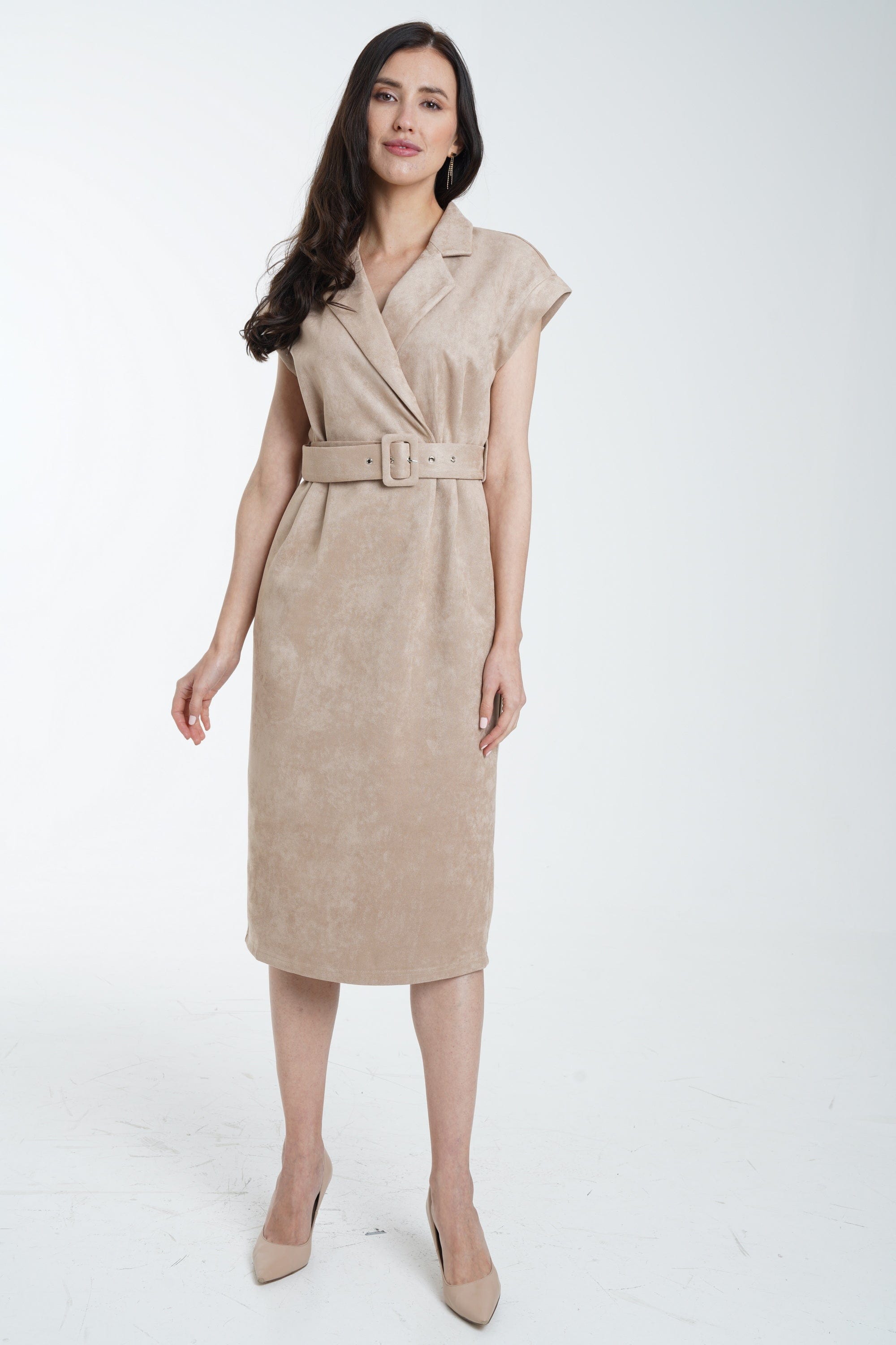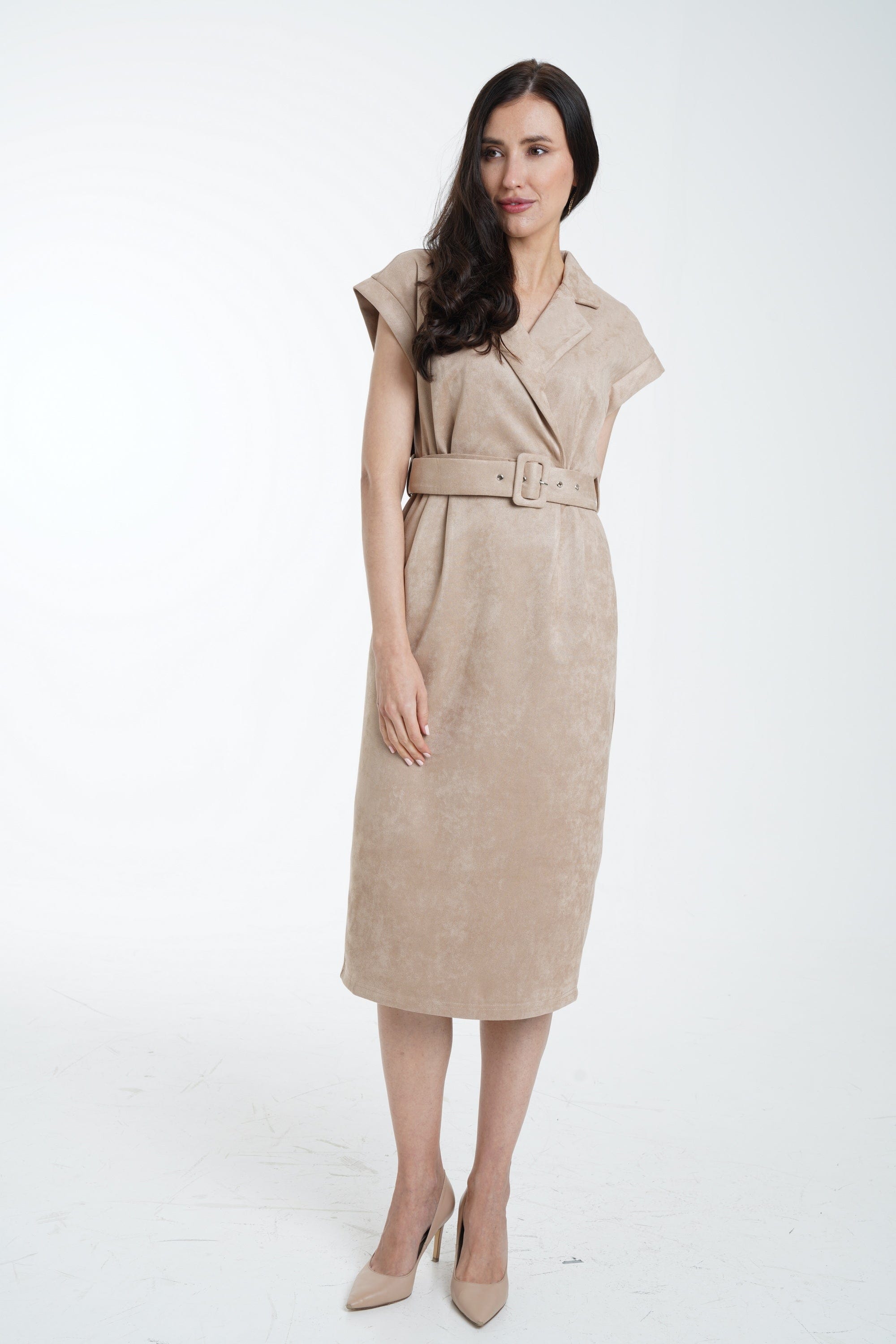 فستان ميدي سادة بحزام على الخصر كم قصير نسائي